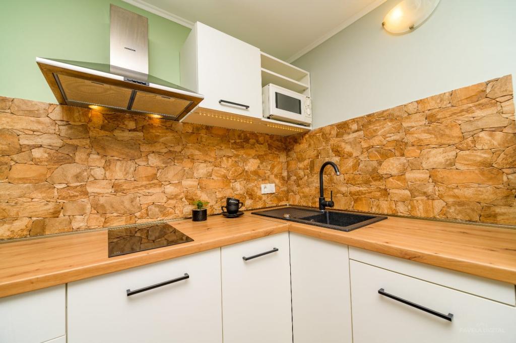 Frumos, curat, liniștit (chiar și clopotele bisericii din apropiere la ora 7 dimineața te liniștesc cumva când ești în mișcare), confortabil, locație excelentă, aproape de centru, aproape de plajele stâncoase, piscină, iar Čikat nu este departe, un cuplu drăguț se ocupă de totul și pot oferi doar recomandări și o notă de 5/5.