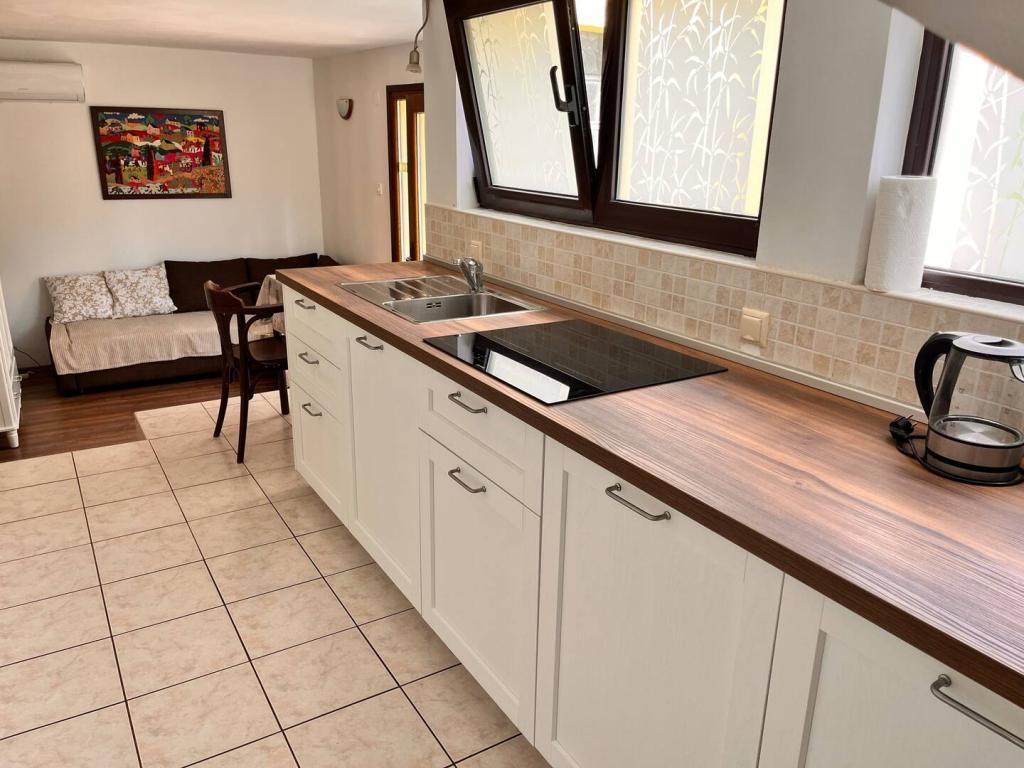 Citește mai mult Unități de cazarePentru a rezerva un apartament trebuie să plătiți 30% în avans, restul se plătește pe loc în numerar (HRK sau EUR). Animalele de companie mici și mijlocii de bună purtare sunt binevenite (contra cost 10 EUR pe zi și notificare prealabilă). Sosire: de la 14:00 / Plecare: până la ora 10:00. Lista de preturi se refera la sejurul saptamanal. Sejururi mai scurte posibile la cerere (in functie de data).