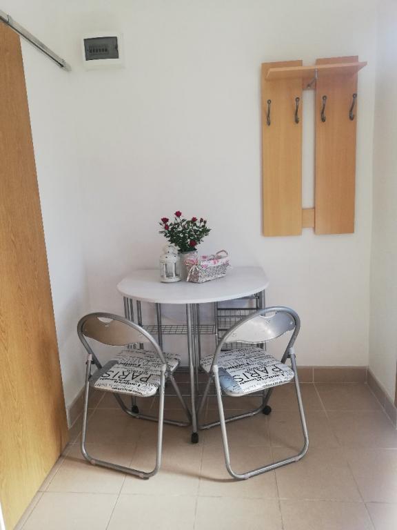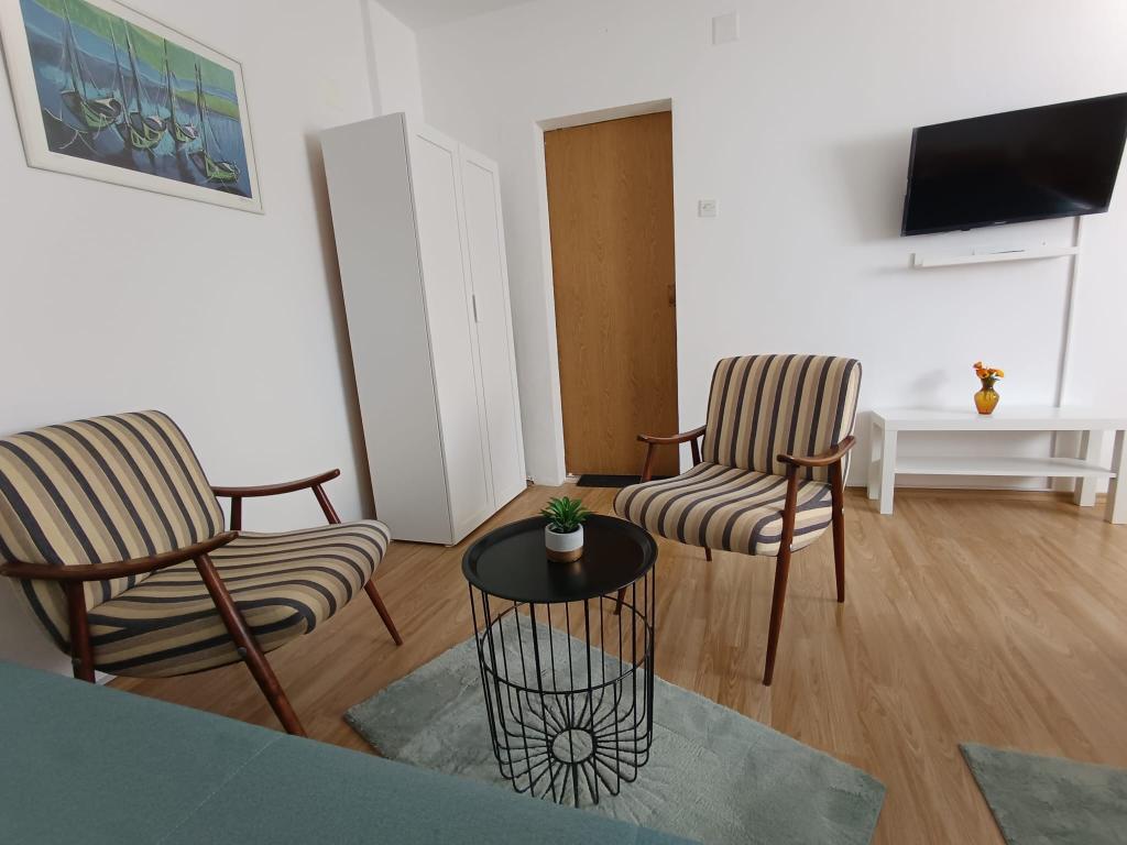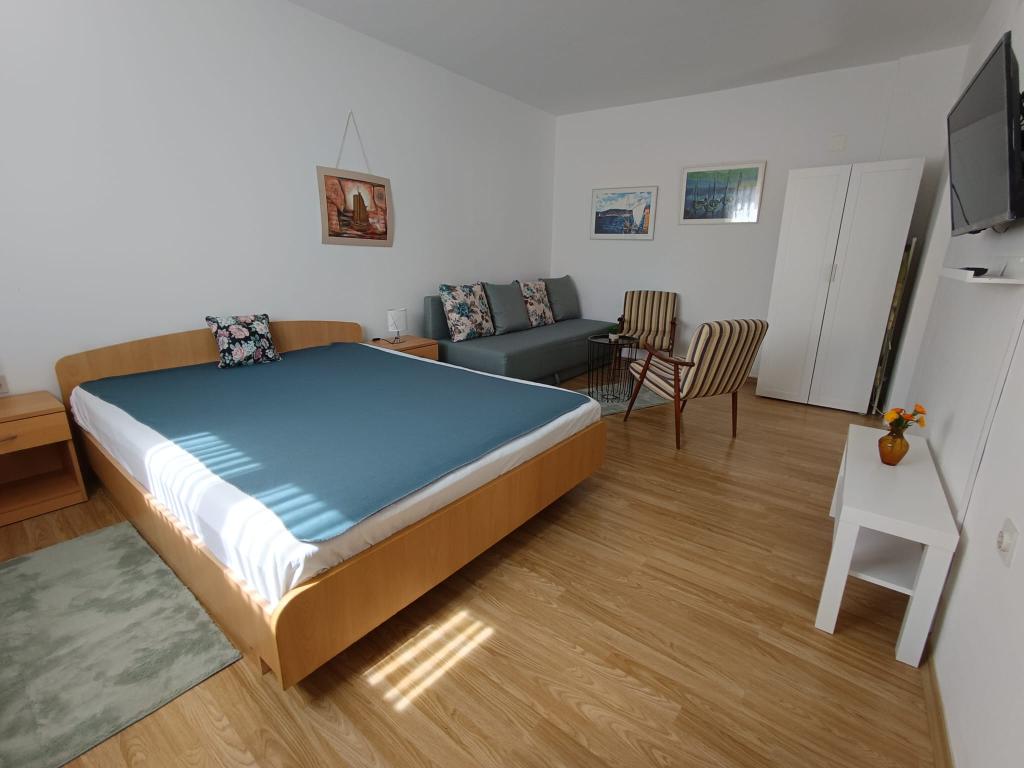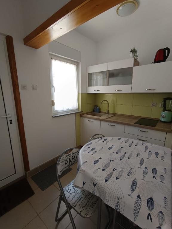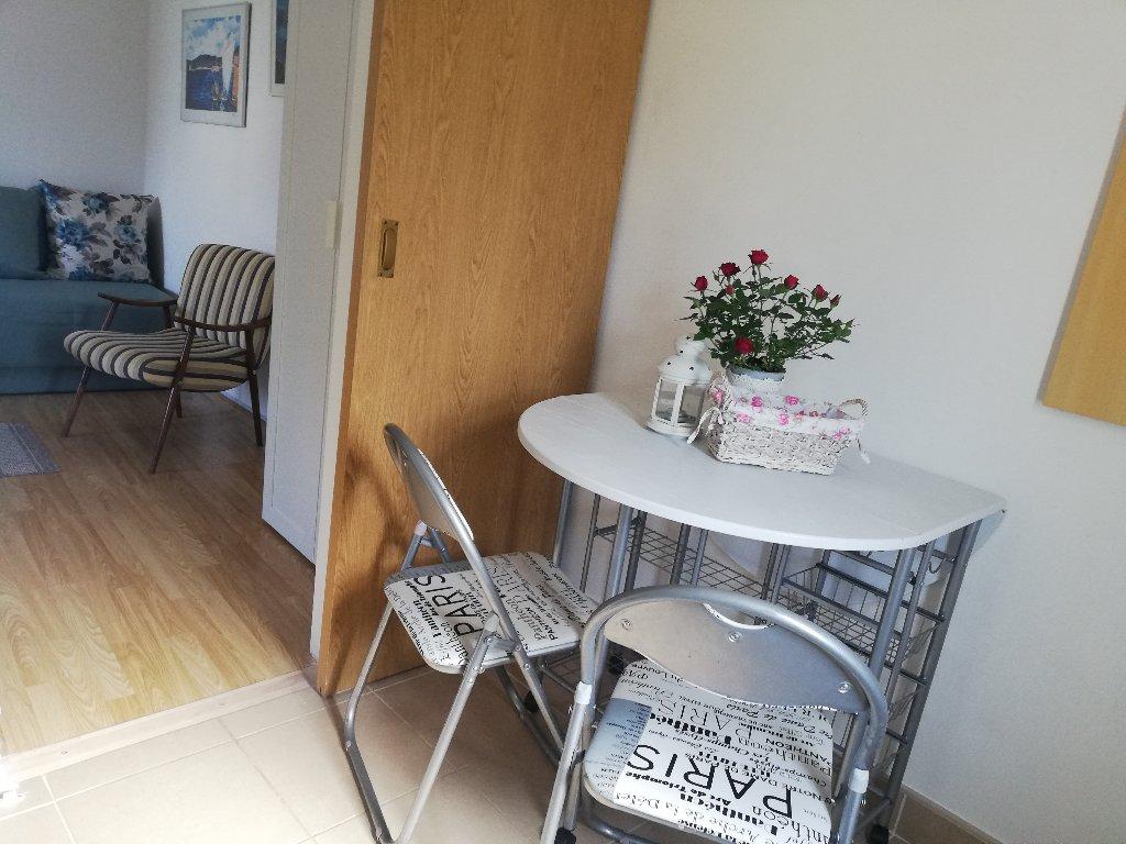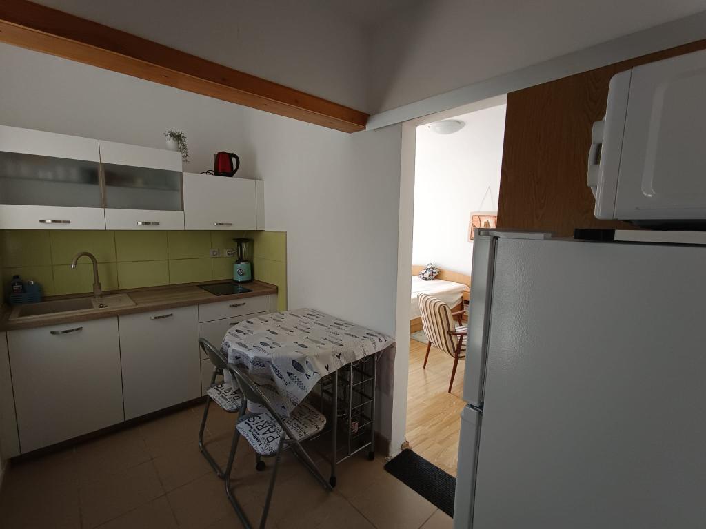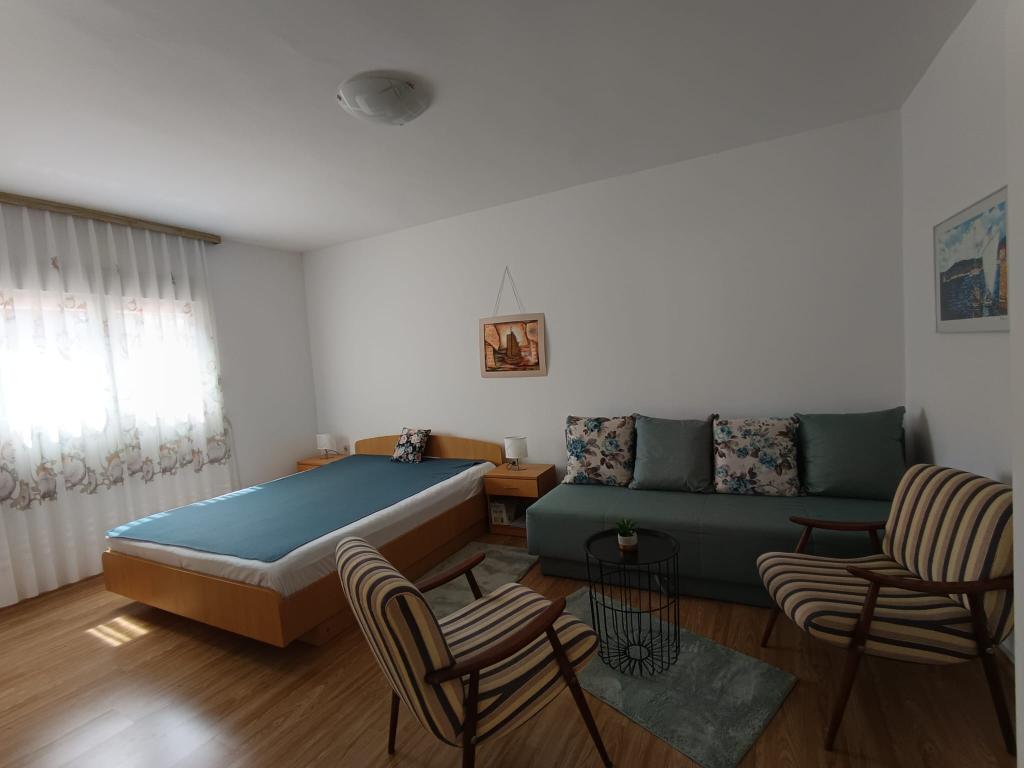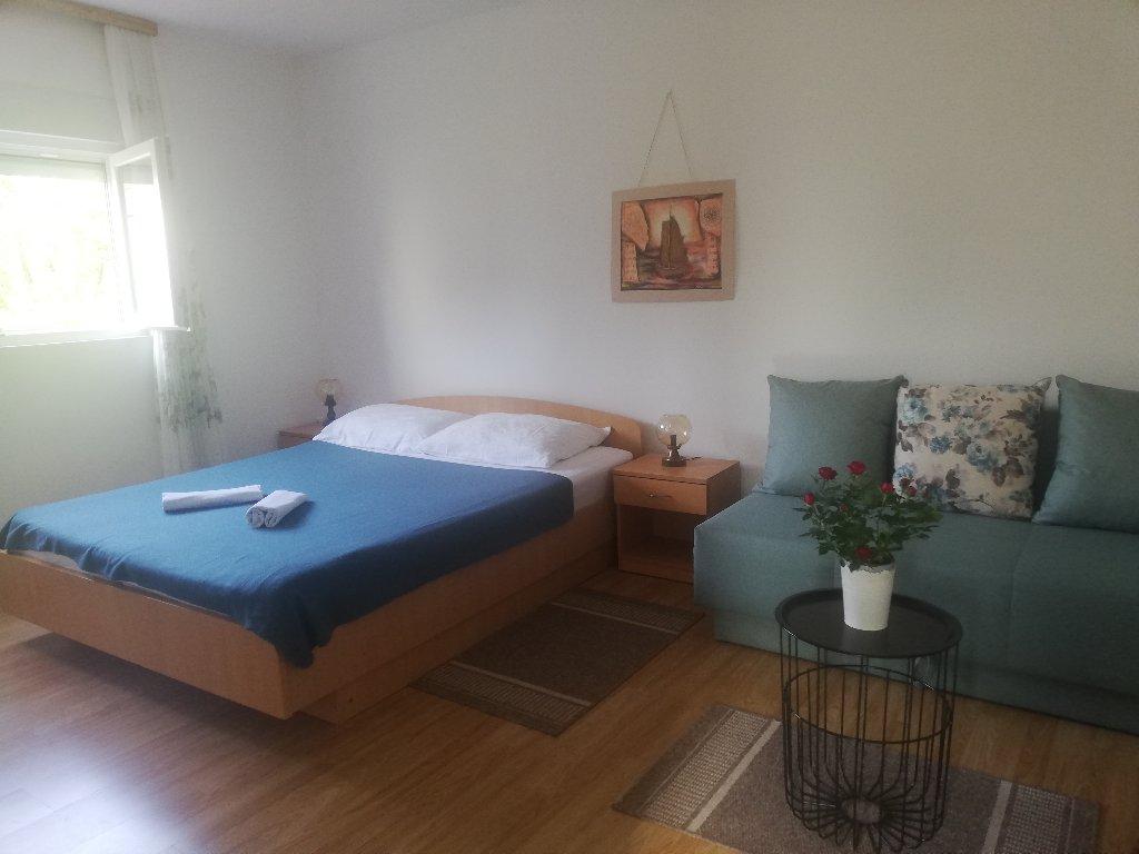 Apartament garsoniera pentru maxim 3 persoane, este format dintr-o camera cu pat matrimonial si pat suplimentar, o bucatarie, o baie si o terasa. Parcarea mașinii este situată în curtea casei. Apartamentul este complet mobilat. Este nevoie de 5-8 minute de mers pe jos până la cea mai apropiată plajă, iar în apropiere se află magazine, o piață, un centru, restaurante, o stație de autobuz... Plajele sunt în principal cu pietriș și beton. Locație liniștită.