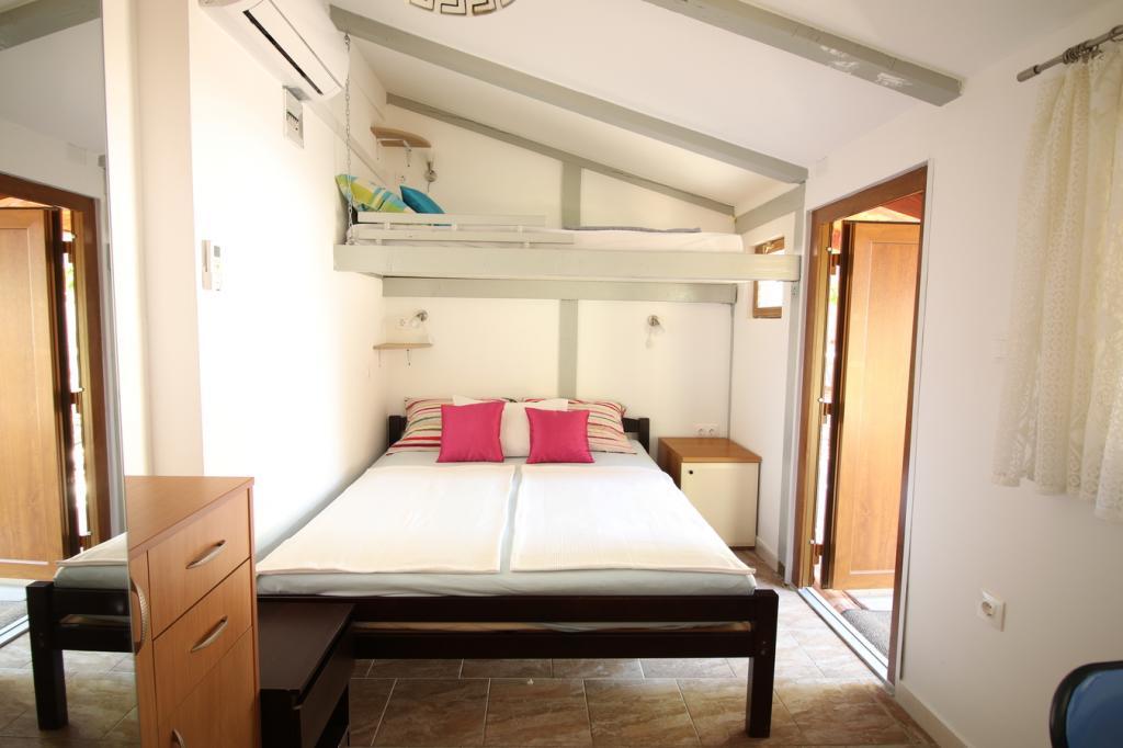 Într-o zonă liniștită din Sveti Vido, la capătul curții unei case semi-decomandate private cu apartamente, se află o mică garsonieră din lemn pentru 2 persoane + un copil de până la 50 kg. În interior se află o bucătărie mică și o baie mică, un televizor. Aerul condiționat, taxa de turist, înregistrarea, curățenia finală, lenjeria de pat, prosoapele, prosoapele de bucătărie, detergenții, bureții, hârtia igienică și săpunul sunt incluse în preț, iar parcarea și Wi-Fi-ul sunt gratuite. În curte există o masă mare cu bănci și un grătar. Parcarea este în curtea din fața casei. Se află la 15 minute de centrul orașului Malinska și la 20 de minute de mers pe jos de plajă. Există multe plaje frumoase, promenade de pe litoral și piste de biciclete în zonă. Pentru cei care caută distracție plăcută, există și clubul de noapte Diamant în apropiere (aproximativ 2 km). COSTURI SUPLIMENTARE: - Animal de companie = 5 €/zi - 1 câine - Spălătorie = 3 €, - încălzire de la 4-6 €/zi - 1 noapte este cu 30% MAI SCUMPĂRĂ - De la 10,7. - În perioada 1 - 25 august, este posibil un minim de 7 nopți, cu excepția completării golurilor dintre rezervări. - În perioada 1 - 9 iulie și în perioada 25 - 31 august, se poate rezerva un minim de 5 nopți.