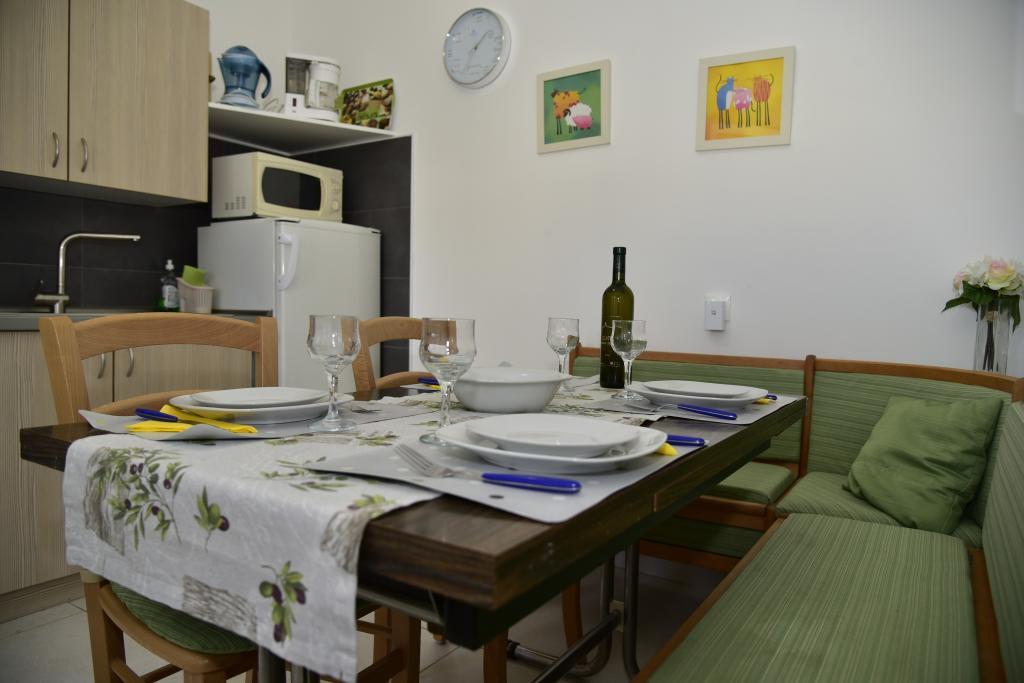 Apartamentul este decorat modern si utilat complet. Este situat intr-o zona linistita din Malinska, ideala pentru o vacanta, si se poate ajunge in centrul orasului, care ofera toate serviciile, intr-o plimbare usoara de 10 minute. Primele plaje sunt la 5 minute de mers pe jos de noi, deci nu ai nevoie de masina.Camerele si sufrageria au aparate de aer conditionat proprii pentru a face zilele toride de vara cat mai placute. Terasa mare, la care se accesează direct din bucătărie, cu vedere la parcul none Brune mereu frumos amenajat, este un loc ideal pentru întâlniri (până la 12 persoane). O atenție deosebită se acordă curățeniei apartamentului și ne îngrijim noi înșine. Vă stăm mereu la dispoziție pentru orice informații suplimentare.