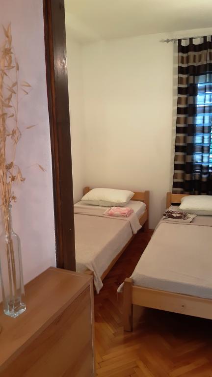 Apartamentele Valentin sunt 2 apartamente duble AP1 "MARE" (ID: 73494) și AP2 "MIC" (ID: 13633) cu două paturi suplimentare la PARTERUL casei de familie. Închiriem apartamente din 2004 și sute de oaspeți au stat în apartamentele noastre - sperăm că au fost mulțumiți! Fiecare apartament are intrare separată, loc de parcare, aer condiționat, televizor în FIECARE cameră și alte echipamente pentru un sejur confortabil pentru două familii de patru persoane. Casa este situată la capătul unei străzi fără ieșire - nu există trafic. În curtea cu verdeață bogată există un grătar încorporat pe care oaspeții îl pot folosi. Distanța de la prima plajă echipată cu dușuri este de aproximativ 400 m - aproximativ 8 minute de mers pe jos. Dacă vă place să mergeți pe jos, veți descoperi diverse golfuri și plaje. Întreaga Malinska este de fapt o plajă echipată. URMĂRIȚI VIDEOCLIPUL CU O PLIMBARE PRIN CURTE ȘI APARTAMENTE!