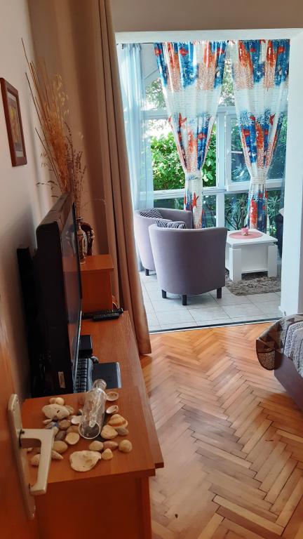 Apartamentul spațios are o dispunere funcțională și este bine dotat cu toate facilitățile care asigură o ședere confortabilă. Frigiderul are un compartiment congelator solid. Aerul condiționat este situat deasupra ușii de la intrare și este capabil să răcească toate camerele, dar de obicei nu este necesar să îl folosiți, deoarece apartamentul este situat la parter și este suficient de răcoros. Există un loc de parcare la apartament, care se află într-o fundătură liniștită. Dacă închiriați apartamentul pentru 2 săptămâni în loc de una, există o reducere de 5% din preț. Plaja și restaurantele din apropiere se află la aproximativ 10 minute de mers pe jos. Recomand închirierea.