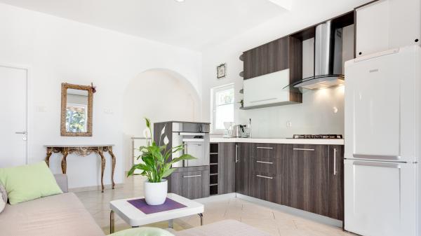 Pentru a doua oară ne-am petrecut vacanța în septembrie / octombrie la Mira și Vladimir. Apartamentul este dotat cu tot ce ai putea avea nevoie, este curat, luminos și spațios. De pe terasa mare, ai o vedere frumoasă de la țară și printre copaci se poate vedea marea. Imaginile apartamentului sunt corecte, în realitate, totul este mult mai frumos. Copacul din fața casei nu mai este, deci mult mai mult soare vine spre terasă. Locul de amplasare a casei este fantastic, doar 50m de golf. Gazdele au fost foarte primitoare Mira și Vlatimir din nou și strica una cu tort, greieri si o cina de bun venit la cele mai bune sale. Ne-am recuperat bine, m-am simtit foarte confortabil și va fi cu siguranta din nou. Frank & Romy din Gera / Thüringen.