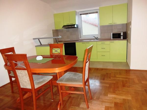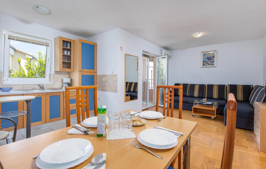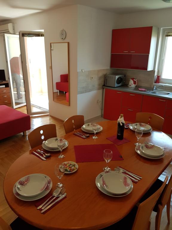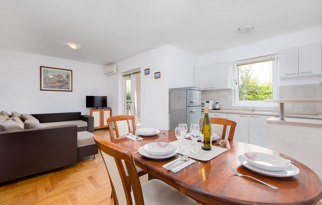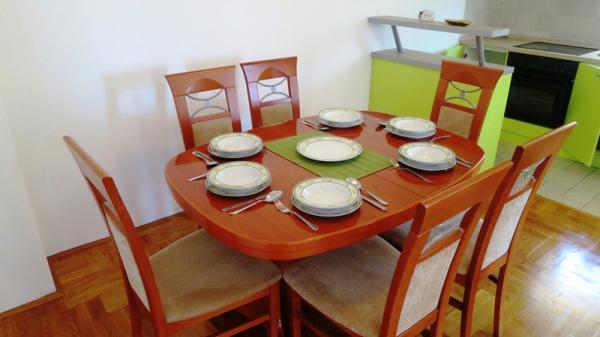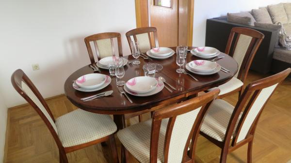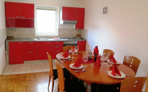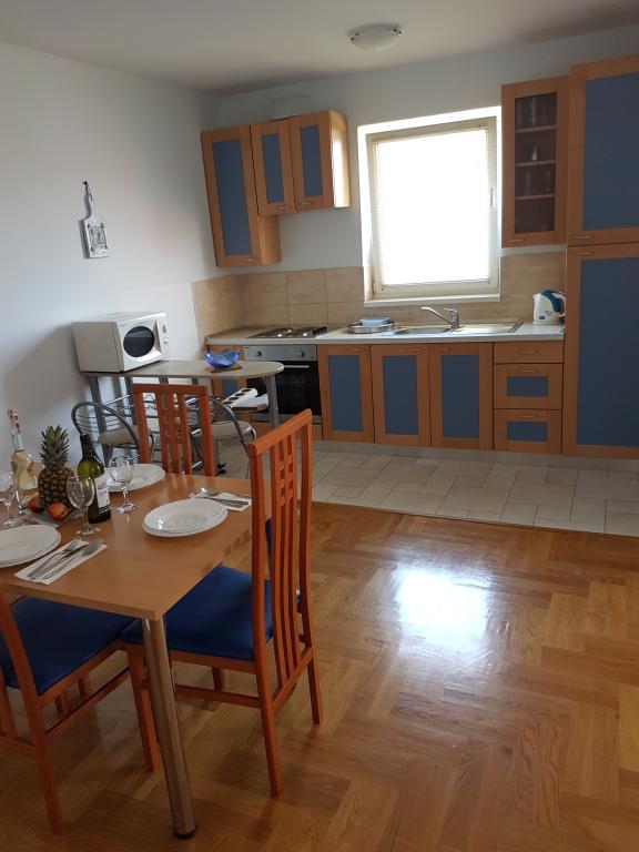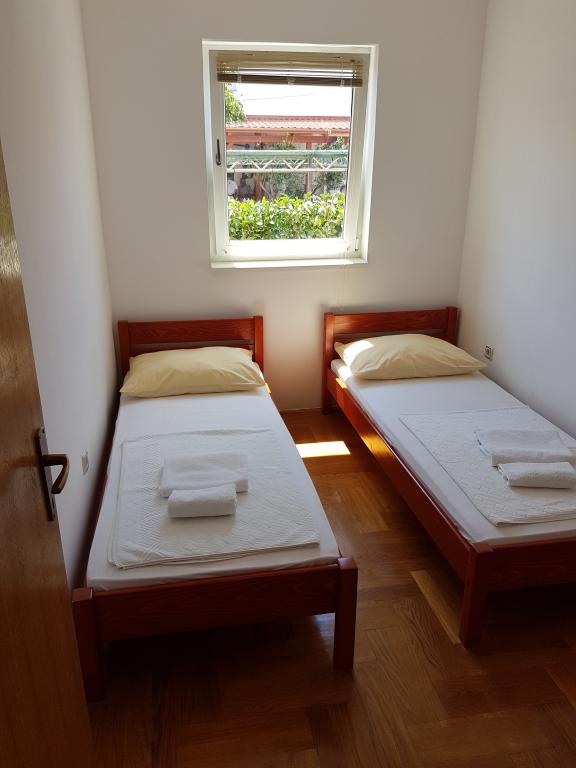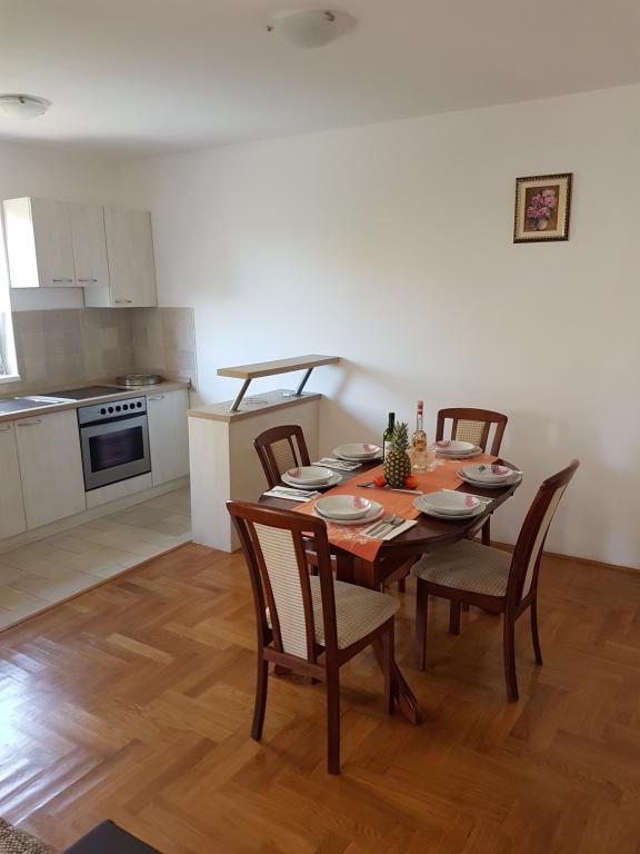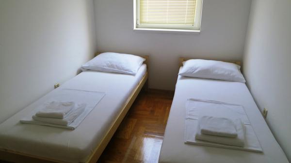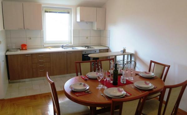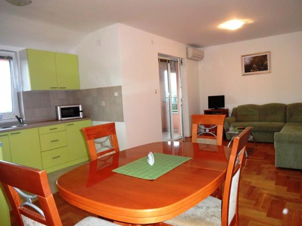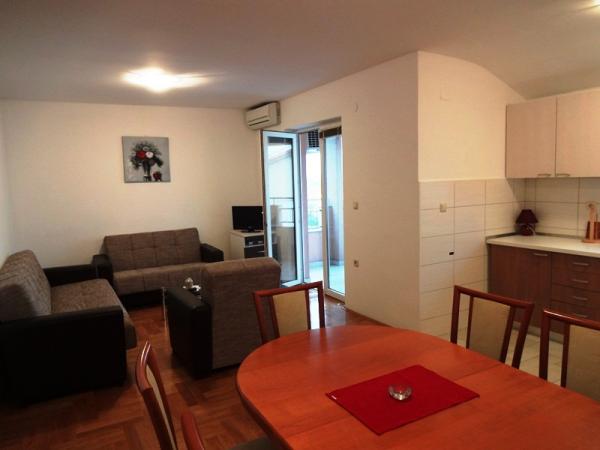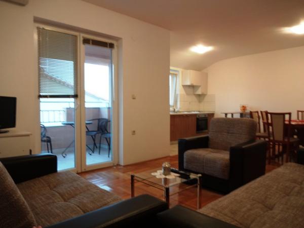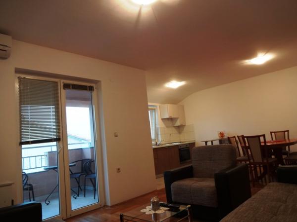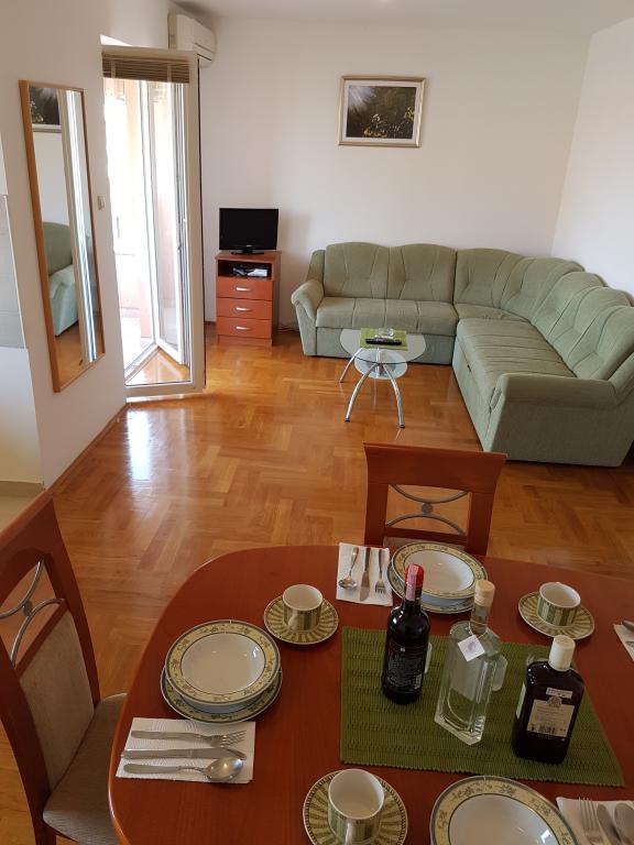 - Apartamente de 62 m2 cu balcoane, complet mobilate cu 2 dormitoare, living, bucatarie, sufragerie, cabina de dus si toaleta pentru 4 persoane; aer conditionat, wifi, gratar, parcare, TV-sat, Apartamente la 550 metri deasupra centrului- 10 minute de mers pe jos, 650 de metri de plajă - 15 minute de mers pe jos.