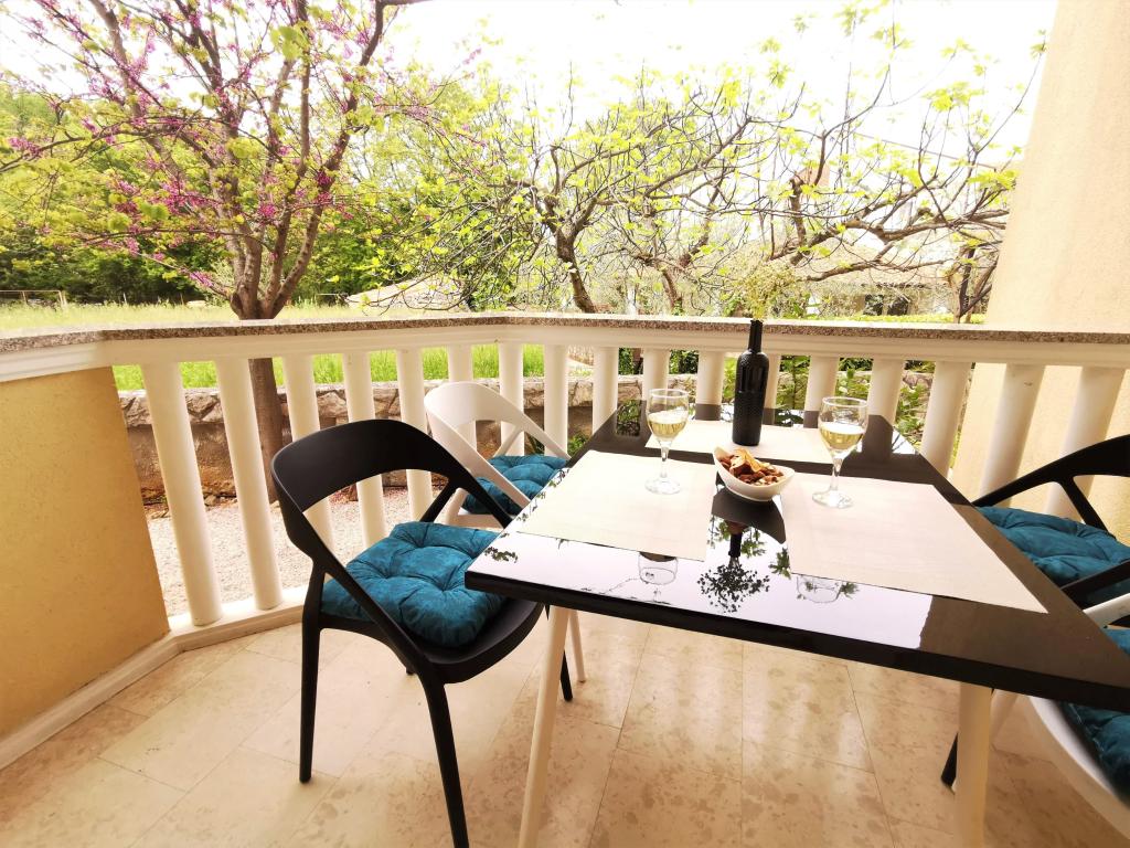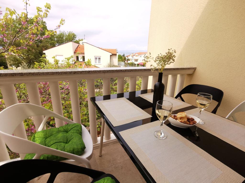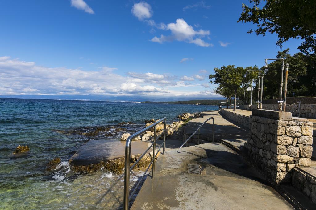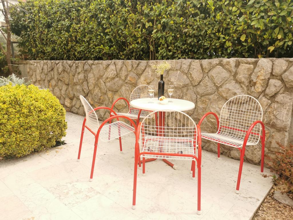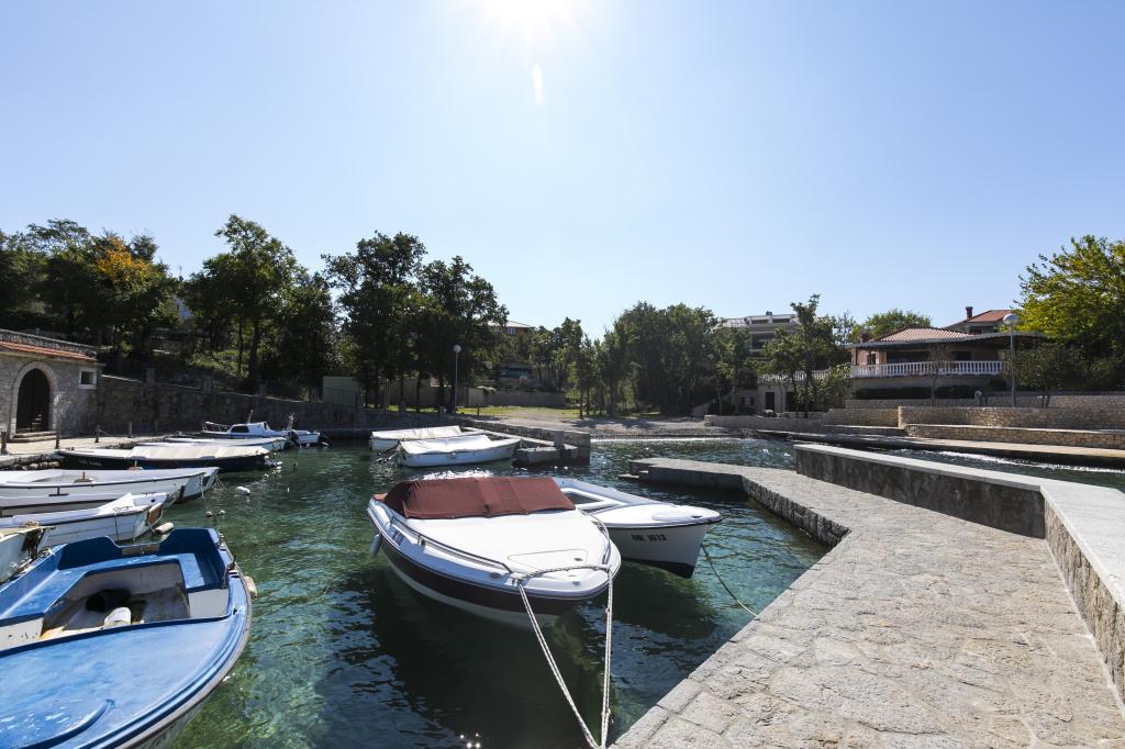Două apartamente complet mobilate, cu intrări separate și locuri de parcare securizate în propria curte închisă și umbră naturală. Fiecare apartament este dotat cu aer condiționat și are o terasă. Ambele au WiFi, programe prin satelit, cuptor cu microunde, frigider cu congelator, prăjitor de pâine, aparat de cafea cu filtru, boiler, uscător de păr, cu lenjerie de pat și prosoape. Toate dormitoarele au plase de țânțari la ferestre. Este la 10 minute de mers pe jos de cea mai apropiată plajă și la 40 de minute de mers pe jos de centrul orașului Malinska. Apartamentele fac parte dintr-o casă familială într-o zonă liniștită din Malinska și sunt înconjurate de verdeață.