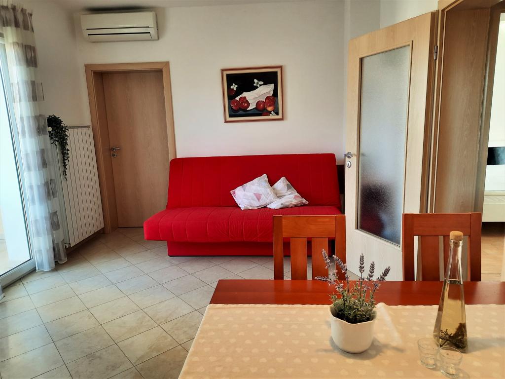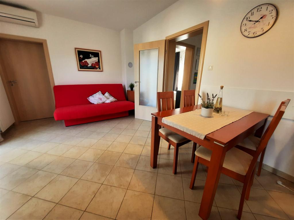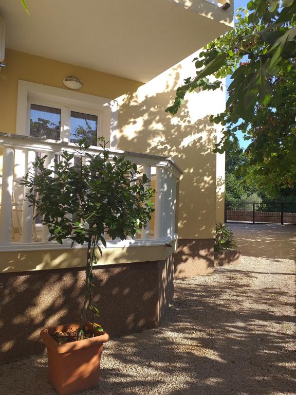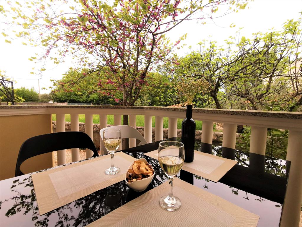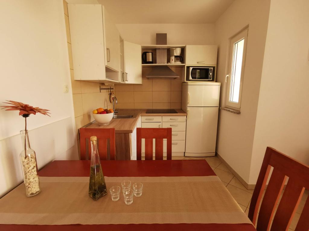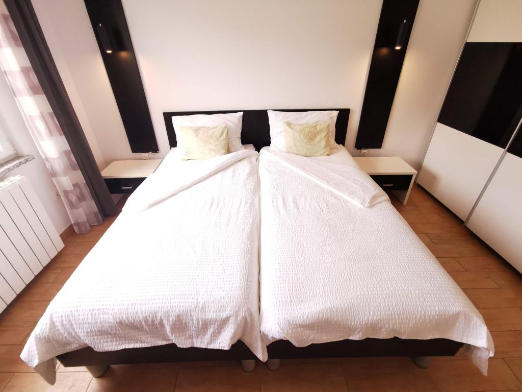 Două apartamente complet mobilate, cu intrări separate și locuri de parcare securizate în propria curte închisă și umbră naturală. Fiecare apartament este dotat cu aer condiționat și are o terasă. Ambele au WiFi, programe prin satelit, cuptor cu microunde, frigider cu congelator, prăjitor de pâine, aparat de cafea cu filtru, boiler, uscător de păr, cu lenjerie de pat și prosoape. Toate dormitoarele au plase de țânțari la ferestre. Este la 10 minute de mers pe jos de cea mai apropiată plajă și la 40 de minute de mers pe jos de centrul orașului Malinska. Apartamentele fac parte dintr-o casă familială într-o zonă liniștită din Malinska și sunt înconjurate de verdeață.