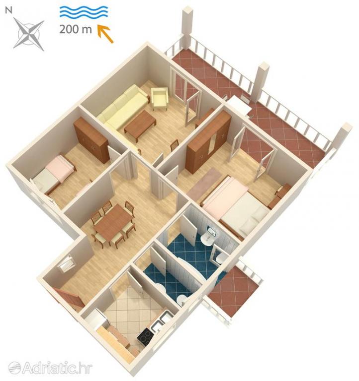 Apartamentele Karmelić sunt situate într-o zonă liniștită din Malinska, în imediata apropiere a mării și a unei plaje frumos amenajate, și la doar 10 minute de mers pe jos plăcută până în centru. Facilitatea dispune de o garsoniera pentru 2 persoane si un apartament de 4-6 ani, Clasificata cu 4*, apartamente complet echipate cu tot ce este necesar pentru odihna si distractie. Gazdele locuiesc în clădirea vecină și vă stau la dispoziție cu amabilitatea și ospitalitatea lor atunci când doriți. Pentru toți oaspeții apartamentului, parcarea este oferită în cadrul facilității și WI-FI gratuit, utilizarea gratuită a spălătoriei comune și utilizarea nelimitată a grătarului comun din grădină. Plaja hotelului Malin se află la doar 3 minute de mers pe jos de apartament și oferă nenumărate facilități pentru relaxare și distracție - de la umbrele și șezlonguri, baruri, restaurante până la sporturi nautice, iar copiii se bucură în special de locurile în care se joacă și fără griji. înot. Multe excursii organizate în locuri din Krk și insulele din jur, o multitudine de evenimente culturale și de divertisment vă vor face vacanța de neuitat.