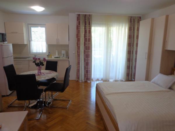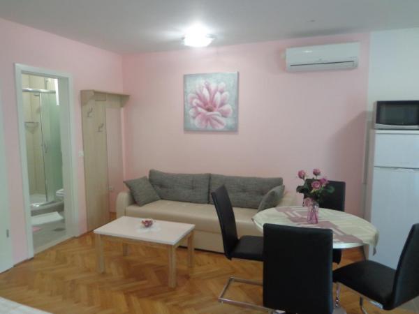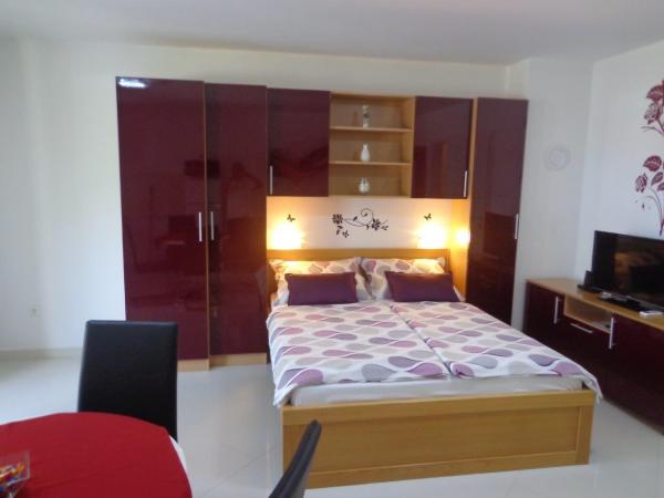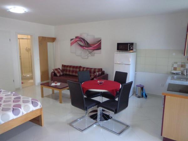 Există trei apartamente moderne, bine echipate studio situat la numai 150 de metri de mare și aproape de magazine și restaurante. In fiecare apartament lângă un pat dublu mare este o canapea care convertește cu ușurință într-un pat. Apartamentele sunt mobilate atractiv și au un TV, aer condiționat și internet wireless. Studio Rouge, apartament situat la parter, caracterizat printr-o culoare roșu intens că radiază sentimente de dragoste si pasiune. Rouge are acces la o grădină mică, perfect pentru socializare, după o zi pe plajă. Studio Rose este situat în centrul orașului (etajul 1), și se caracterizează printr-o culoare roz delicat care radiază sensibilitate si confort. Rosé are un balcon unde vă puteți relaxa cu ciripitul păsărilor și punctul de vedere de la țară care înconjoară apartamentele. Studio bej, apartament care se află în partea superioară, caracterizat prin nuanțe de bej. Apartament Bej are un dormitor și bucătărie separată a reședinței. ceea ce face deosebit de potrivit pentru familiile cu copii mici.