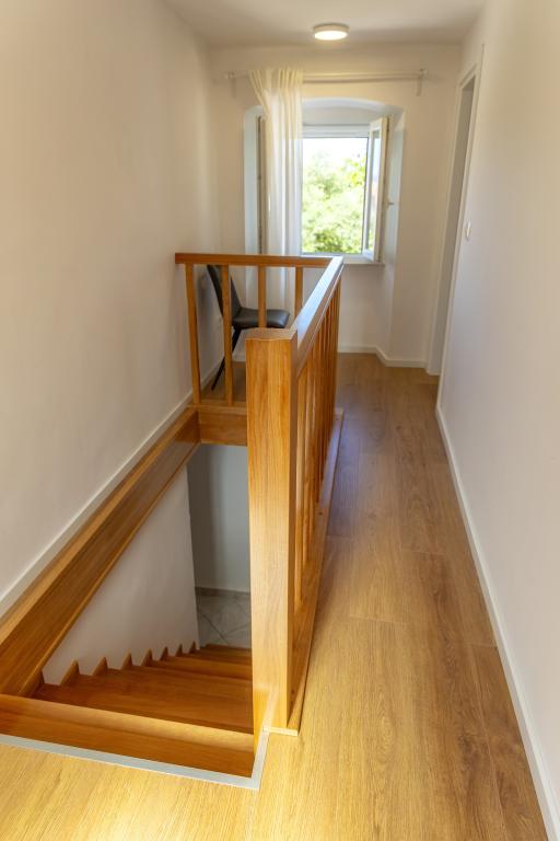 Casă de vacanță recent renovată, cu vedere la mare. Poate găzdui 6 persoane în 4 dormitoare. Parterul este dominat de un living mare deschis, sufragerie și bucătărie complet utilată. La acelasi etaj se afla un dormitor cu pat dublu si 2 bai. Scările duc la etajul superior unde sunt 3 dormitoare, un dormitor cu pat dublu și 2 dormitoare cu pat de o persoană. În exterior există un grătar cu o masă și scaune suplimentare. Există parcare pentru 2 vehicule în curte. În apropiere există un loc de joacă pentru copii.