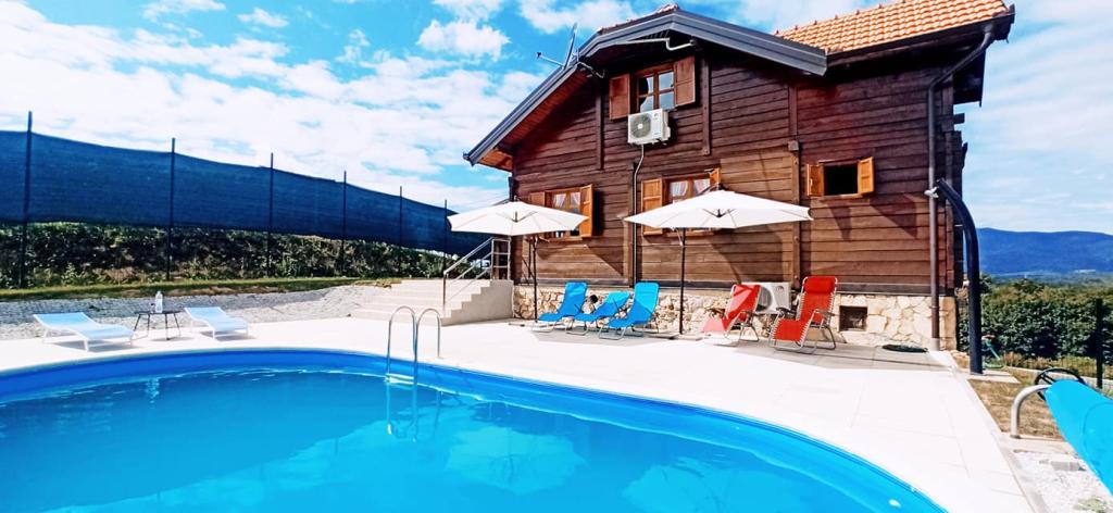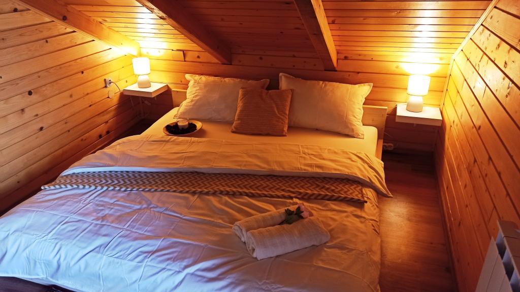 Casa de vacanță King's Lodge este o casă din lemn de stejar situată în Hrvatsko Zagorje, cu vedere la muntele Ivanščica... La dispoziția dumneavoastră: - 3 dormitoare separate - 2,5 băi - living spațios cu șemineu - saună - grătar cu terasă acoperită - cameră pentru socializare și joacă (darts, biliard, PS, jocuri de societate...) - șemineu în aer liber - loc de joacă pentru copii - colț pentru copii și colț de lectură