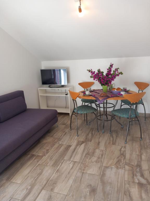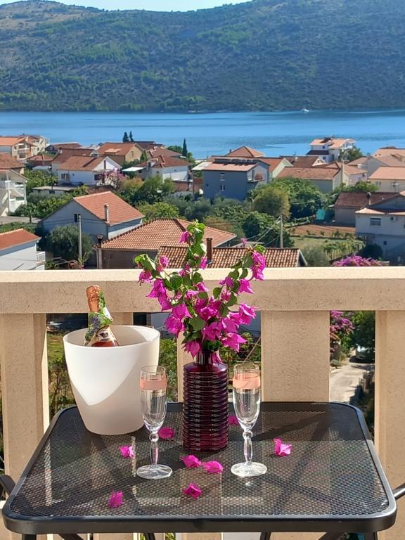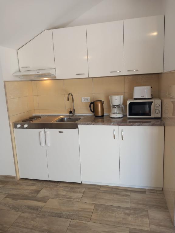 apartamente moderne, într-o parte liniștită din Poljica, cu o vedere frumoasă la mare și golful Marina complet echipat și. La dispoziția dumneavoastră un apartament mare pentru 2-8 persoane cu Velka balcon cu vedere direct la mare din partea de sud și o terasă mare pe partea de nord, care are și o vedere la mare și este dotată cu mobilier de grădină, șezlonguri și umbrele de soare, ideal pentru masa de prânz și după-amiaza concediu. Terasa este conectat direct la parcare, care este gratuită și un teren de baschet mici. Apartamentul are trei dormitoare cu un pat dublu-dublu, dintre care o camera are o baie suplimentară. Mare spațioasă hol, baie, bucatarie si living. In gradina exista un -gril semineu pe care le puteți utiliza în orice moment. apartament mic pentru 2 persoane are o intrare în plus și o terasă privată înconjurată de flori și verdeață, oferind o vedere minunată la mare ... Ambele apartamente sunt situate într-un loc liniștit, astfel încât vă puteți bucura de liniște și pace ...
