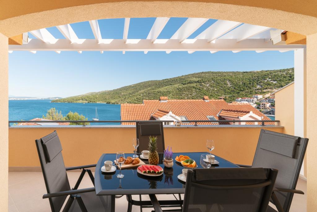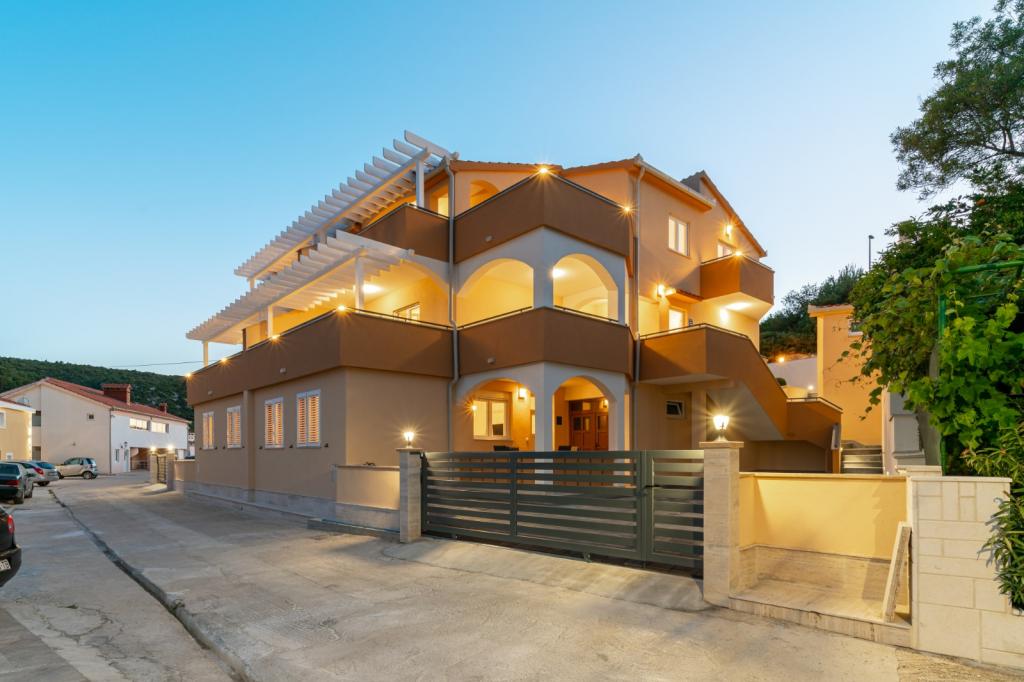 Vila A este o vilă frumoasă situată într-un loc liniștit Marina lângă Trogir. Este formată din 6 apartamente, piscină, grătar în aer liber, parcare privată. Distanța de la plajă este de 70m și centrul 500m.