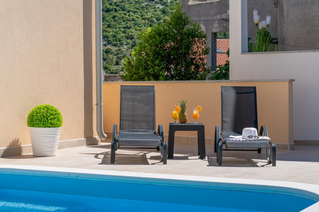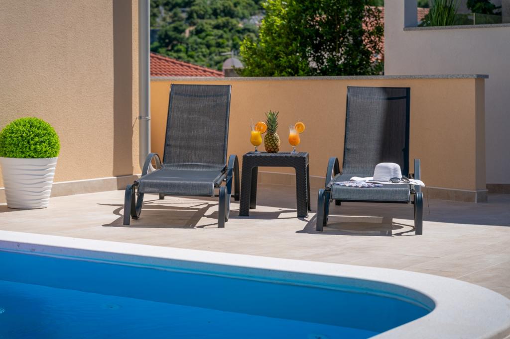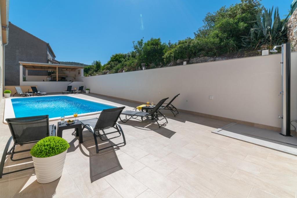 Probabil una dintre cele mai bune cazări din CRO. Totul este foarte bine întreținut, complet echipat, modern și cu aer condiționat. Există o terasă cu grătar complet echipat lângă piscină. Există șezlonguri lângă piscină, un duș și o toaletă. Priveliștile de la vilă sunt fantastice. Proprietara, Marina, este o persoană minunată și caldă. A fost foarte de ajutor și chiar ne-a întâmpinat cu mezeluri, brânzeturi și pâine locală. Plaja (cu pietriș) este literalmente la două minute distanță. O recomand cu căldură! Vom reveni cu plăcere.