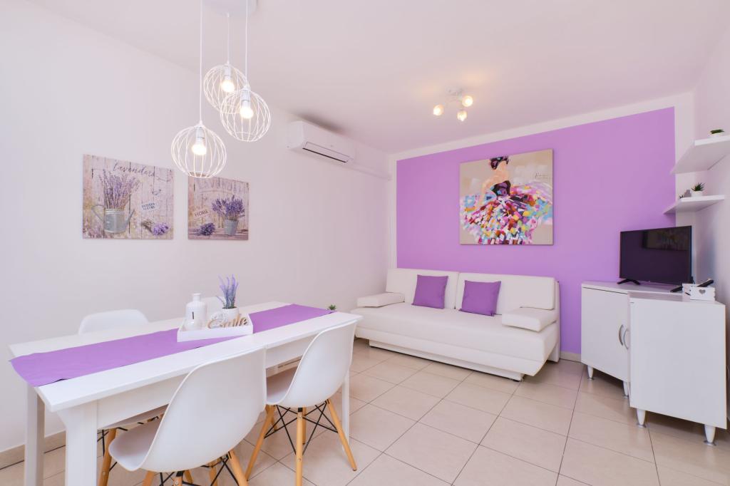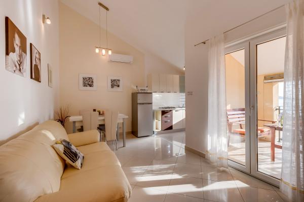 Toate cele trei apartamente sunt dotate modern, au aer condiționat, au Wi-Fi gratuit, TV cu antenă satelit, sunt situate la aproximativ 80m de plajă, au terase proprii și locuri de parcare. Plajele sunt cu pietriș și vei găsi întotdeauna locul ideal pentru tine.