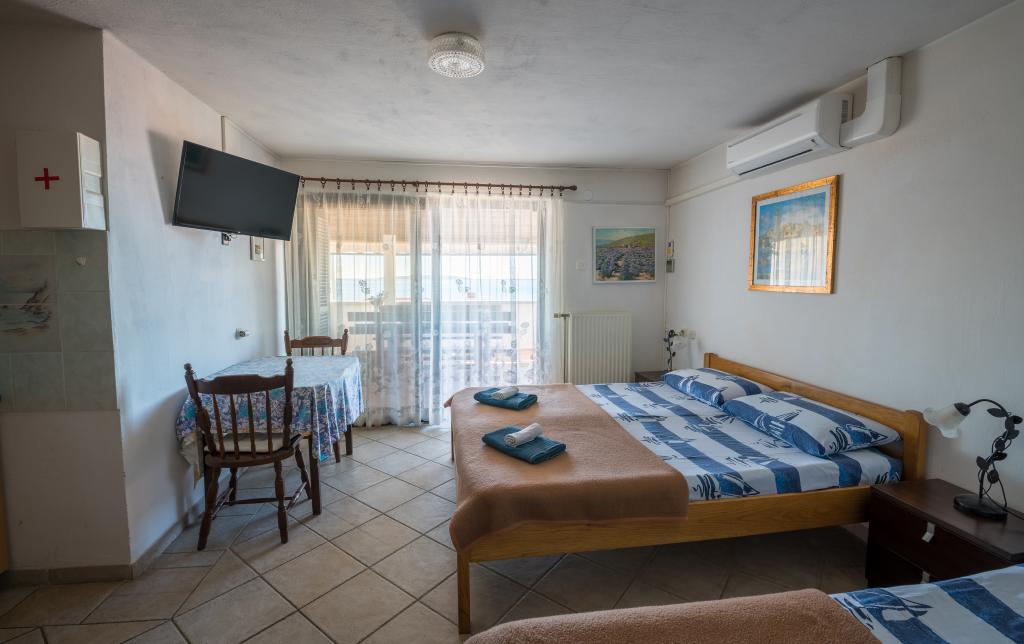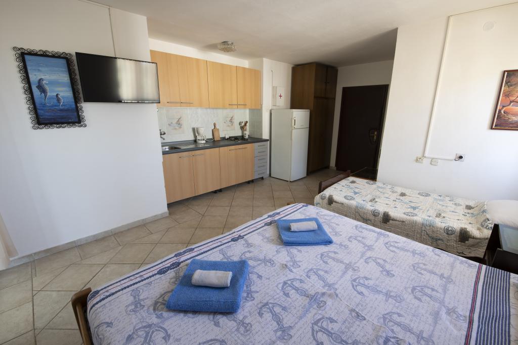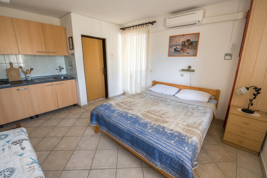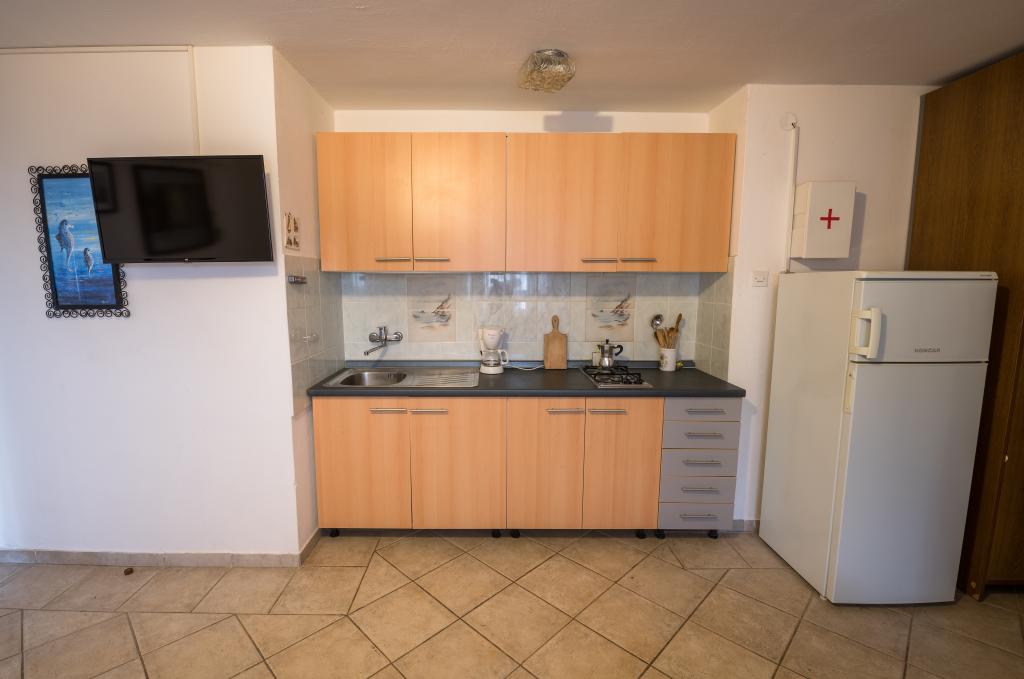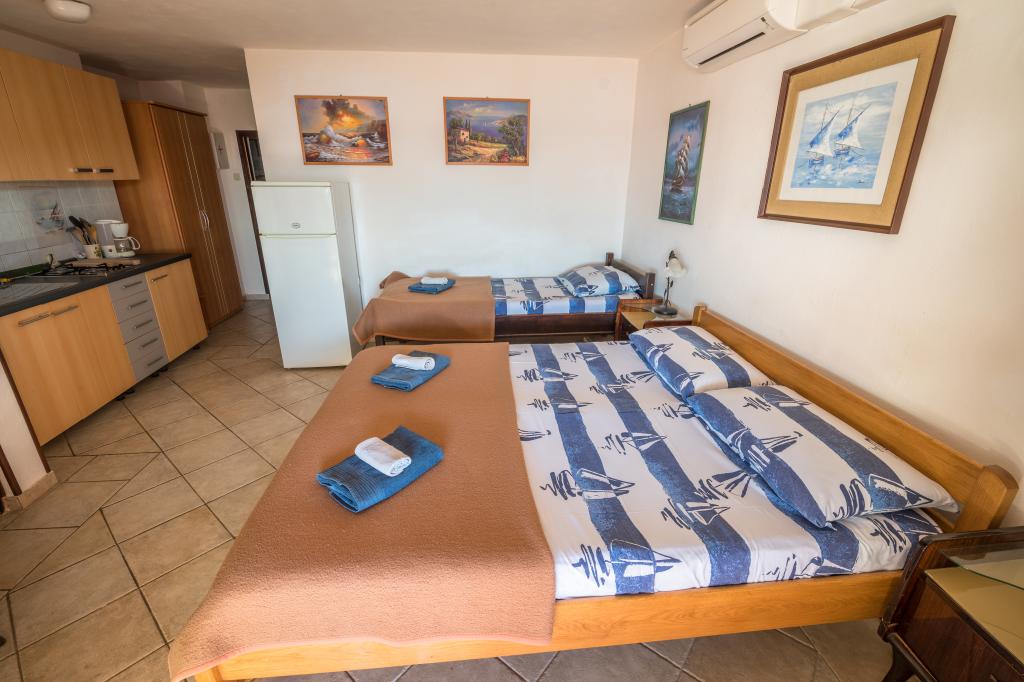 Orașul Miholašćica își are rădăcinile din epoca romană antică. Este situat în partea cea mai îmblânzită a coastei Cres, lângă un golf spațios deschis spre sud-vest. Orașul frumos amenajat Miholašćica și orașul vecin Martinšćica, cu multă vegetație mediteraneană, sunt orientate spre turismul de familie și camping. Astăzi, Miholašćica este un loc turistic unde, cu vedere la insula Žeča, veți evita aglomerația și vă veți găsi vacanța într-un mediu liniștit. Pe lângă plajele frumoase, natura neatinsă oferă oportunități grozave pentru un sejur și vacanță de calitate și activ. Apartamentele Villa Goga sunt situate în centrul orașului Miholašćica, la doar 5 minute de mers pe jos de plajă. In cartierul de 300 m sau 10 minute de mers pe jos se afla 2 restaurante, un supermarket si o agentie de turism. Plaja naturală cu pietriș și marea limpede oferă o experiență de neuitat pentru cei mici și o vacanță de neînlocuit pentru adulți. Există un bar chiar pe plajă, unde vă puteți răcori cu o băutură rece sau puteți distra copiii cu înghețată din gama largă.