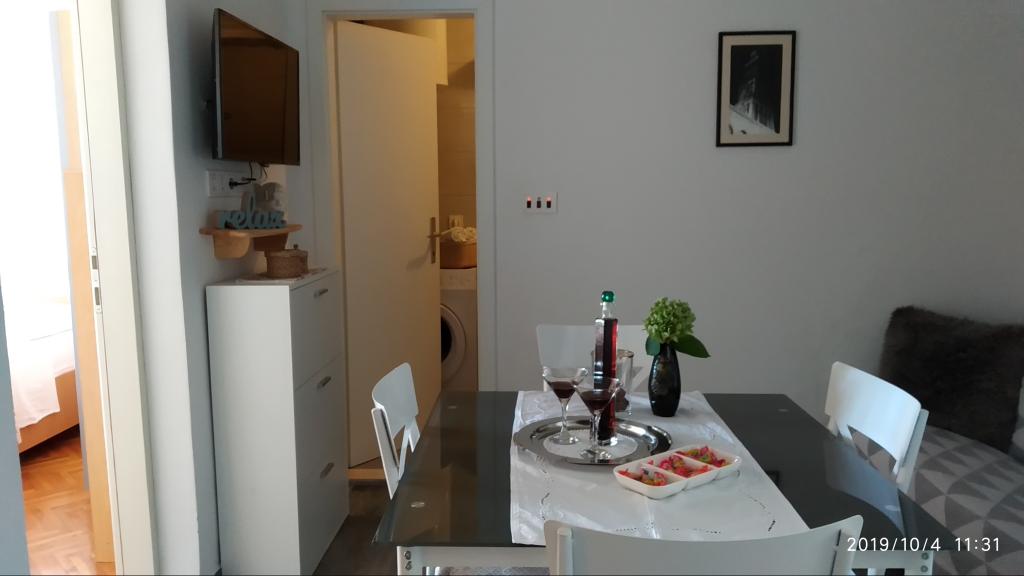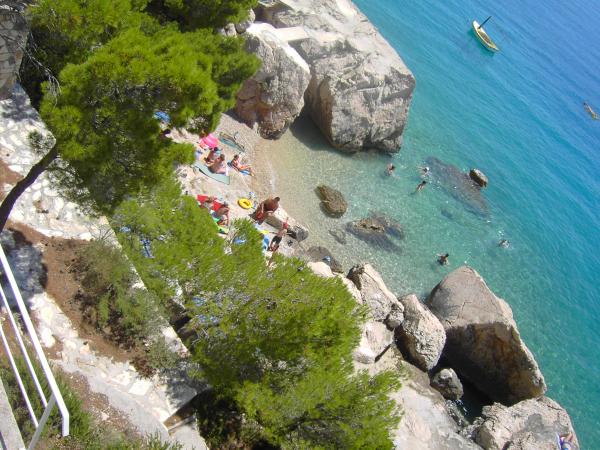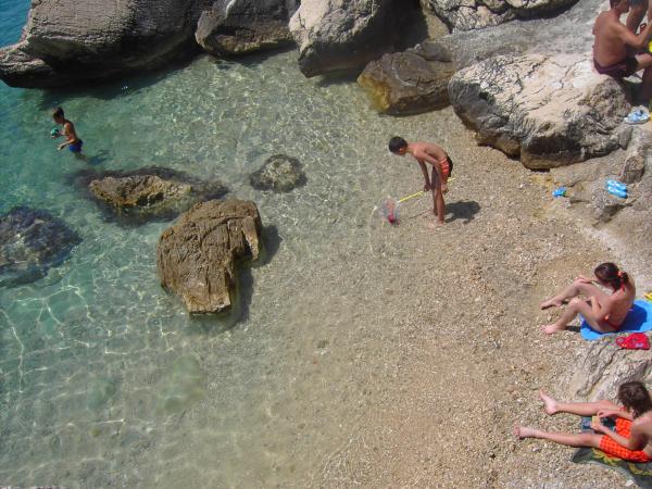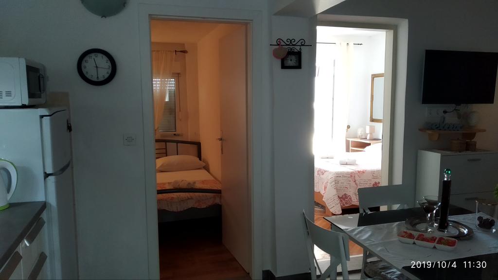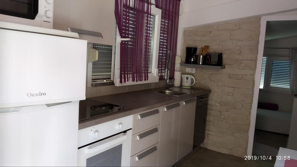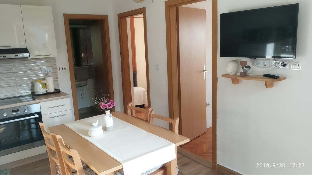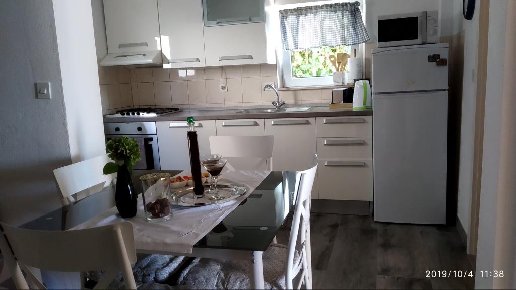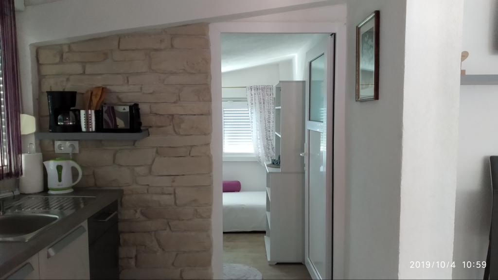 Apartamentul a fost grozav. Am fost acolo între 14.8 și 21.8.2018. Nu era nimic rău. Gazdele aveau o ureche deschisă pentru tot. Marea era cel mai frumos lucru la care am fost vreodată. Și am fost în jur în Croația. Apa era atât de limpede și curată. Doar un vis. Copiii pot sări de la înălțimi diferite ale rocilor. Dar trebuie să știi că ai 150 de scări la plajă. Calea spre apartament este, prin urmare, epuizantă. Singurul lucru bun este că urcarea este la umbra. Pentru familiile cu copii mici, locul nu este nimic. Pe plajă, proprietarul avea o cameră unde i-ai putea depune lucrurile. A fost foarte convenabil. Nu era o cafenea sau o toaletă pe plajă. Apartamentele sunt situate pe o stradă foarte abruptă și îngustă. Nici o problemă pentru șoferii buni și mașinile puternice. Parcarea în fața casei este foarte bună. Există un magazin pe strada principală de deasupra. Am avut două apartamente la etaj. Ambele au balcoane mari. Ceea ce am regretat personal că nu ați putut elimina separarea de pe balcon. Altfel am fi avut un balcon uriaș comun. Mai puteam mânca împreună. În afara se află și scaune. Un apartament la etaj are o mașină de spălat. Pe unele ferestre există plase de țânțari. Din păcate, dormitorul nostru nu avea posibilități de întârziere. Vederea apartamentelor a fost fantastică.