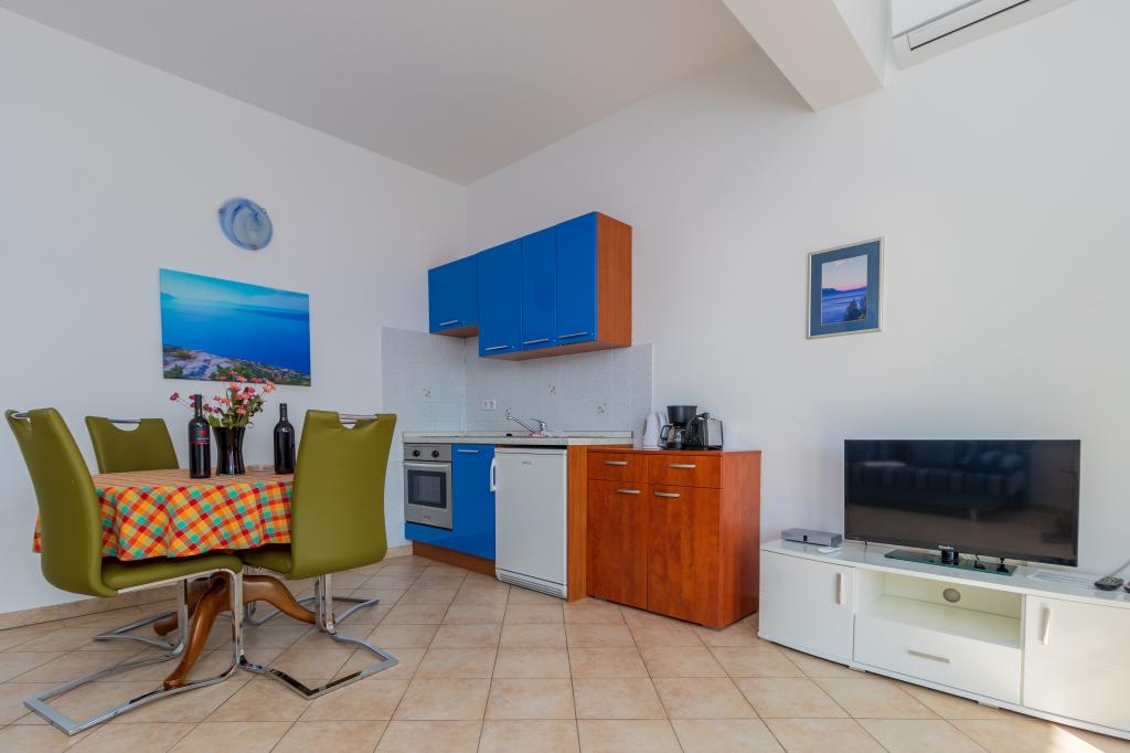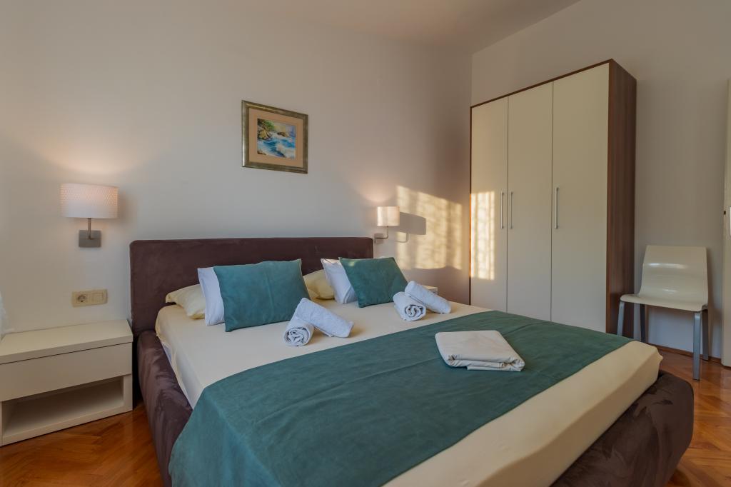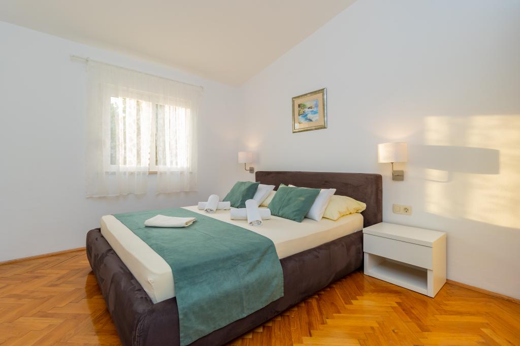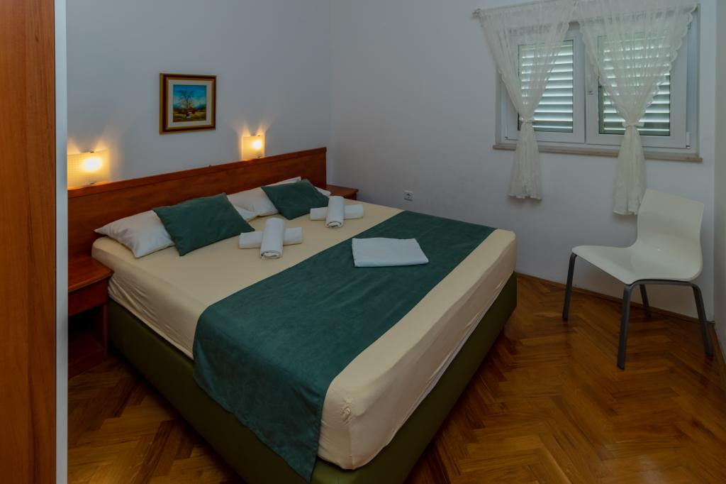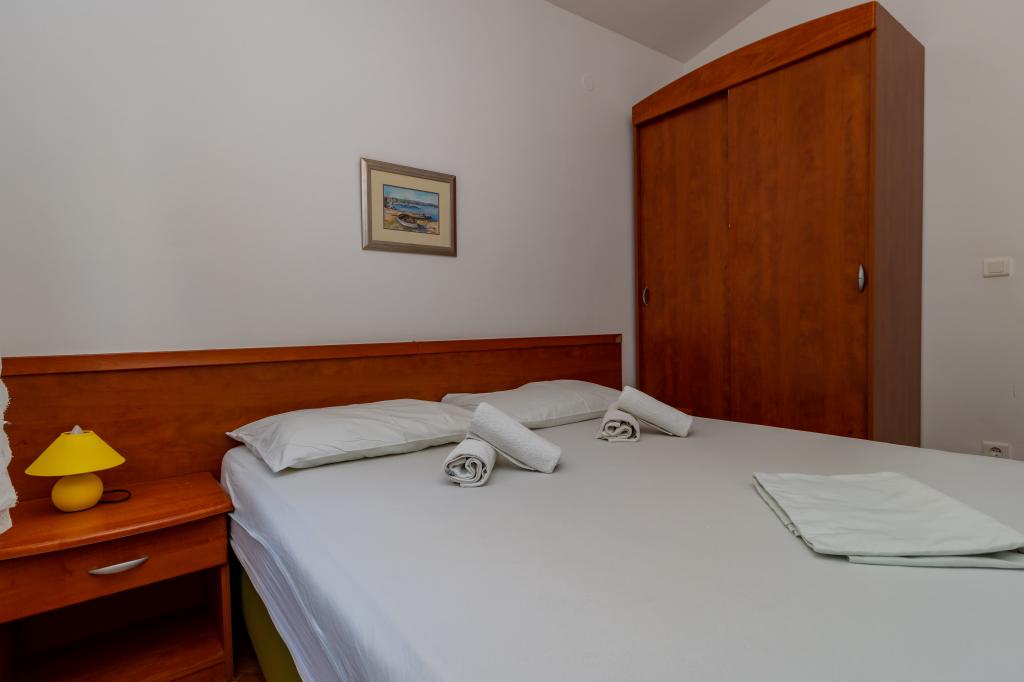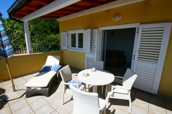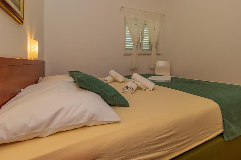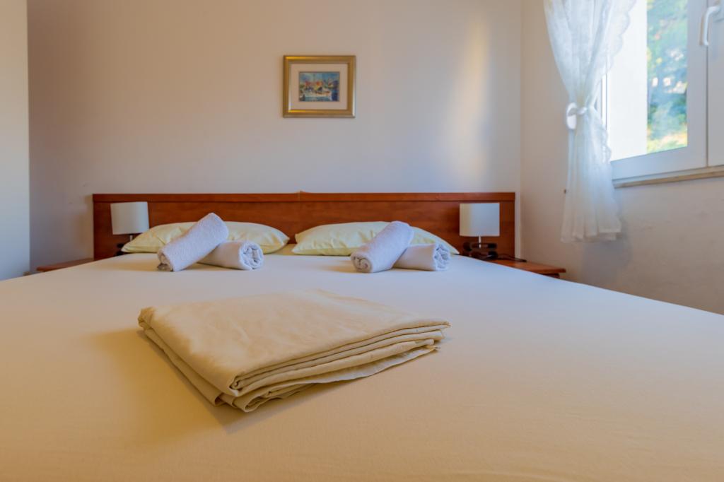 Vila Mandolina este situată chiar deasupra plajei, la marginea unui golf liniștit, iar toate apartamentele au o terasă cu o vedere frumoasă la mare și la insulele din apropiere. Fiecare are o bucătărie modern utilată, baie, internet WIFI gratuit, SAT-TV, aer condiționat, duș, prosoape și lenjerie de pat, living cu canapea extensibilă și sufragerie. Vila are trei sau patru tipuri de apartamente, iar prețurile variază și în funcție de dimensiunea și locația în vilă. Ca oaspete al nostru, utilizați frumoasa plajă (grătar pe plajă și la vilă, două șezlonguri gratuite per apartament până la sfârșitul sejurului în vilă, umbrele, duș pe plajă) și parcarea cu supraveghere video, toate gratuite!! Plaja poate fi accesată pe scări direct de la vilă.