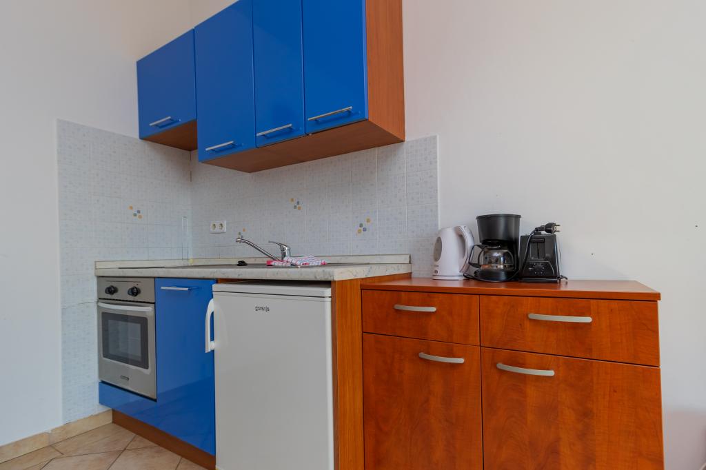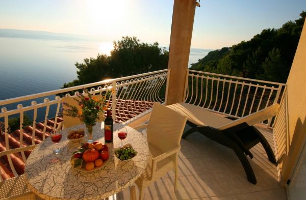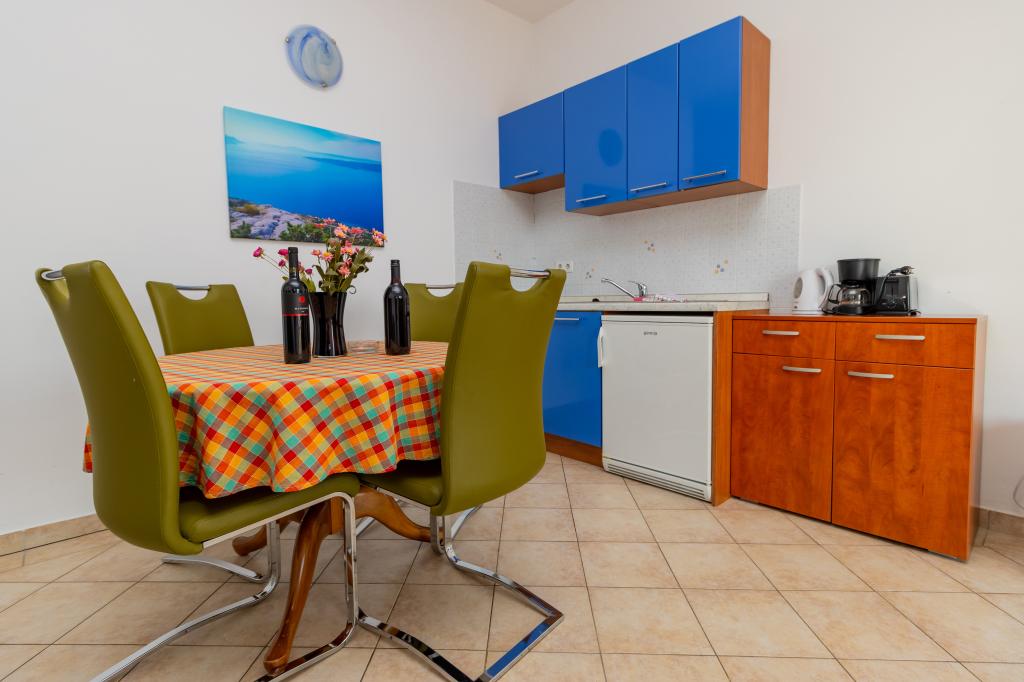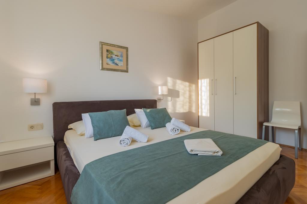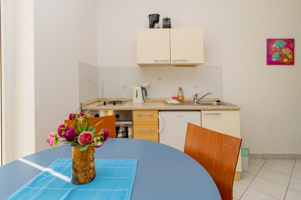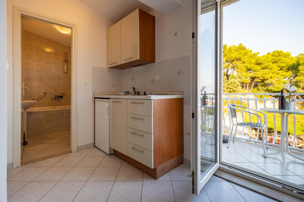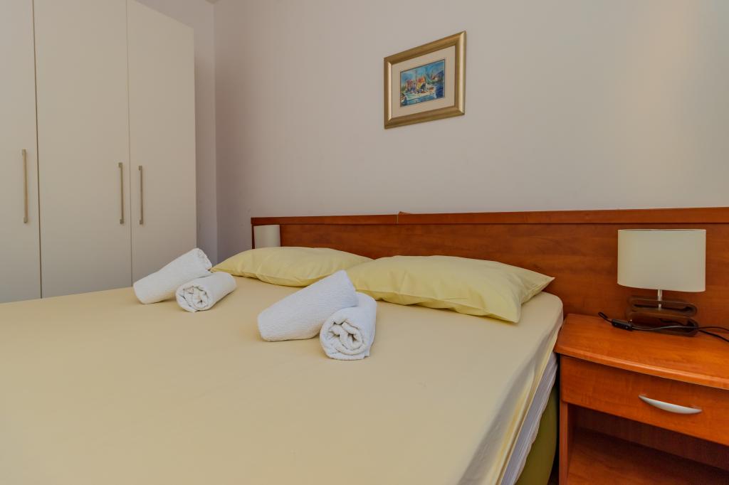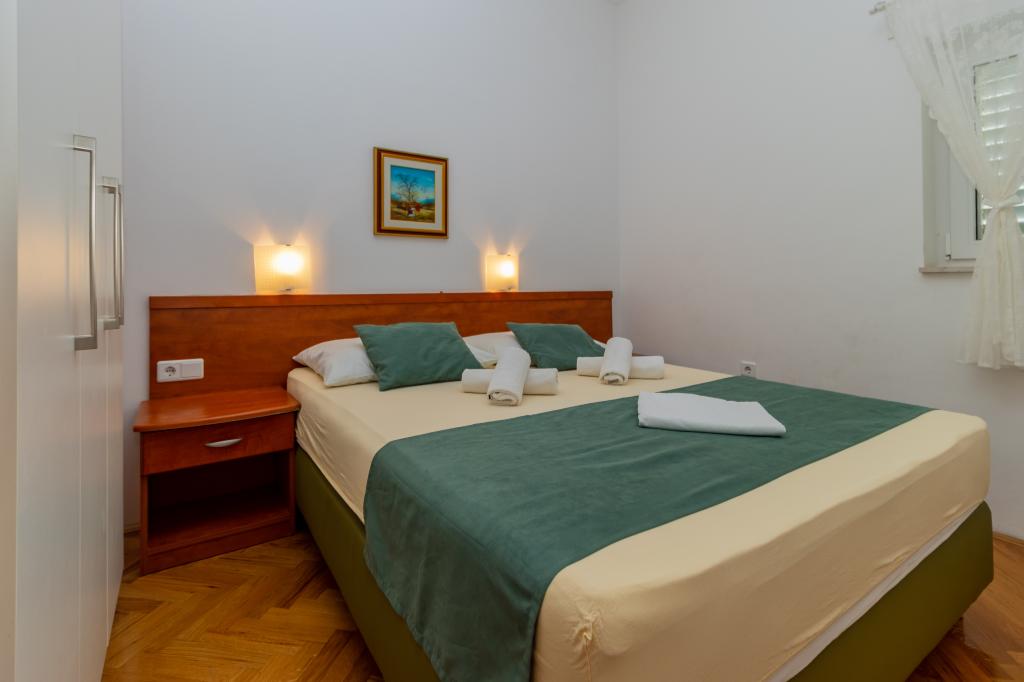 Vila Mandolina este situată chiar deasupra plajei, la marginea unui golf liniștit, iar toate apartamentele au o terasă cu o vedere frumoasă la mare și la insulele din apropiere. Fiecare are o bucătărie modern utilată, baie, internet WIFI gratuit, SAT-TV, aer condiționat, duș, prosoape și lenjerie de pat, living cu canapea extensibilă și sufragerie. Vila are trei sau patru tipuri de apartamente, iar prețurile variază și în funcție de dimensiunea și locația în vilă. Ca oaspete al nostru, utilizați frumoasa plajă (grătar pe plajă și la vilă, două șezlonguri gratuite per apartament până la sfârșitul sejurului în vilă, umbrele, duș pe plajă) și parcarea cu supraveghere video, toate gratuite!! Plaja poate fi accesată pe scări direct de la vilă.