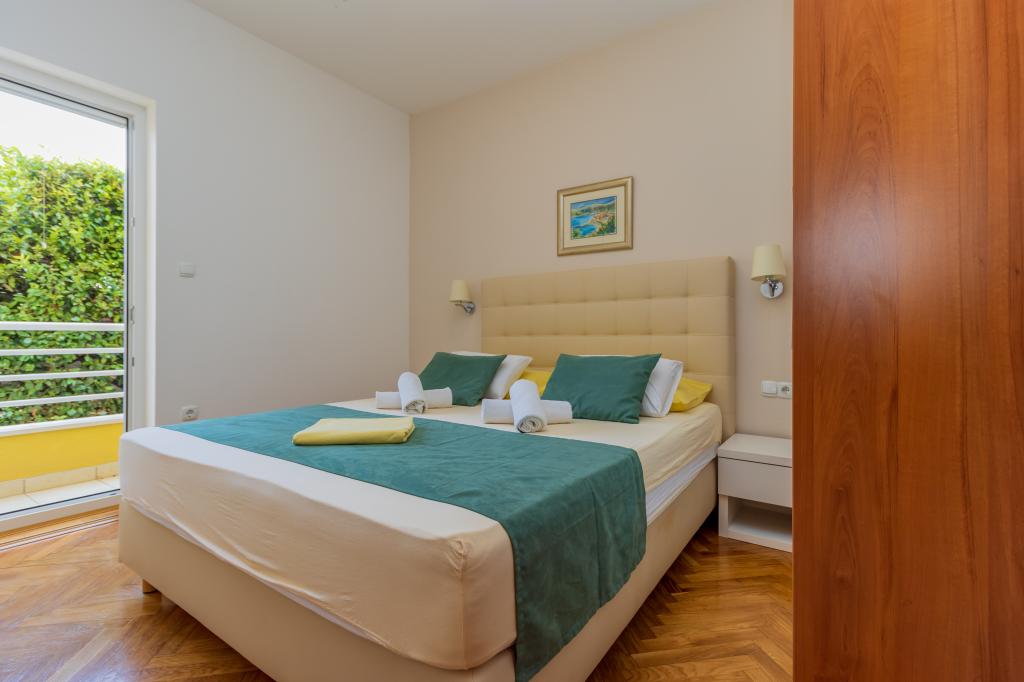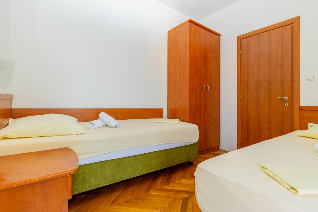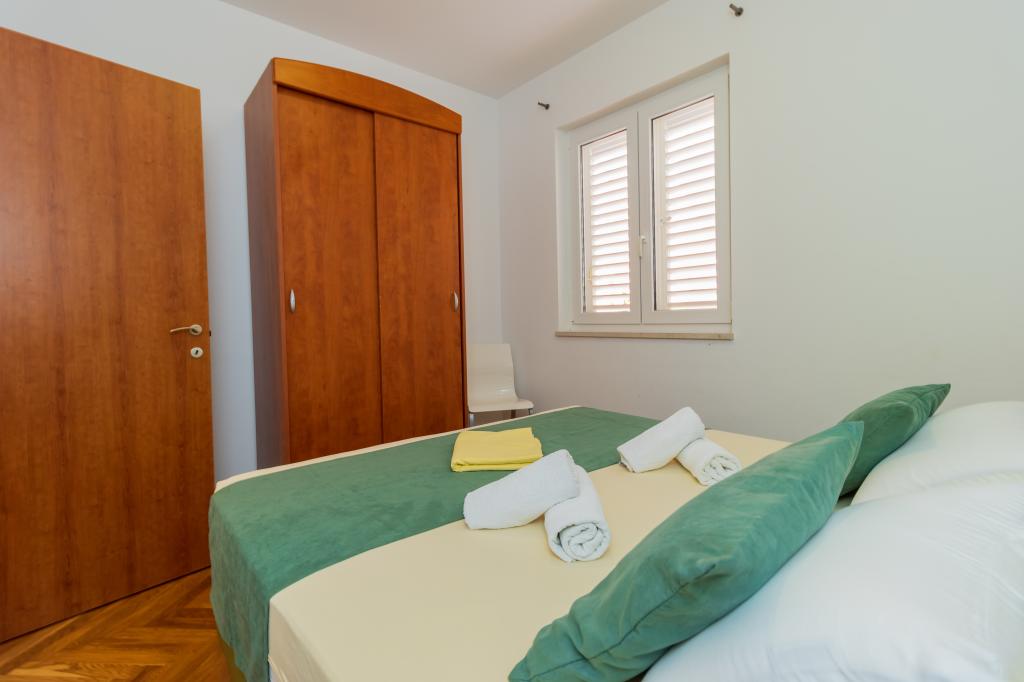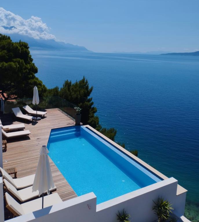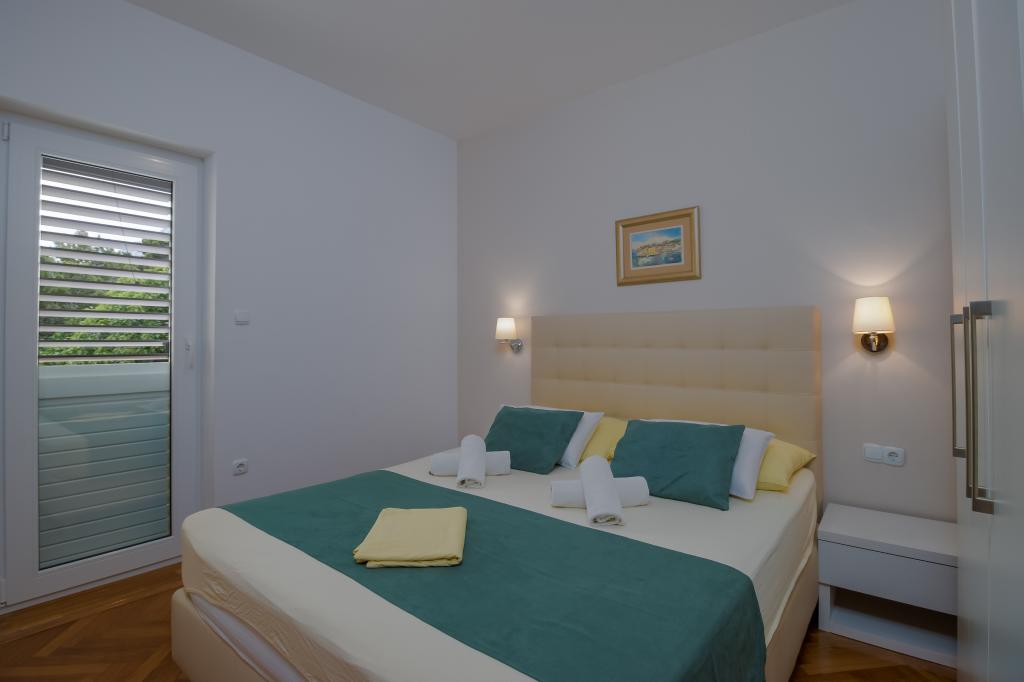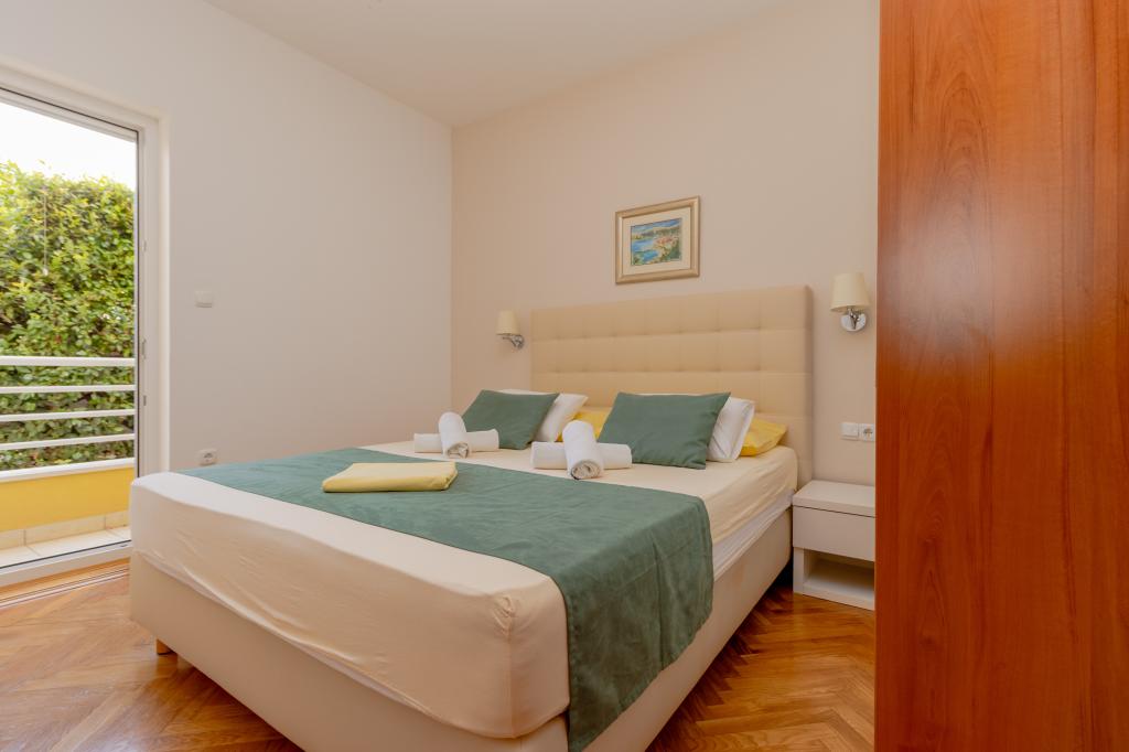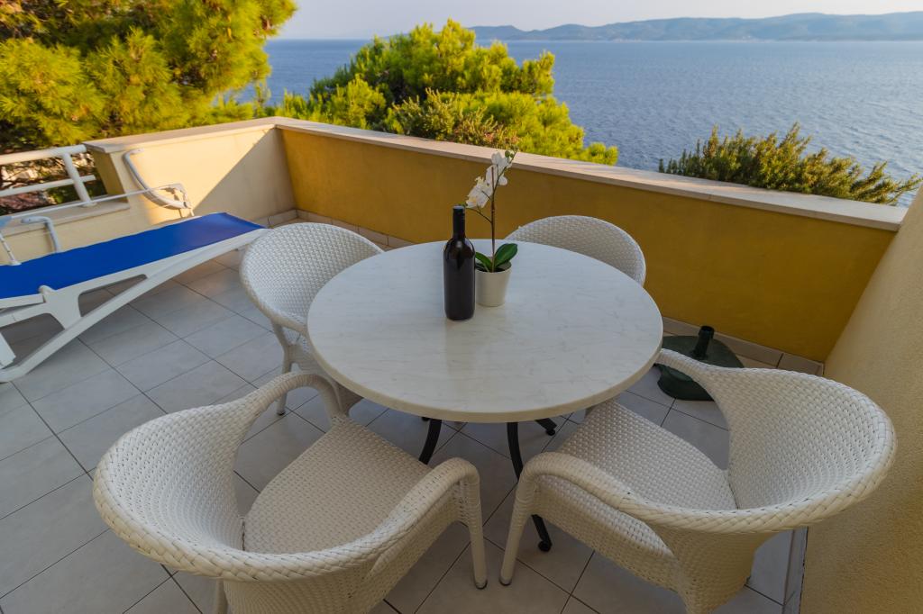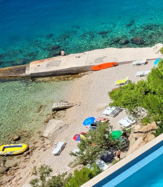 Vila Ruzmarina cu piscină infinită este situată chiar deasupra plajei, la care se ajunge pe scări private și captivează cu vederea la mare. Fiecare apartament are o vedere frumoasă la mare, chiar și fiecare cameră are o priveliște superbă. Există două tipuri de apartamente, unul cu două camere și un living și celălalt cu o cameră și un living. Fiecare apartament are acces la piscină și la sala de fitness, precum și parcare gratuită. De asemenea, pe plajă, prețul include două șezlonguri rezervate pentru fiecare apartament și o umbrelă.