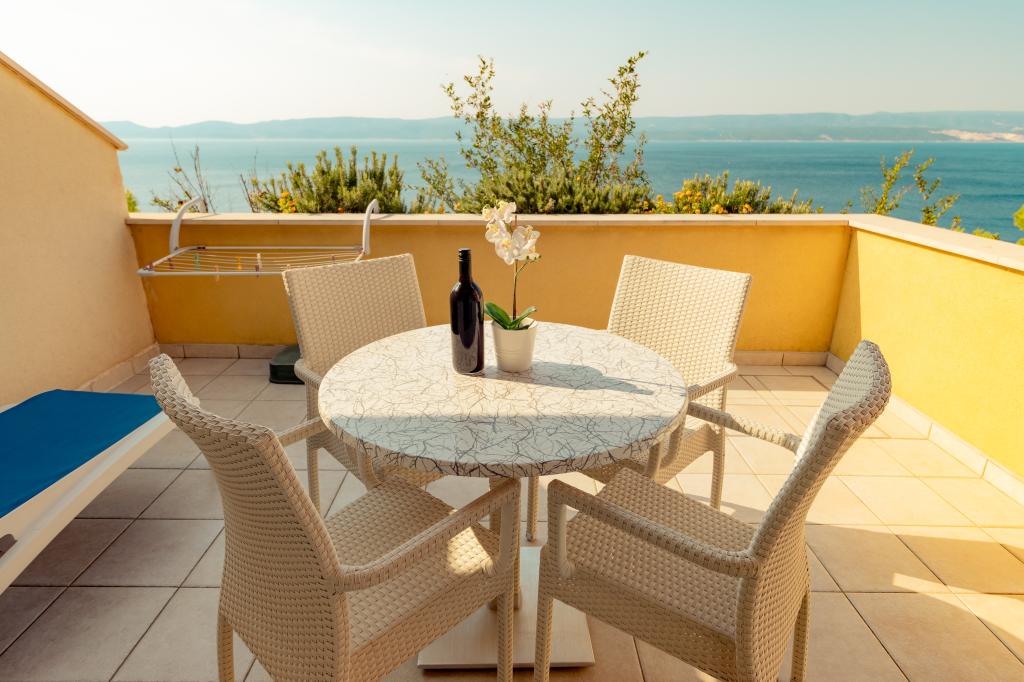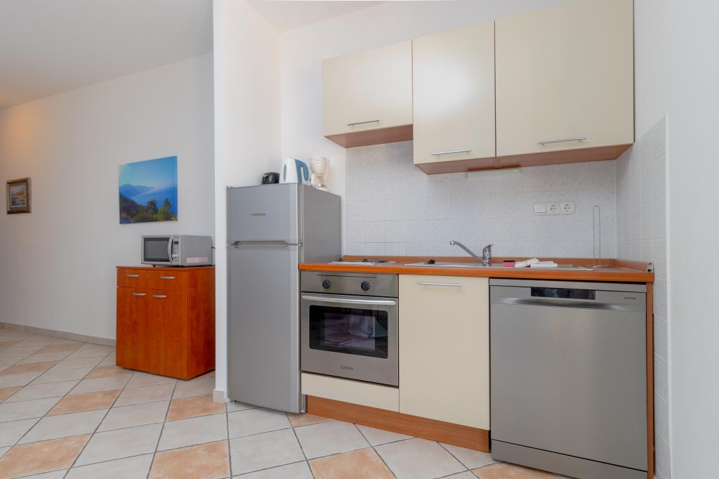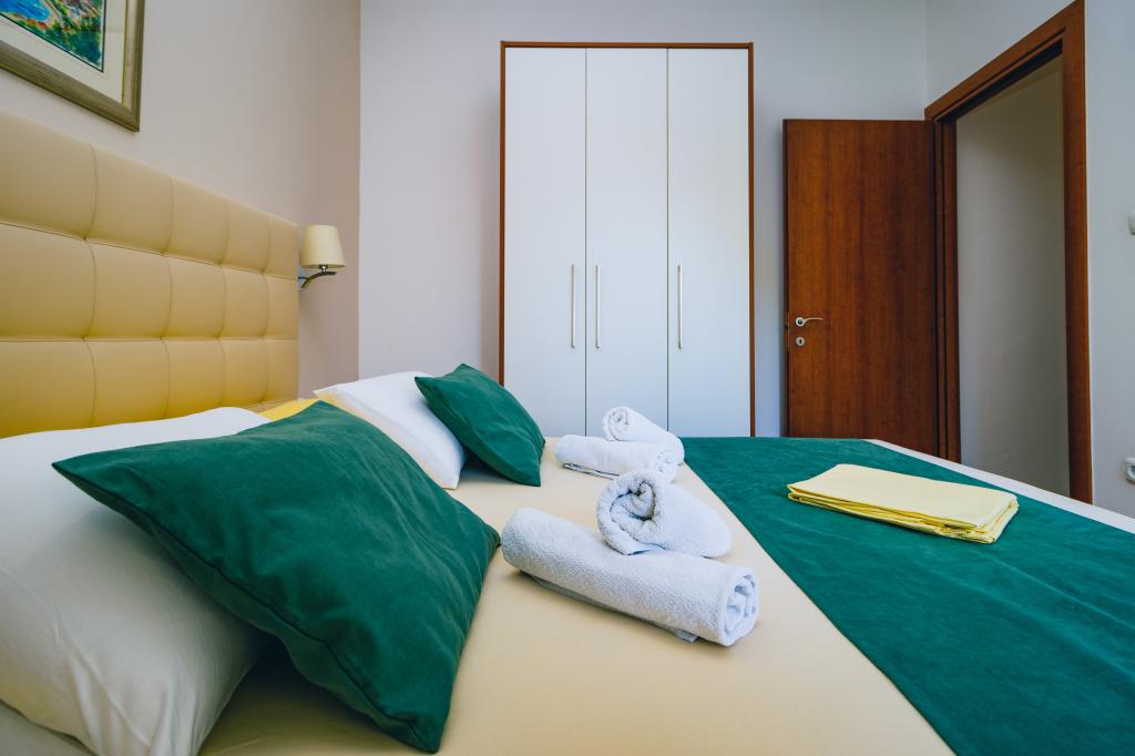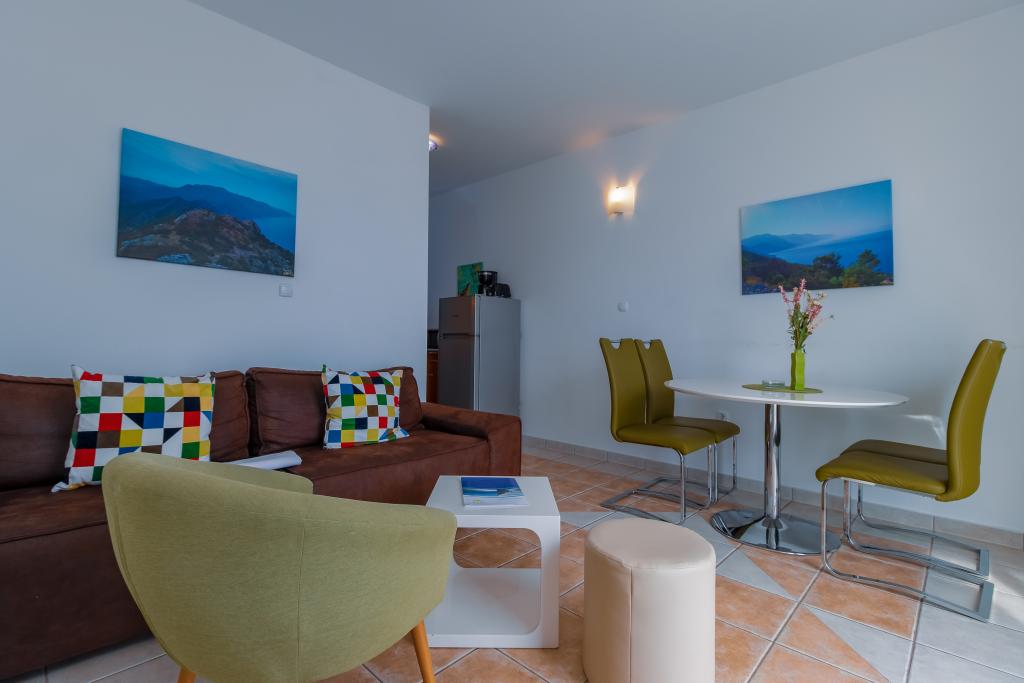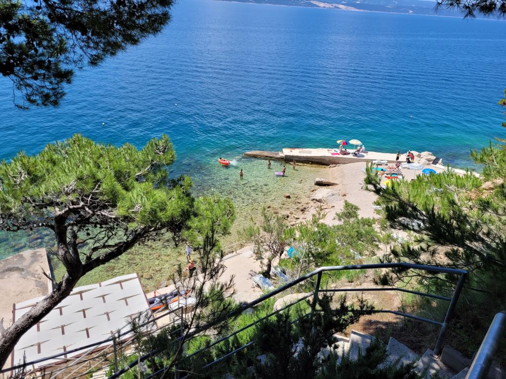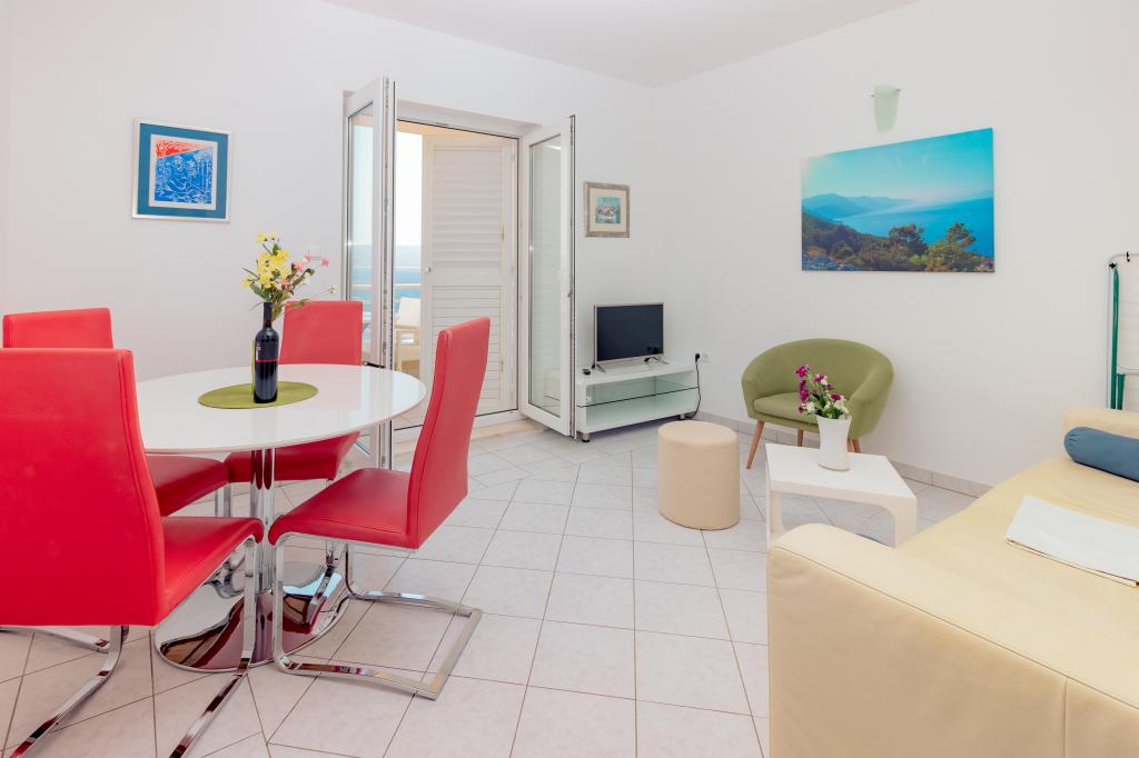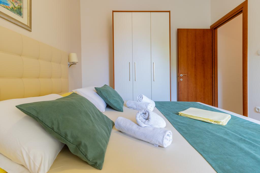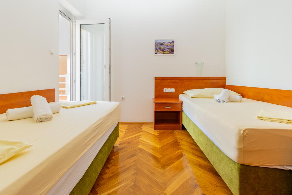 Vila Ruzmarina cu piscină infinită este situată chiar deasupra plajei, la care se ajunge pe scări private și captivează cu vederea la mare. Fiecare apartament are o vedere frumoasă la mare, chiar și fiecare cameră are o priveliște superbă. Există două tipuri de apartamente, unul cu două camere și un living și celălalt cu o cameră și un living. Fiecare apartament are acces la piscină și la sala de fitness, precum și parcare gratuită. De asemenea, pe plajă, prețul include două șezlonguri rezervate pentru fiecare apartament și o umbrelă.