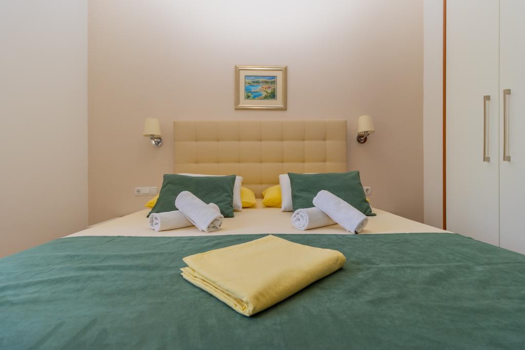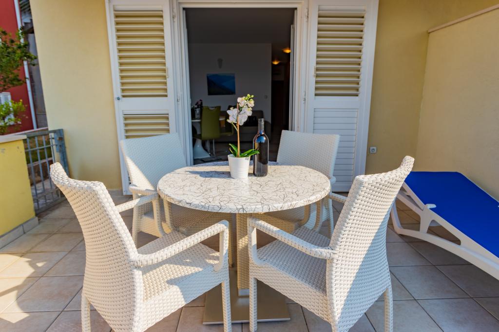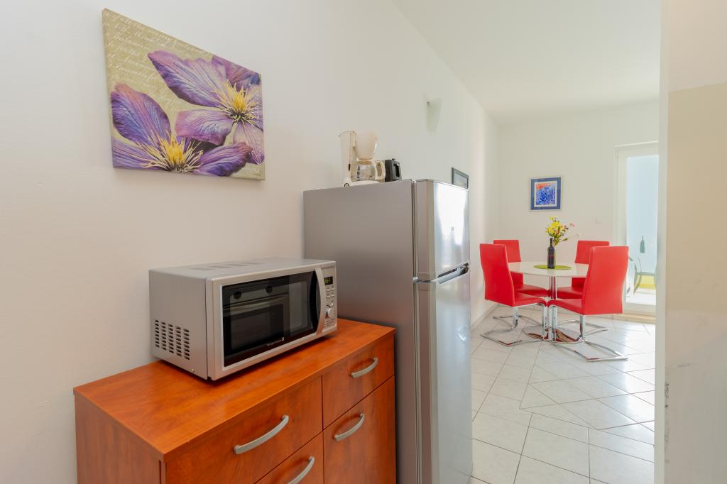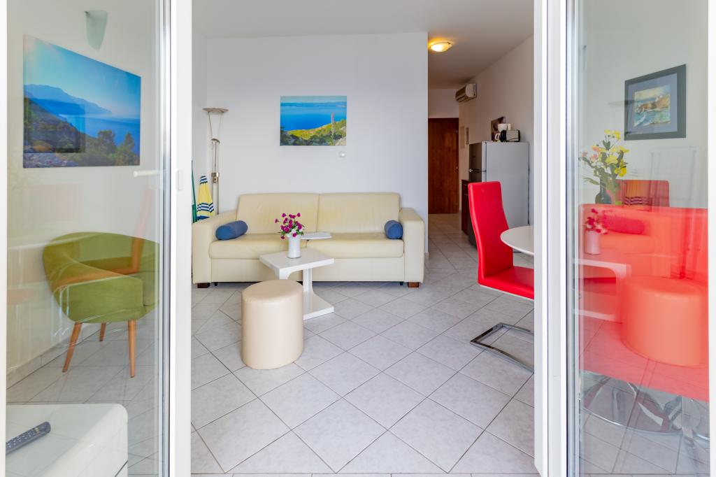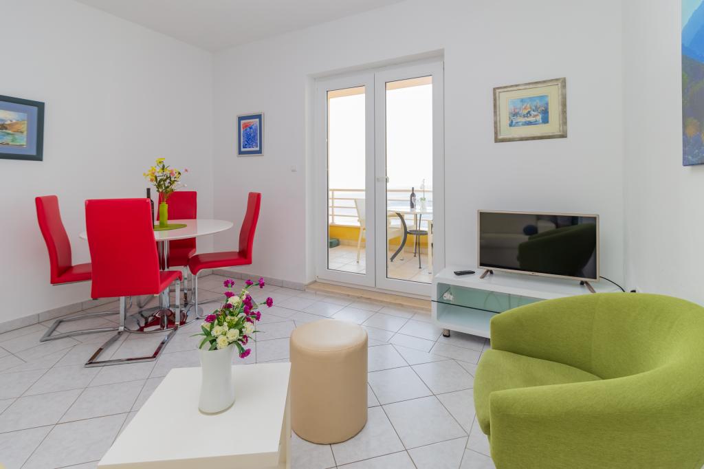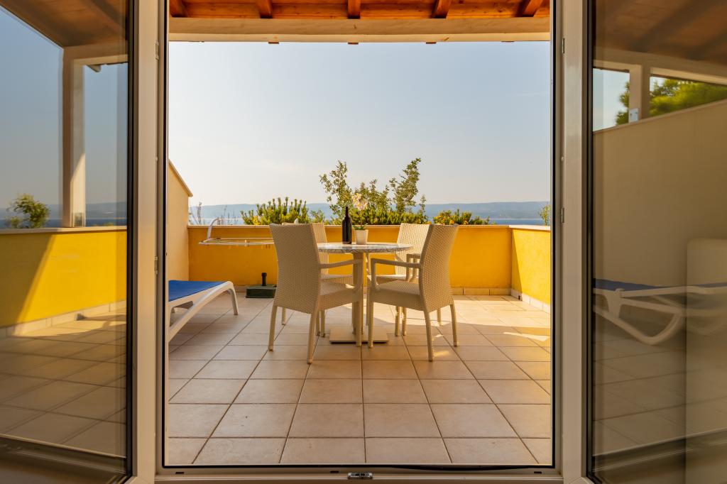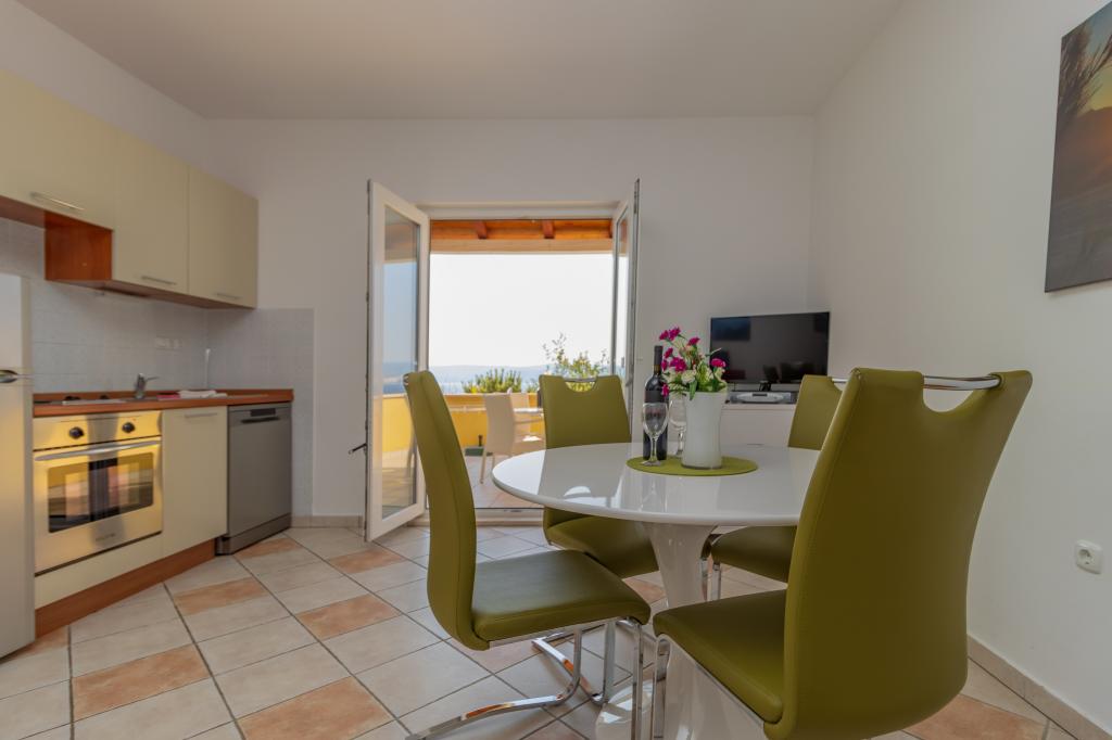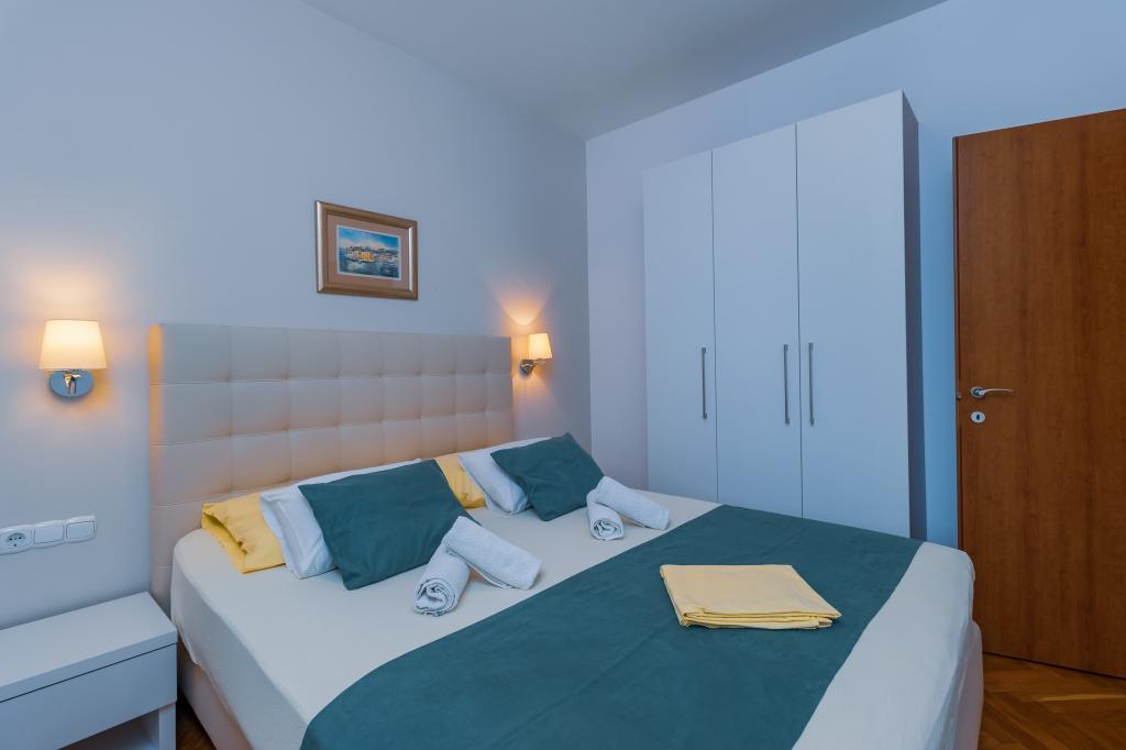 Vila Ruzmarina cu piscină infinită este situată chiar deasupra plajei, la care se ajunge pe scări private și captivează cu vederea la mare. Fiecare apartament are o vedere frumoasă la mare, chiar și fiecare cameră are o priveliște superbă. Există două tipuri de apartamente, unul cu două camere și un living și celălalt cu o cameră și un living. Fiecare apartament are acces la piscină și la sala de fitness, precum și parcare gratuită. De asemenea, pe plajă, prețul include două șezlonguri rezervate pentru fiecare apartament și o umbrelă.