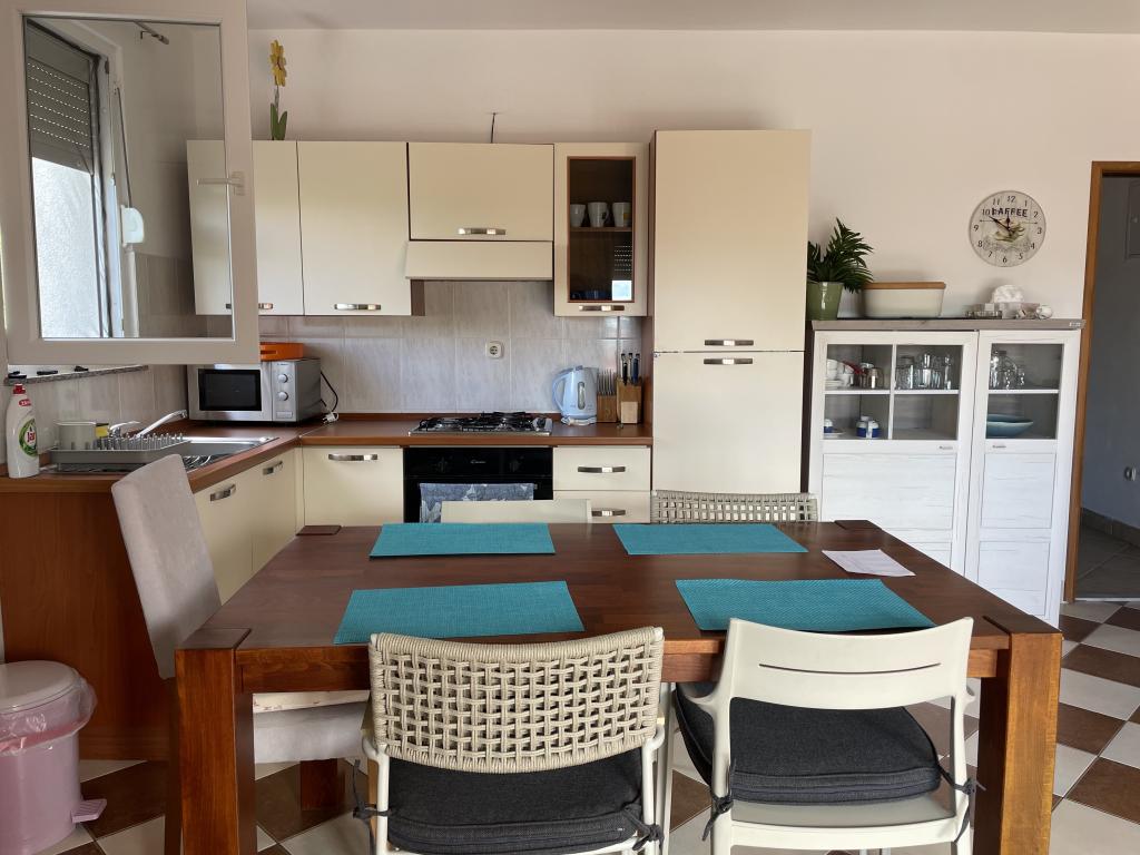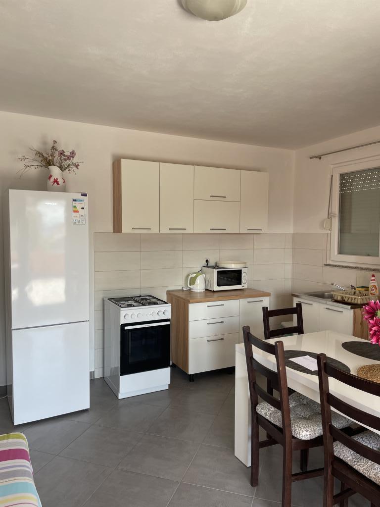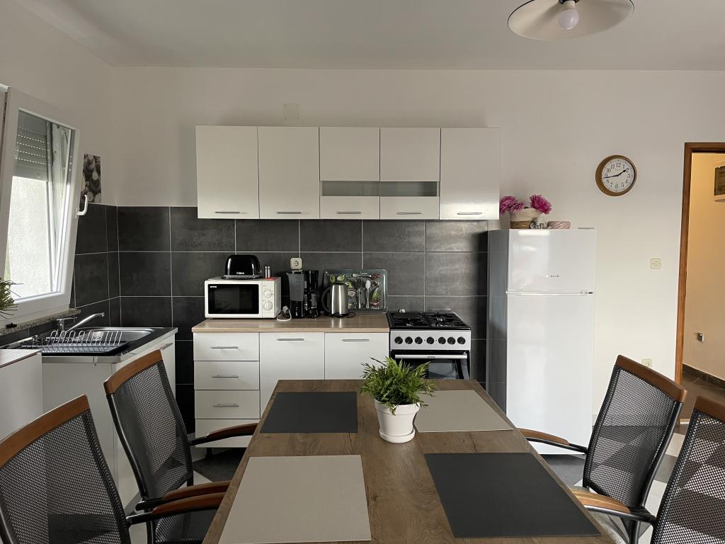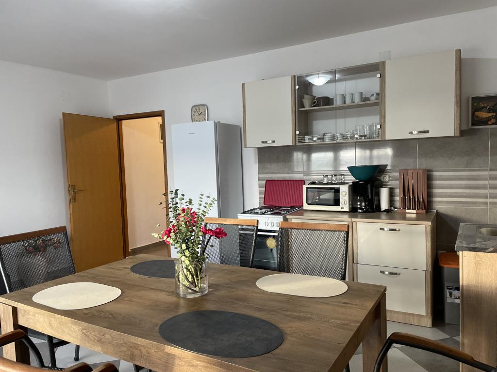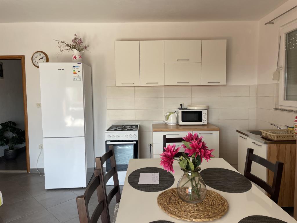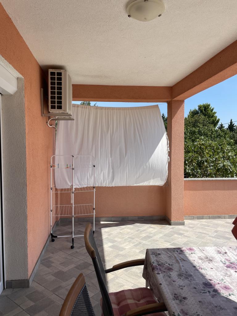 Casă de vacanță de 60 m2, plus o terasa de 31 m2, este situat în centrul orașului Maslenica lângă Zadar pe un teren de 1273 m2, departe de plaja 5 minute de mers. Proprietarii nu locuiesc în casă și oaspeții stau în întreaga clădire. Casa are două dormitoare, baie, living-bucatarie cameră și hol. Terasa are protecție solară. Lenjeria de pat și prosoapele sunt schimbate la fiecare 7 (sapte) zile pentru sejururi mai mult de 7 (șapte) zile. Bucătăria este echipată cu toate echipamentele necesare si materiale Veselă și de luat masa. Casa este dotată cu fier și masă de călcat mașină, uscător, uscător de păr, filtru de cafea și ceainic. Utilizarea Internetului, aer condiționat, TV prin satelit, parcare, uscatoare de par si masini de spalat nu sunt naplaćuje.Kuća este situat într-o zonă liniștită Maslenice cu măslini și alți copaci în jurul clădirii. Bine ai venit!