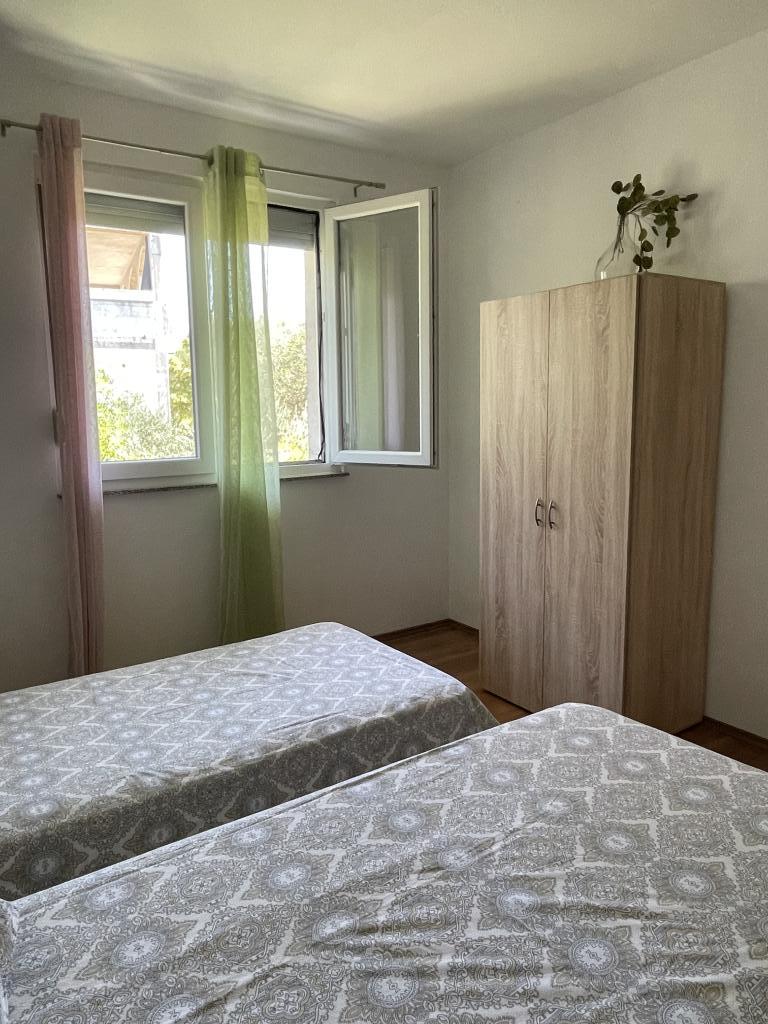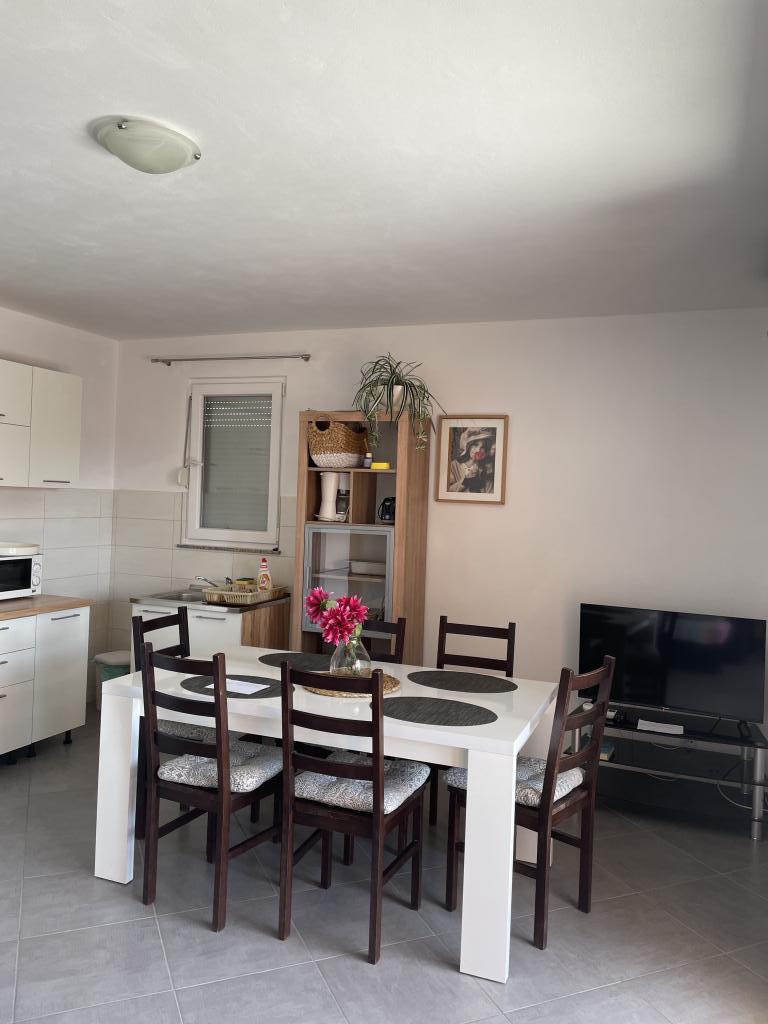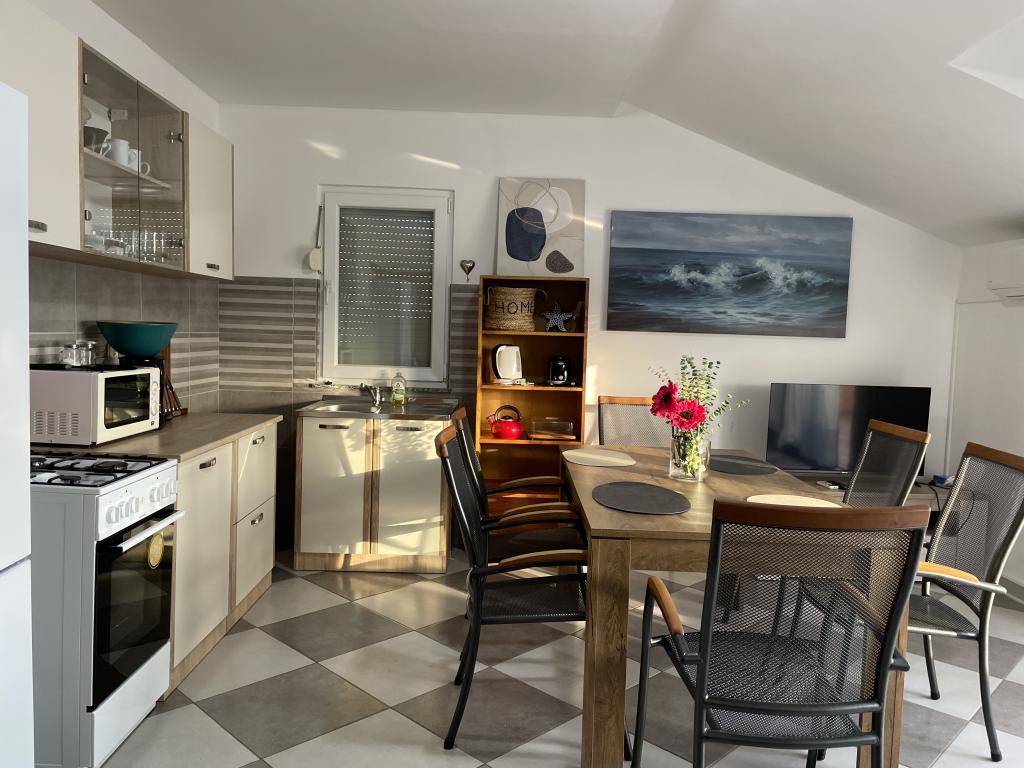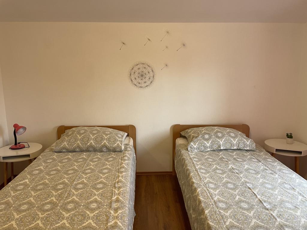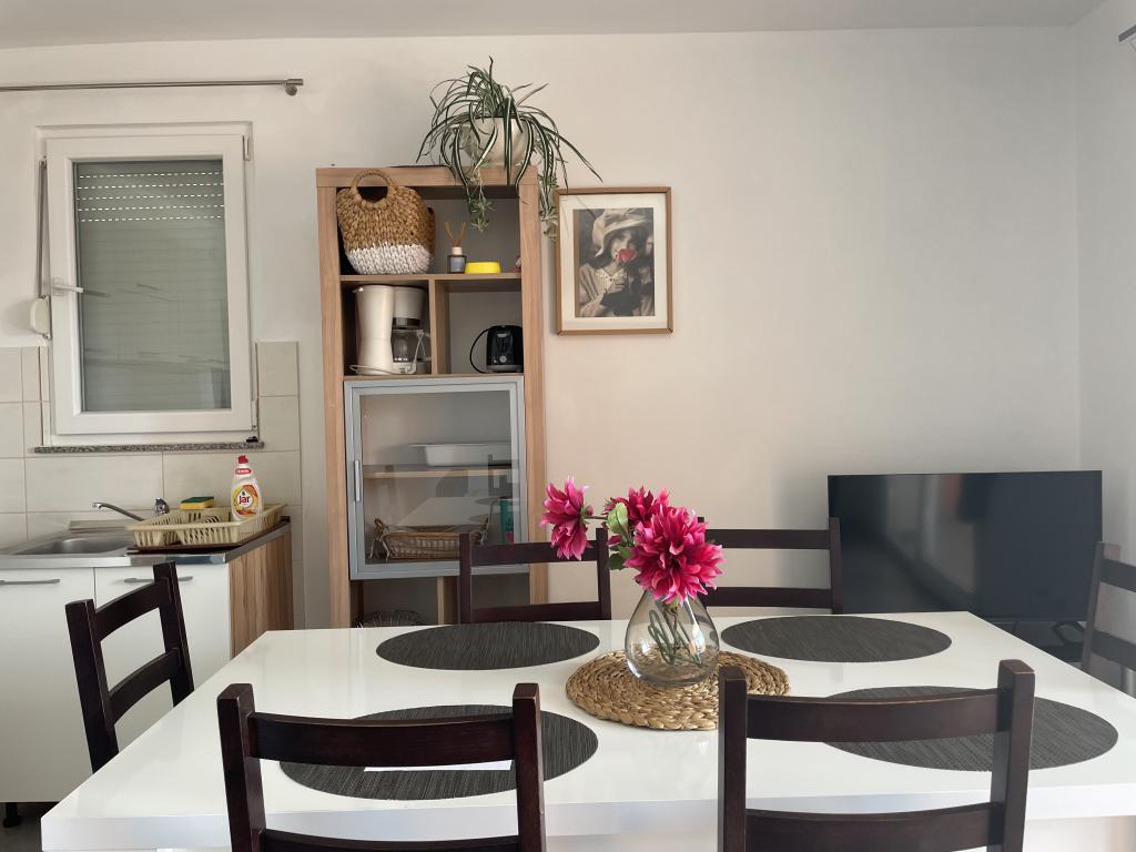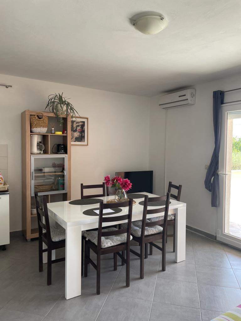 Casă de vacanță de 60 m2, plus o terasa de 31 m2, este situat în centrul orașului Maslenica lângă Zadar pe un teren de 1273 m2, departe de plaja 5 minute de mers. Proprietarii nu locuiesc în casă și oaspeții stau în întreaga clădire. Casa are două dormitoare, baie, living-bucatarie cameră și hol. Terasa are protecție solară. Lenjeria de pat și prosoapele sunt schimbate la fiecare 7 (sapte) zile pentru sejururi mai mult de 7 (șapte) zile. Bucătăria este echipată cu toate echipamentele necesare si materiale Veselă și de luat masa. Casa este dotată cu fier și masă de călcat mașină, uscător, uscător de păr, filtru de cafea și ceainic. Utilizarea Internetului, aer condiționat, TV prin satelit, parcare, uscatoare de par si masini de spalat nu sunt naplaćuje.Kuća este situat într-o zonă liniștită Maslenice cu măslini și alți copaci în jurul clădirii. Bine ai venit!