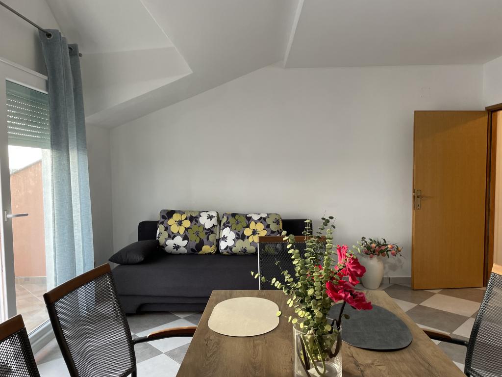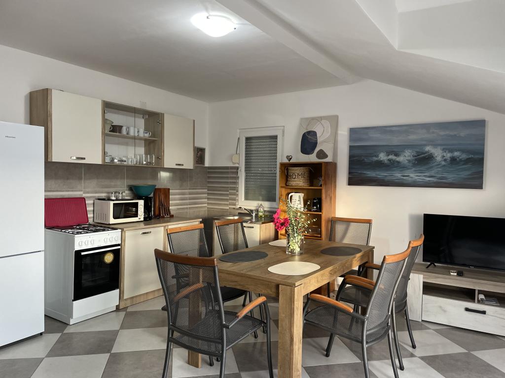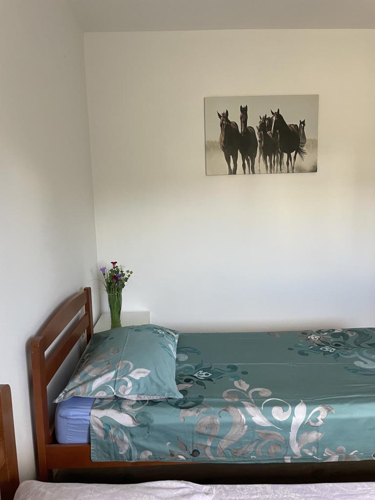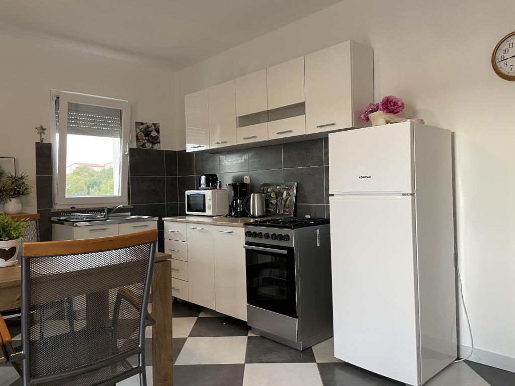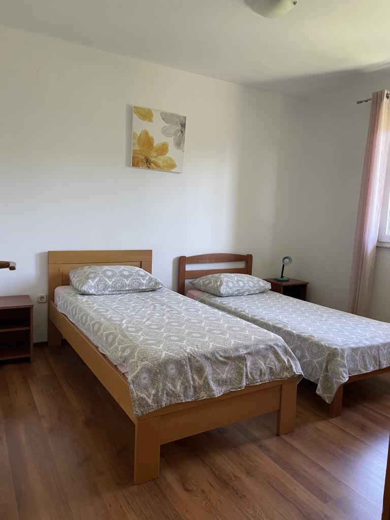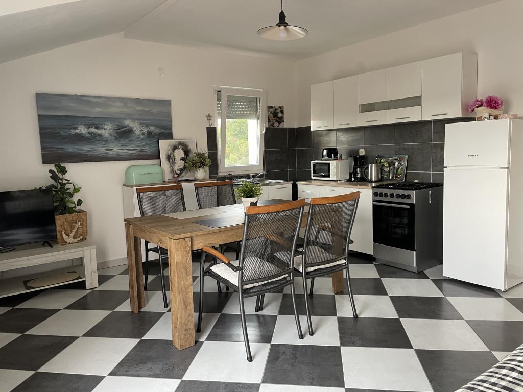 Casă de vacanță de 60 m2, plus o terasa de 31 m2, este situat în centrul orașului Maslenica lângă Zadar pe un teren de 1273 m2, departe de plaja 5 minute de mers. Proprietarii nu locuiesc în casă și oaspeții stau în întreaga clădire. Casa are două dormitoare, baie, living-bucatarie cameră și hol. Terasa are protecție solară. Lenjeria de pat și prosoapele sunt schimbate la fiecare 7 (sapte) zile pentru sejururi mai mult de 7 (șapte) zile. Bucătăria este echipată cu toate echipamentele necesare si materiale Veselă și de luat masa. Casa este dotată cu fier și masă de călcat mașină, uscător, uscător de păr, filtru de cafea și ceainic. Utilizarea Internetului, aer condiționat, TV prin satelit, parcare, uscatoare de par si masini de spalat nu sunt naplaćuje.Kuća este situat într-o zonă liniștită Maslenice cu măslini și alți copaci în jurul clădirii. Bine ai venit!