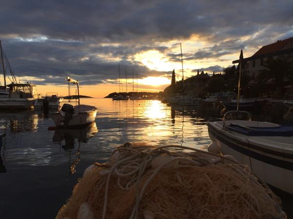 Apartamentul este complet renovat. Este complet echipat și modern, situat într-o zonă liniștită din Maslinica, de unde puteți vedea întregul loc. Facilitatea este situată la 5 minute de mers pe jos de centru și la 7 minute de marea plajă publică. Proprietarii de apartamente sunt disponibili pentru orice servicii (organizarea închirierii de bărci, servicii de transport cu feribotul, achiziționarea de pește de la pescari etc.)