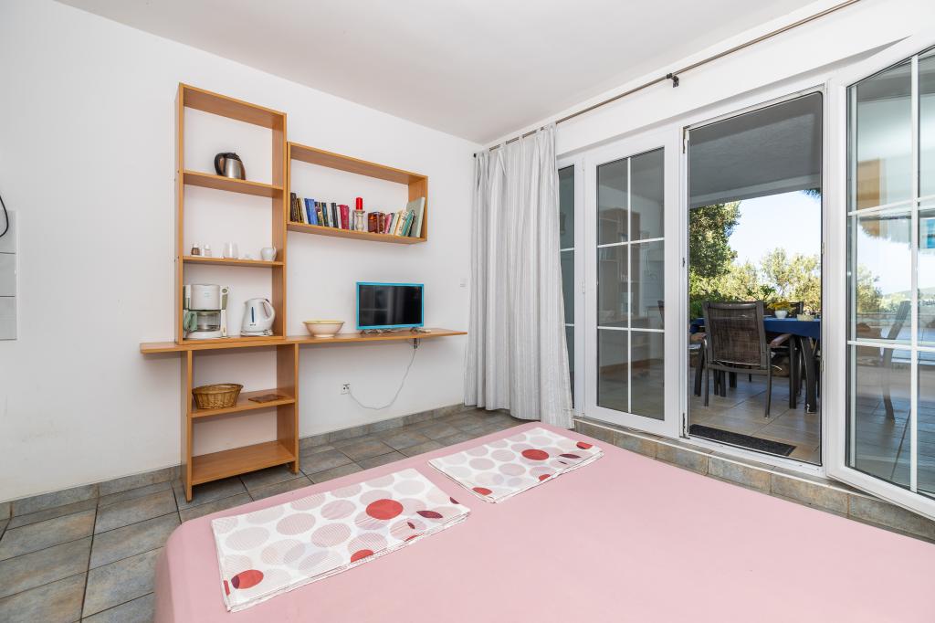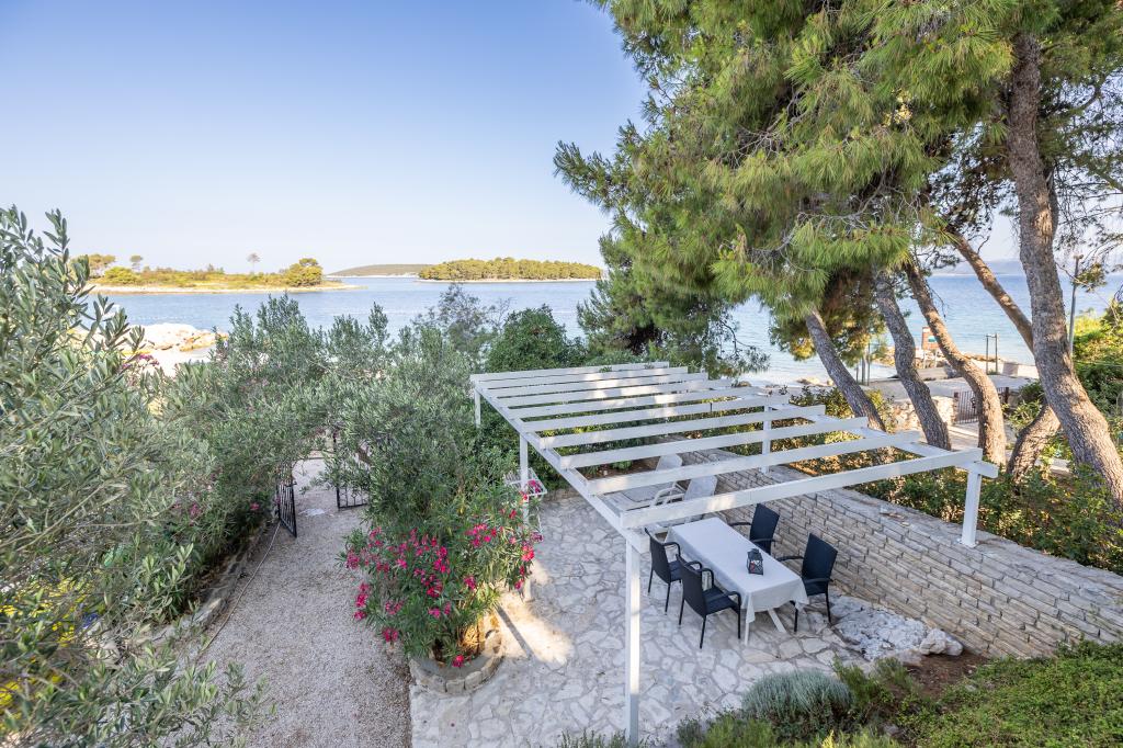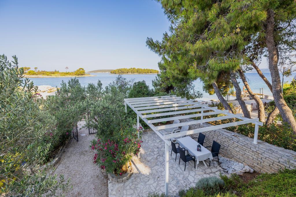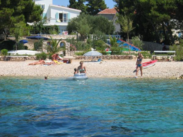 În casa Saskinja, în partea nouă a satului pescăresc Maslinica, chiar lângă o frumoasă plajă cu pietriș, se află 4 apartamente frumos decorate, cu o terasă mare, parțial pentru plajă, parțial la umbra pinilor, toate orientate spre vest, cu o priveliște frumoasă asupra mării și a insulițelor din fața Maslinica. Fiecare apartament are o terasă de pe care puteți admira cele mai frumoase apusuri de soare de pe insulă. Lângă casă se află o curte interioară cu locuri de parcare la umbra pinilor. Oaspeții pot folosi și grătarul din grădină. Centrul orașului, cu o piață, taverne, pizzerie și restaurante, unele dintre ele de înaltă clasă (restaurantul din castelul Martinis Marchi oferă, pe lângă vinuri croate renumite, vinuri de cea mai bună calitate din întreaga lume), se află la doar cincisprezece minute de mers pe jos de-a lungul coastei. Dacă doriți să fiți singuri, înotați sau vâsliți cu caiacul până la insulițele Saskinja sau Polebrnjak, care se află la doar 15 minute de înot de plajă. Pentru cei cărora le place nisipul, plaja cu nisip se află în golful vecin.