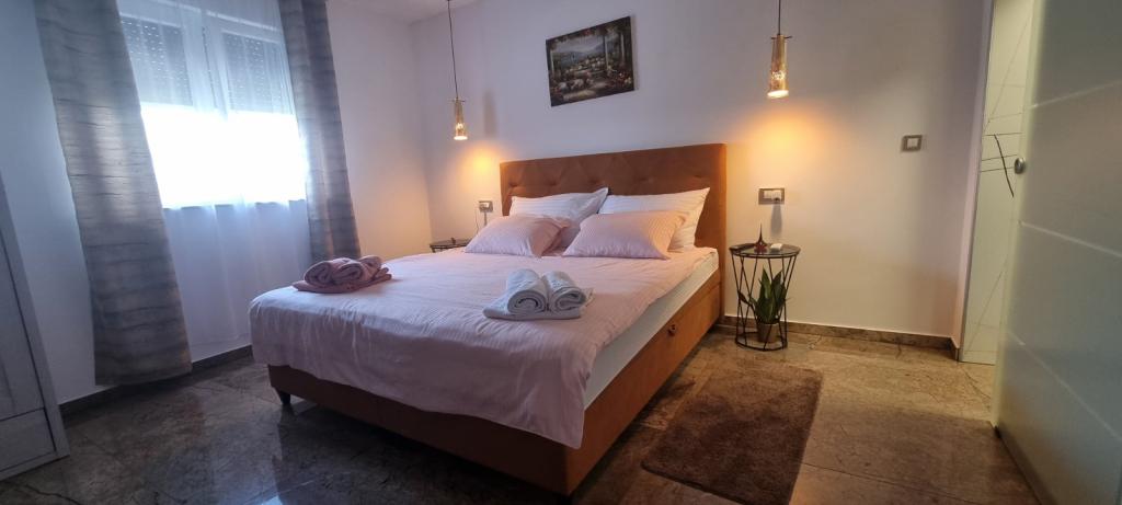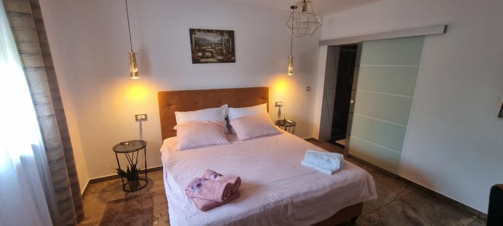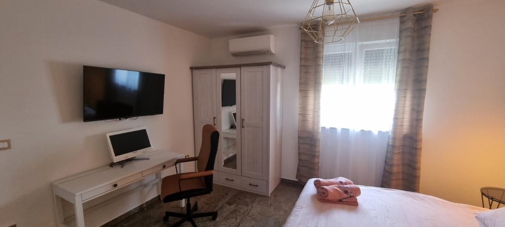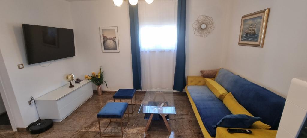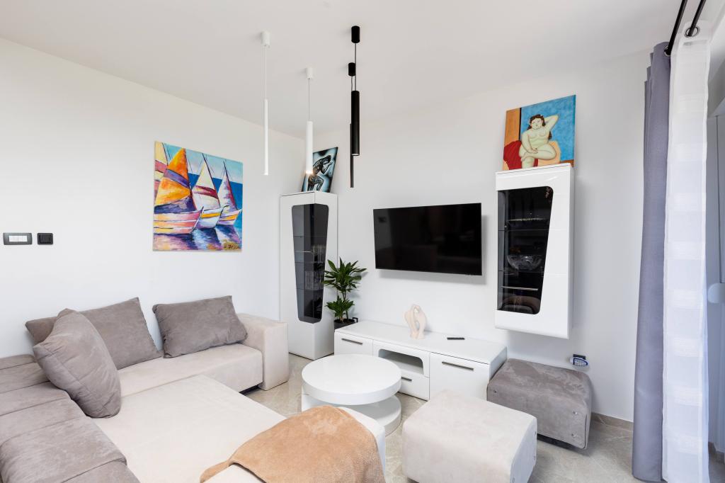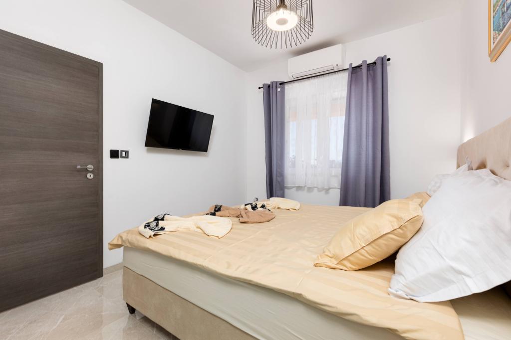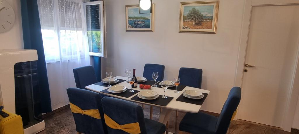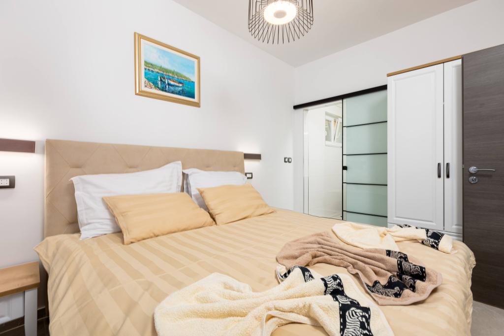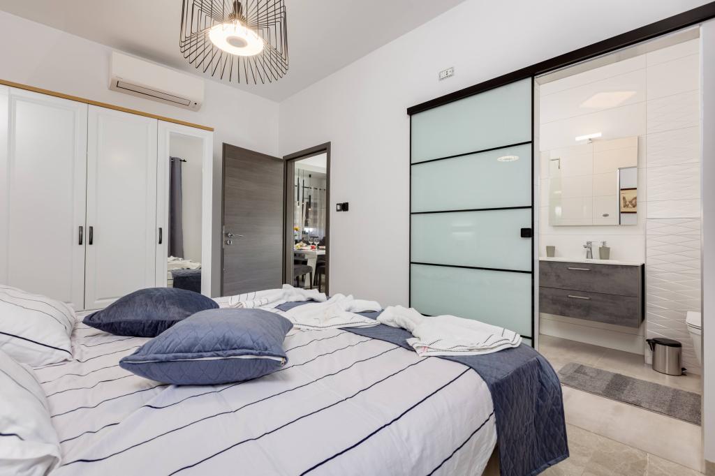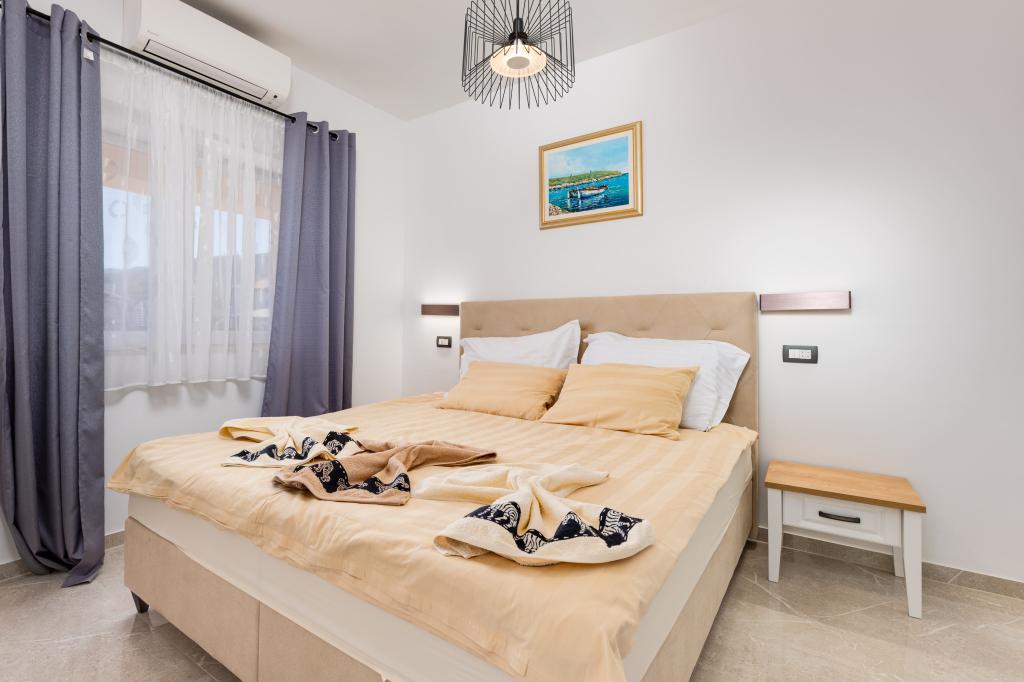 Apartament First Mary este un apartament luxos si confortabil de 127 m2 pentru max. 8 persoane Și conține o bucătărie, un living, o toaletă separată cu mașină de spălat și trei camere cu aer condiționat, baie proprie și TV/SAT. Sala de mese se deschide spre o terasă spațioasă cu o suprafață de 60 m2 și este formată dintr-un grătar cu gaz, un frigider pentru vinuri, o masă pentru 10 persoane și mobilier de grădină pentru a vă bucura și a vă relaxa cu o vedere frumoasă și liniștitoare asupra mării, precum și facilități de agrement, o masă de biliard și cu darts. Apartament Second Mary este un apartament luxos si confortabil de 80 m2 pentru max. 5 persoane cu vedere la mare. Este compus dintr-un living, o bucătărie, o toaletă separată cu mașină de spălat și două camere cu aer condiționat, baie privată și TV/SAT. Apartamentul dispune de o terasa privata de 25 m2 cu gratar pe gaz, masa pentru 6 persoane, frigider pentru vinuri, precum si animatie, fotbal de masa si darts.