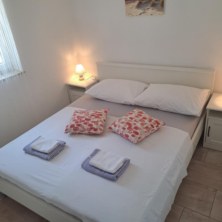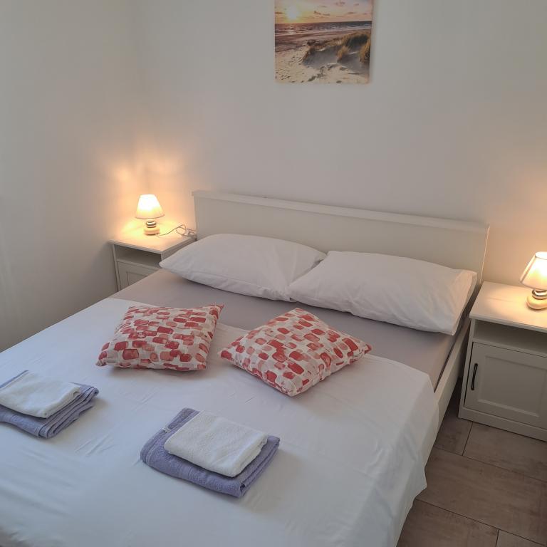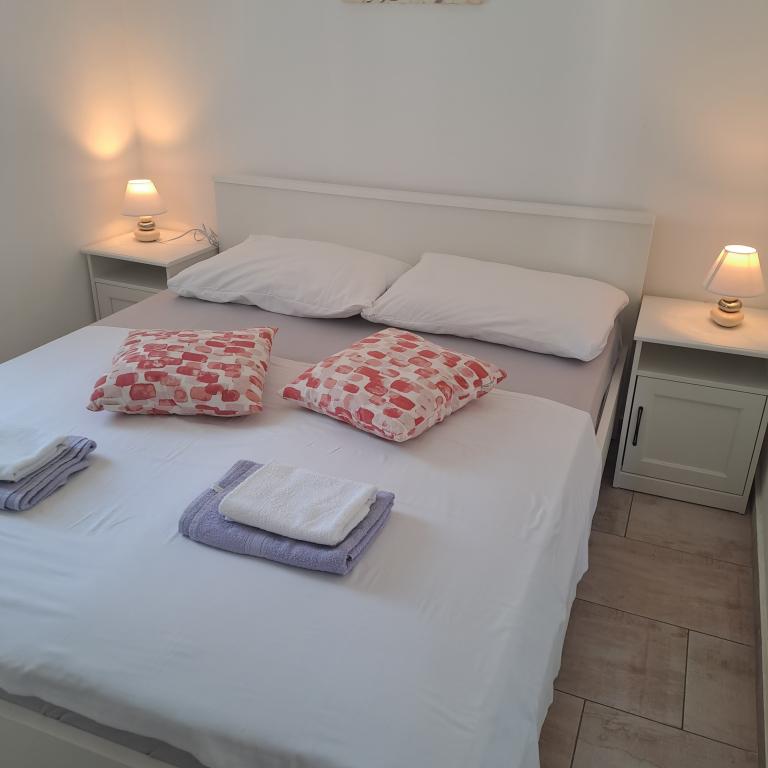 Apartamentele Mila-Casa Bianca sunt situate într-o zonă liniștită din Medulin, la doar 900 m de centru, la 500 m de cea mai apropiată plajă Bijelica, oferind cazare cu WiFi gratuit, grătar și parcare securizată pentru mașina dumneavoastră. Facilitatea este situată la 10 minute de mers pe jos de mare (mergând pe poteca care duce prin pădurea de pini) până la plaja Bijeca sau Belvedere, iar centrul orașului Medulin este la 5-10 minute de mers pe jos (străzile sunt cu sens unic, așa că pe hartă arată mai departe)... Medulin, ca stațiune turistică, pe lângă plajele frumoase, oferă și alte servicii de divertisment și socializare, cum ar fi o fermă cu cai (toate informațiile sunt pe internet), plimbări cu avionul și balonul, un club de scufundări, piste de biciclete în tot Medulinul și împrejurimile, excursii cu barca, promenade frumoase cu evenimente vesele și consum de mâncare și băuturi în aer liber, precum și o ofertă bogată de prosciutto istrian, vin, ulei de măsline și toată bogăția și abundența Istriei noastre...