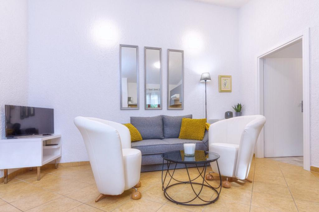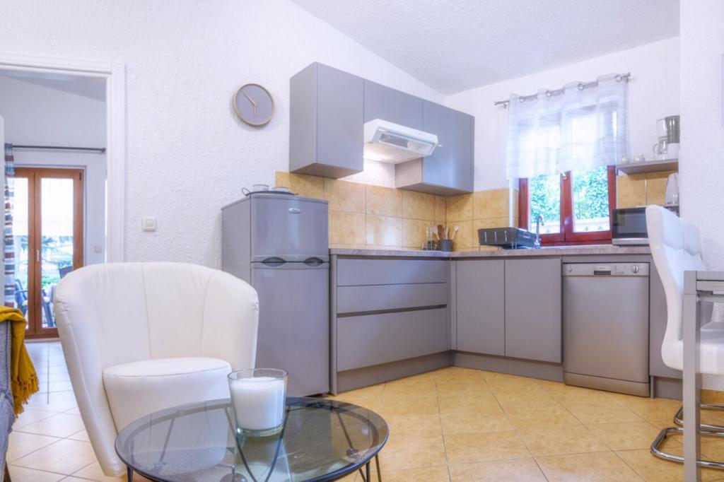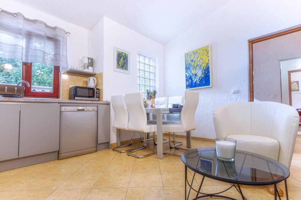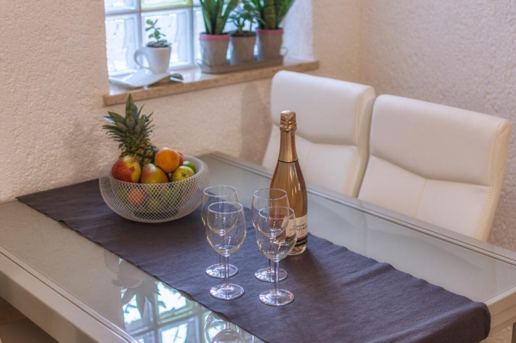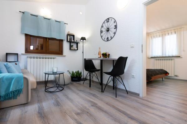 Foarte frumos, parter, apartament central, dar totuși liniștit. Apartamentul este complet utilat, dar daca tot lipseste ceva, proprietara este mereu disponibila. Apartamentul poate fi ocupat cu usurinta de 2 adulti si 2 copii, exista spatiu de joaca in interior si pe terasa mare. Parcarea este disponibilă în incinta împrejmuită Magazin alimentar la 1 minut de mers pe jos. Restaurant local (Konoba Willi) chiar vizavi. La plaja cu pietriș se poate ajunge în 5 minute de mers pe jos. Pot recomanda doar apartamentul si proprietarul.