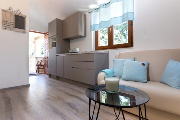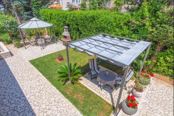 Apartamentele complet echipate sunt situate la 2-3 minute de mers pe jos de plajă. Acestea sunt înconjurate de o grădină mare și de chiparoși. Au parcare privată cu uși automate. Apartamentul 4+ 1 are două dormitoare cu paturi duble și aer condiționat. În camera de zi există o canapea extensibilă pentru 1 persoană. Apartamentul are 2 terase și un foișor cu grătar, care este disponibil pentru oaspeții ambelor apartamente. Bucătăria este complet utilată, inclusiv o mașină de spălat vase. Apartament 2 are un dormitor cu pat dublu și aer condiționat, bucătărie utilată cu mașină de spălat vase, baie, terasă și foișor Ambele apartamente au TV-SAT și Wi-Fi, uscător de păr, fier și masă de călcat, iar apartamentul 4 1 are și mașină de spălat . Lenjeria de pat și prosoapele de baie sunt incluse în preț și se schimbă săptămânal.