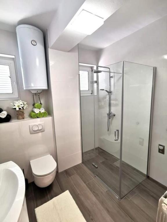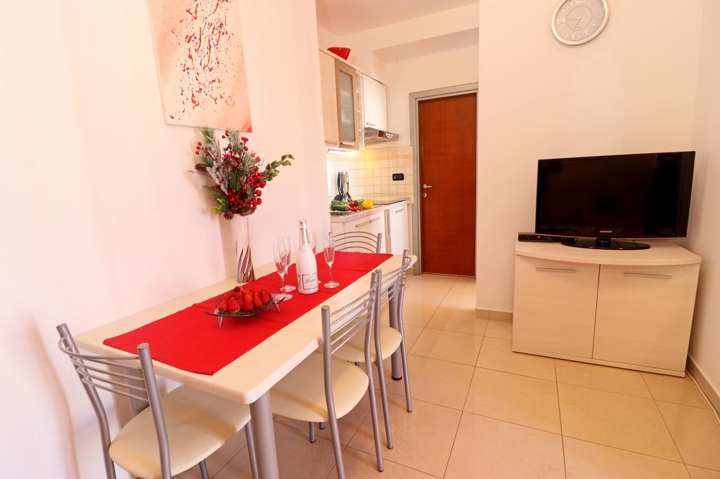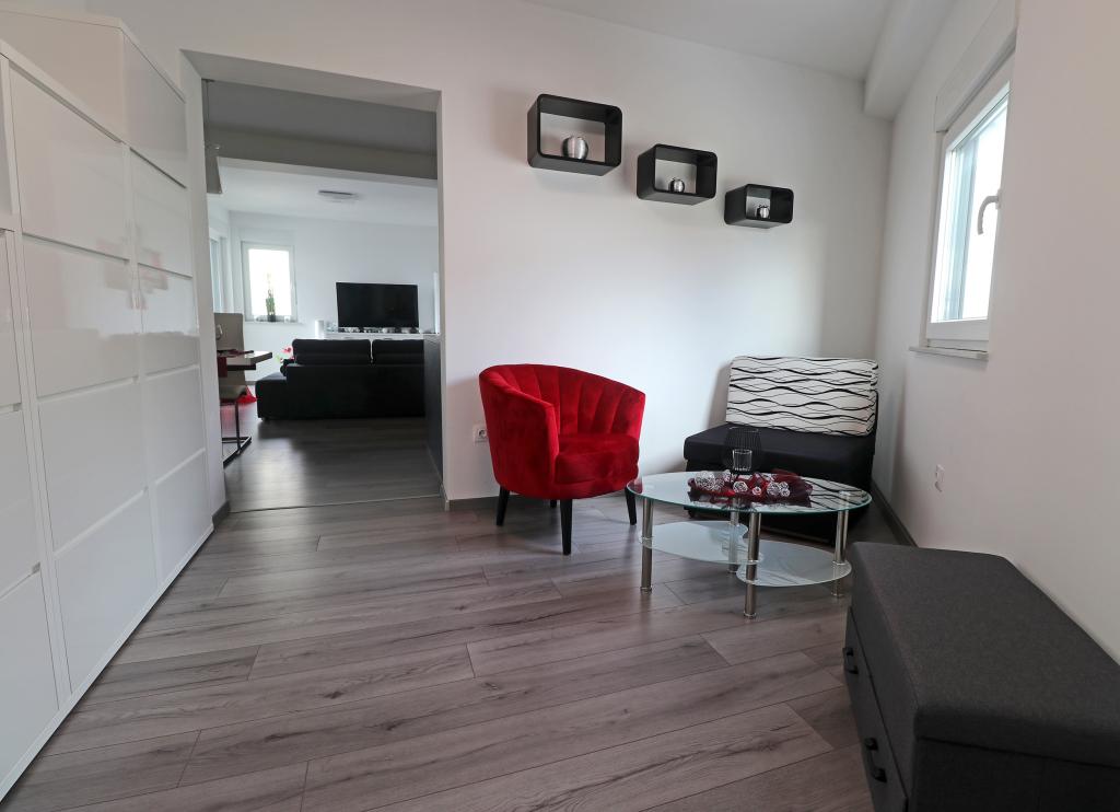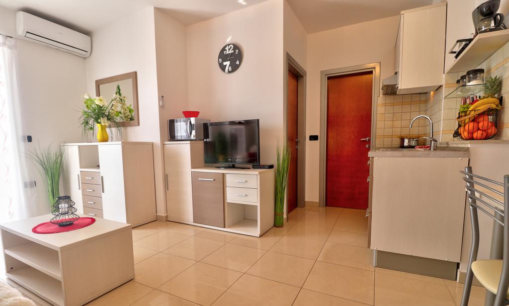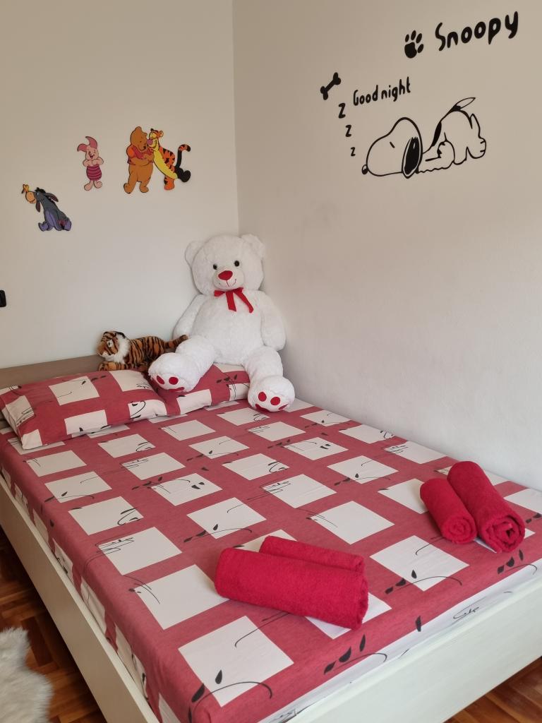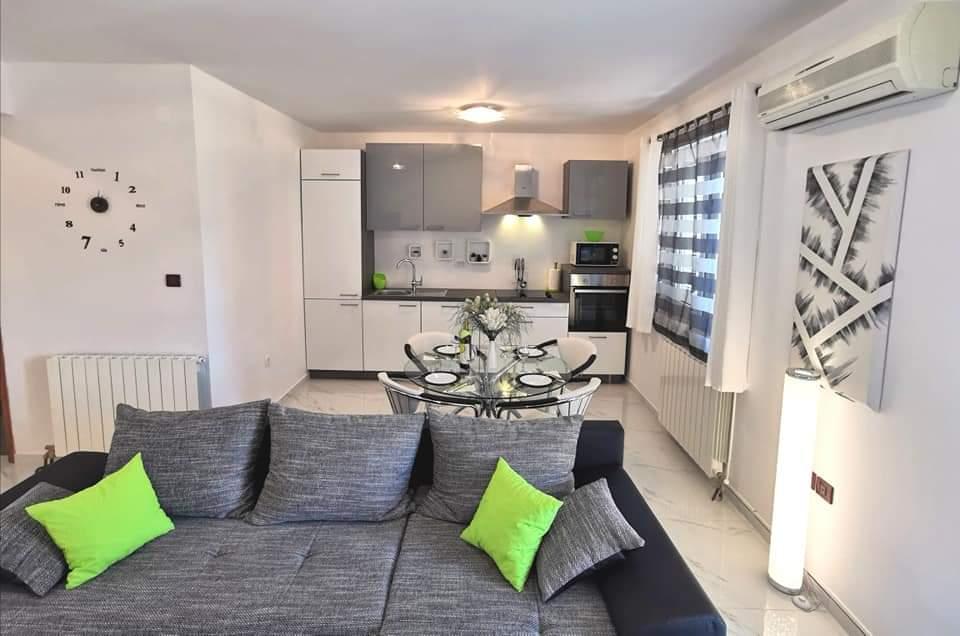 Capacitatea totala de cazare in intreaga facilitate este de 26 de persoane, potrivita pentru echipe sportive si grupuri mai mari de persoane. Apartamente complet echipate într-o zonă liniștită din Medulin, chiar deasupra hotelului și a terenului de fotbal. La 10 minute de mers pe jos de plaja cu nisip, la 5 minute de centru. Grădina amenajată cu gazon este ideală pentru odihnă și jocuri pentru copii. Parcarea este in fata blocului pentru fiecare apartament. Garajul este disponibil pentru biciclete, romobile, motociclete și toate lucrurile mari pentru mare... Ideal pentru motocicliști sau bicicliști sau surferi. Vehiculele electrice pot fi încărcate în garaj.