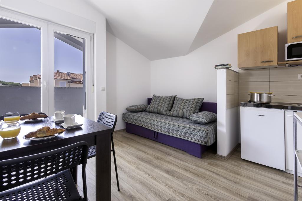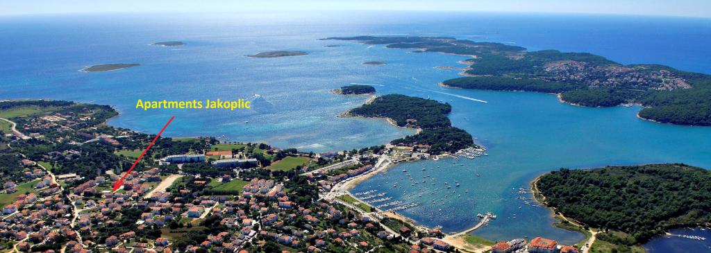 Casa familiei Jakoplić este situată în Medulin. În total sunt 7 apartamente în casă. Trei apartamente sunt situate la primul etaj și trei la etajul doi. Acestea constau dintr-un dormitor cu un pat dublu, un living cu o bucatarie mica si o canapea extensibila (1,50x2m). Fiecare apartament are o baie și o terasă, iar bucătăria are tot ce aveți nevoie pentru a găti, inclusiv cuptor cu microunde, prăjitor de pâine, aparat de cafea și ceainic. Un apartament pentru 4 persoane cu living și două dormitoare este situat la parter. Apartamentul are o curte mica cu masa in aer liber si gratar. Fiecare are un TV LCD cu canale prin satelit și acces la internet wireless (Wi-Fi). Apartamentele au aer conditionat si fiecare are loc de parcare, lenjeria de pat este inclusa in pret precum si doua prosoape de persoana pe saptamana. Plaja este la doar 500 de metri.