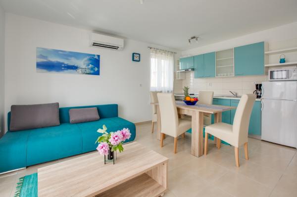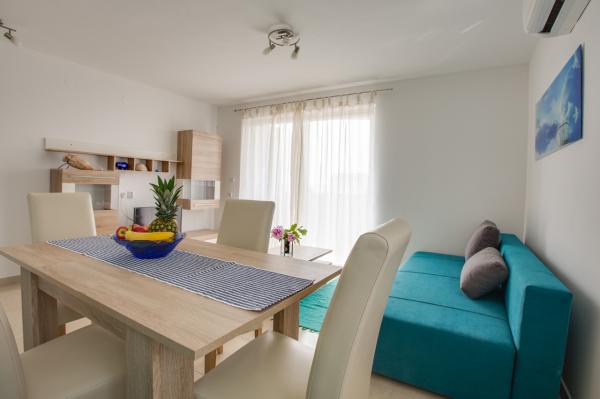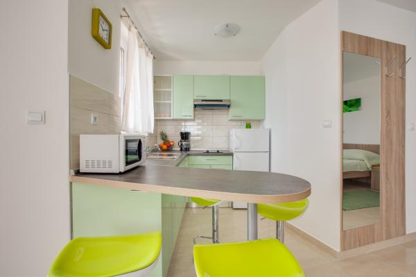 - Apartamente noi, moderne în imobil nou - Locație ideală lângă mare, plajă din apropiere, frumoasa priveliste Apartamente roșu și verde sunt la parter Apartamente albastru și violet la primul etaj - Primul sezon de închiriere! - Toate incluse în prețul, fără costuri suplimentare pentru WiFi, aer conditionat, gratar, parcare, taxa de statiune.