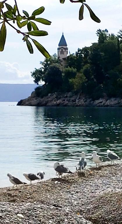 Casa este situată lângă faimoasa plajă din Medveja, cu vedere la mare din apartament și de pe terasă. Deasupra casei se află versanții Parcului Natural Učka, o mulțime de promenade și oportunități de recreere, precum și de bucurie a naturii. Aproape de promenada Lungomare și Opatija. Grădina este împrejmuită, parcare în interiorul grădinii, mai multe terase cu mese de grădină, grătar de cărbune. Posibilitatea de a închiria mai multe apartamente.