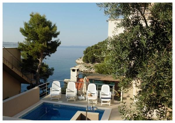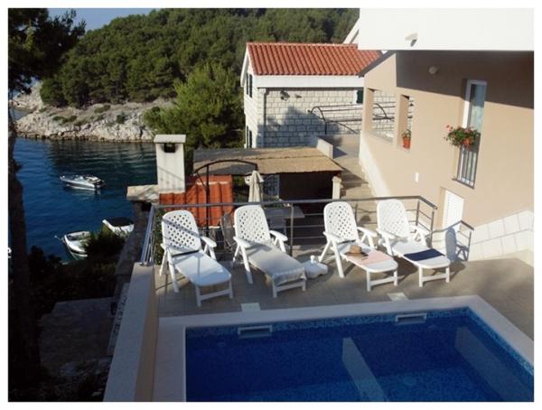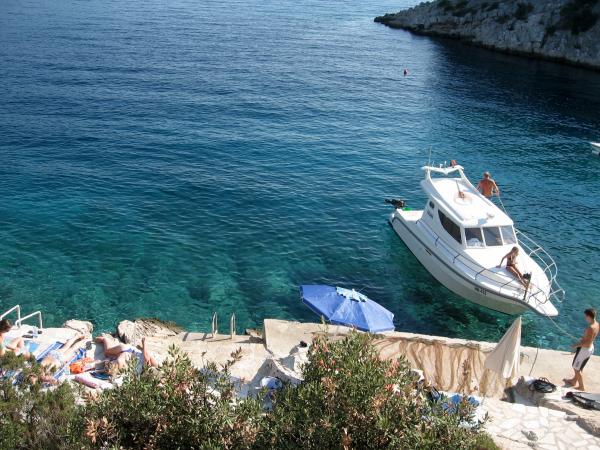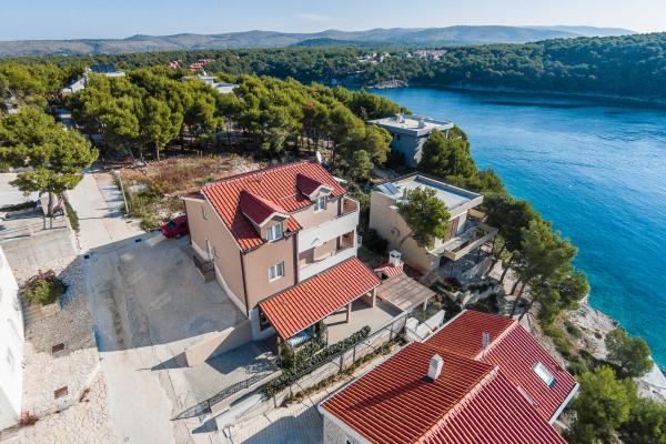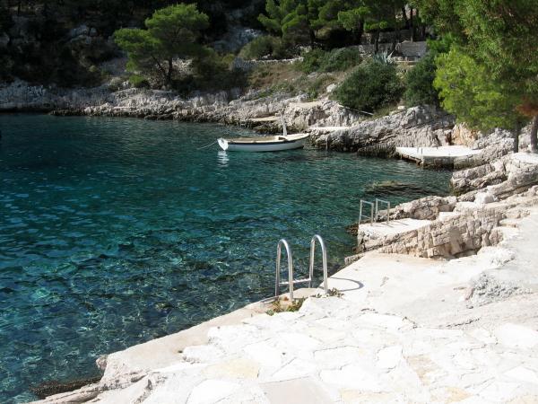 Petreceți-vă vacanța într-un apartament lângă mare în golful Osibova de pe insula Brač! Apartamentele BILI sunt situate în partea de sud-vest a insulei Brač, în golful Osibova, care este la 2 kilometri de orașul Milna. Casa noastră de apartamente împreună cu grădina ocupă o poziție de 400 m² și este situată la o distanță de aproximativ 25 de metri de mare. Casa în sine este formată dintr-un parter, un etaj și o mansardă înaltă și are 6 apartamente, dintre care 4 sunt de închiriat. Oaspeții pot folosi grătarul și o terasă comună mare, cu vedere la mare. Există o parcare chiar lângă casă. Pe partea de est a casei se afla o piscina de 23 m². Posibilă utilizare a unui duș în aer liber. Sub casa se afla un bloc de beton cu scari. Există toate echipamentele necesare pentru acostarea barcilor și bărcilor. Plaje cu pietriș și piatră sunt situate în interiorul golfului și sunt la 5 și 10 minute de mers pe jos de apartament.