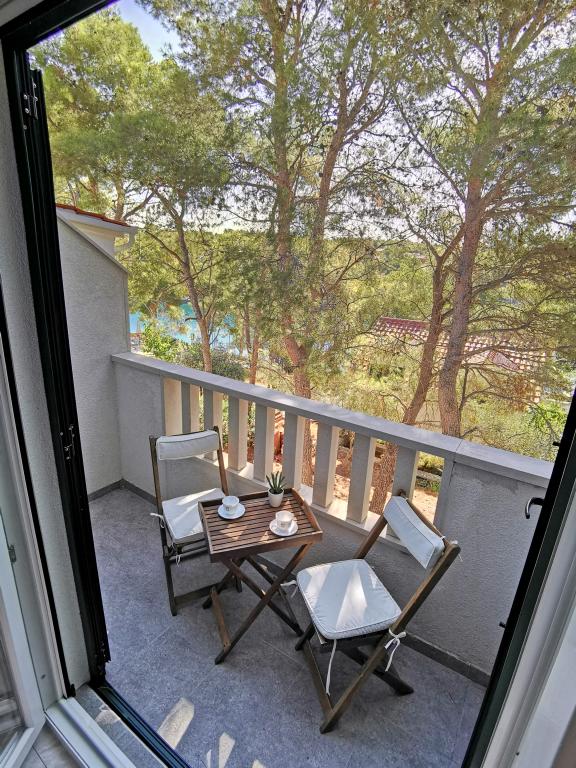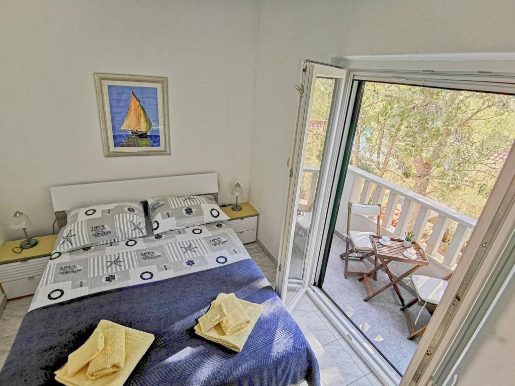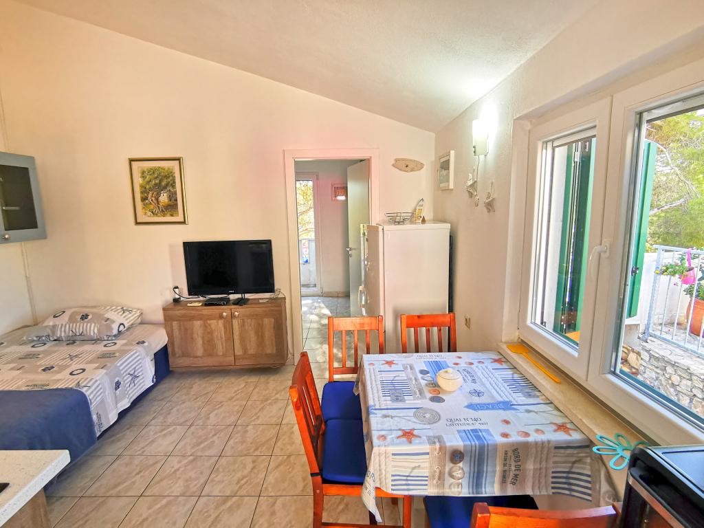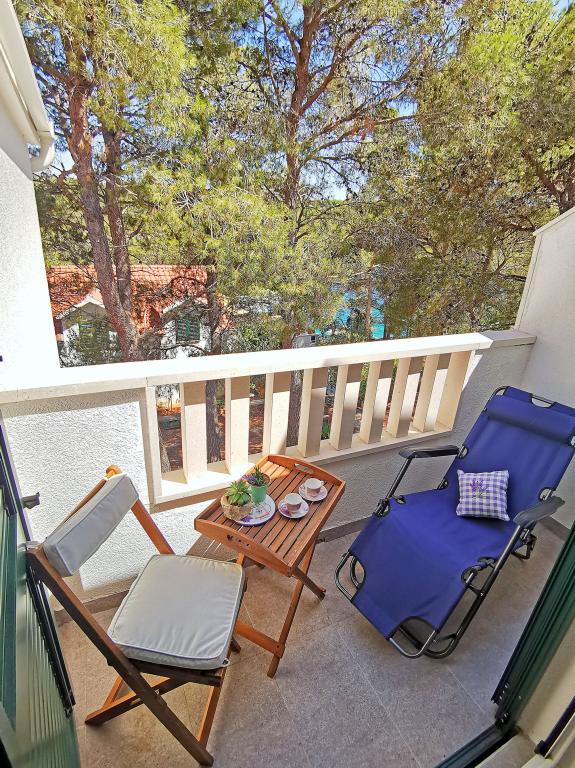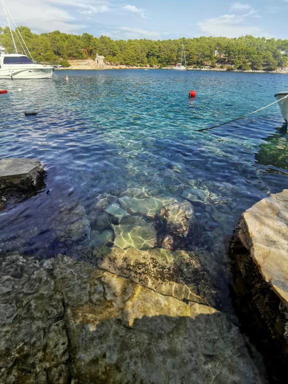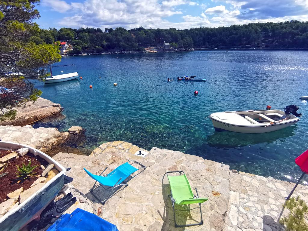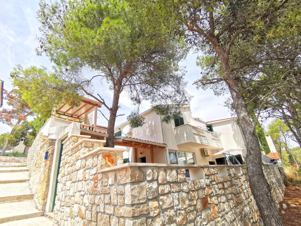 Două apartamente dotate modern și aer condiționat, situat într-o frumoasă de pini lemn, golfuri smiještenena în sud-vest a insulei, la 30 m de mare, care este, de asemenea, și plajă. Apartamentele sunt compuse din bucatarie, living, dormitor și baie. Fiecare apartament are propria curte si loc de parcare. Cel mai apropiat oraș de Milna, situat la 1500m distanta, adică 15 minute de mers pe jos.