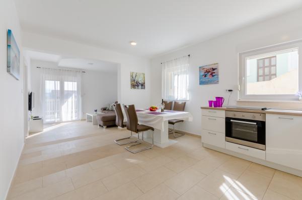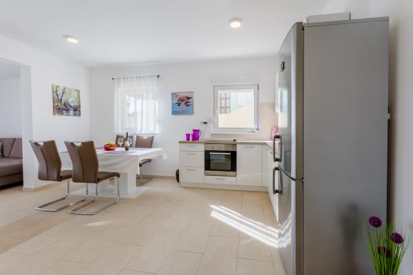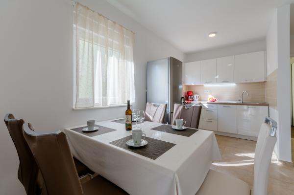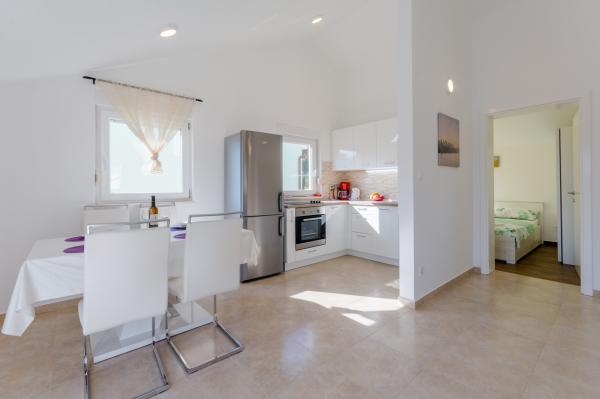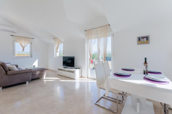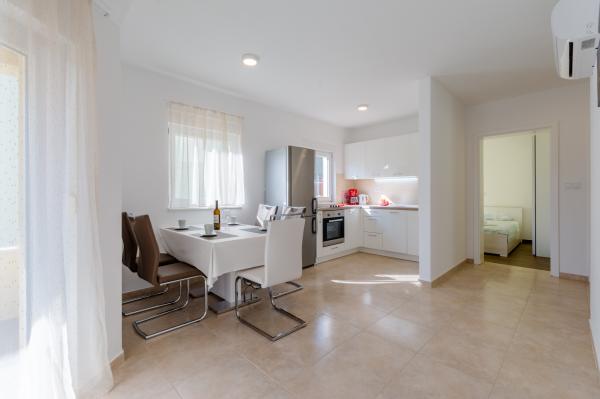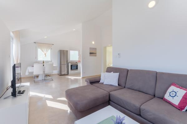 Locație excelentă, apartament grozav, terasă excelentă și într-o locație liniștită. Aproape de mare, unde nu este aglomerație, dar este mare curată. Primul bar sau magazin este la 3 km. Vă puteți odihni ușor sau activ. Există multe poteci de macadam pentru mers pe jos sau cu bicicleta. Și asigurați-vă că vizitați taverna Kapetanija Lozje pentru o friptură grozavă. Iti recomandam.