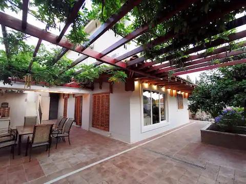 Bine ați venit în spațiosul nostru apartament Wisteria, situat la parter, în liniștitul golf Vlaška. Spre deosebire de majoritatea cazărilor din Milna, puteți ajunge la noi fără urcări sau scări, ceea ce este ideal pentru familiile cu cărucioare sau bicicliști. Bicicletele noastre vă stau, de asemenea, la dispoziție pentru a explora împrejurimile. Apartamentul este decorat cu tavane excepțional de înalte (3 m) și pereți panoramici mari, care oferă o senzație rară de spațiu. Este dotat cu o bucătărie DanKuchen de înaltă calitate și oferă confort complet, cu două toalete, două bideuri, o cadă și un duș. Bucurați-vă de grădina noastră mediteraneană cu un grătar tradițional dalmat, un iaz și o glicină luxoasă care împodobește întreaga proprietate primăvara. Pe o rază de 200 m există restaurante (OMO, Bago, Plaža) și cafenele cu o priveliște frumoasă. Pontonul de catamaran este la doar 200 m distanță, de unde puteți vizita cu ușurință Split, Hvar sau Dubrovnik. Parcarea este gratuită. Bucurați-vă de piscina noastră încălzită, care oferă o doză suplimentară de lux și confort în timpul vacanței dumneavoastră.