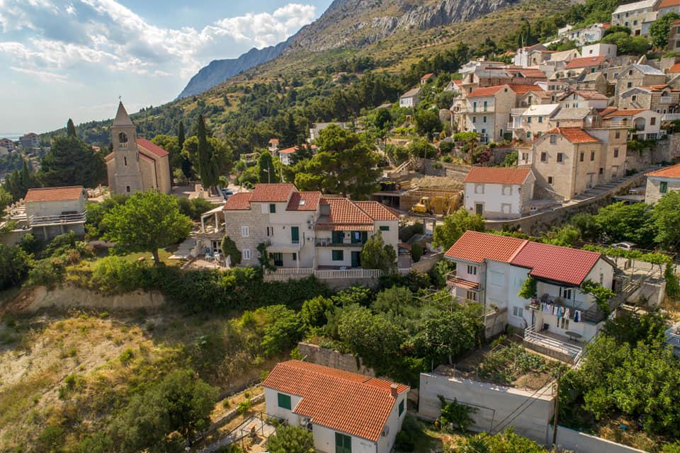 Casa de vacanță este situată în liniștitul sat Mimice, la doar 12 km de Omiš și 41 km de Split. Este situată pe un deal, oferind o vedere panoramică uluitoare asupra mării și a peisajului înconjurător, ideală pentru relaxare și evadarea din stresul cotidian. În imediata vecinătate a casei se află două frumoase plaje cu pietriș, la doar 500 de metri distanță, care permit accesul facil la marea cristalină și bucuria de zile însorite. Casa este spațioasă și mobilată funcțional, fiind alegerea perfectă pentru familii numeroase sau grupuri de prieteni care doresc să petreacă timp de calitate împreună într-un mediu plăcut și privat. Combinația dintre împrejurimile naturale, liniște și apropierea de mare face din această casă un loc ideal pentru o vacanță de neuitat.