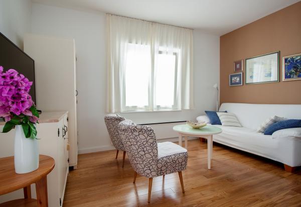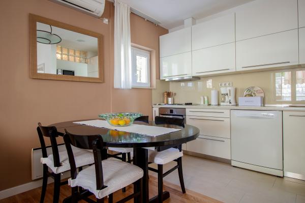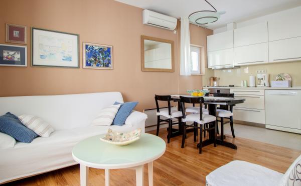 Apartamentul este impecabil curat, decorat cu mult gust. Bucătărie bine echipată, dormitoare foarte confortabile. Terase mobilate confortabil, toate facilitățile, copertele, umbrele. Locație excelentă lângă plajă, cea mai bună plajă după părerea noastră. Gazda era foarte implicată, pregătea în fiecare zi terase: umbrele, copertine. Foarte util în organizarea unui sejur, organizarea unei bărci cu motor sau organizarea asistenței medicale (din păcate a fost nevoie).