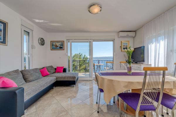 Mimica, acest sat intim și fermecător. Apartamentul este situat aproape de mare, plajă cu șindrilă foarte curat, cu dușuri, în apropiere de mai multe taverne, restaurant, mini-market și zarzavagiu (situate cel mai aproape de orașul de Omis este un cadou - 6 km). Apartament / 1 / este foarte mare - aceasta constă dintr-un living, un dormitor, o cameră cu trei paturi, inclusiv supraetajat și o cameră mică, cu un pat de o persoană,, complet echipate / mașină de spălat vase moderne și spațioase și mașină de spălat / bucătărie cu toate accesoriile necesare, apartament este bine întreținut și curat, cu o terasă mare cu vedere la mare și la sat, în plus, există umbrele, saltele, aripioare, etc la plajă. Pentru parcare vizitatorii cu garaj si gratar individuale. Proprietar foarte frumos și plăcut - salutări  RECOMANDATE Jola, Maciek și fiul Alexander