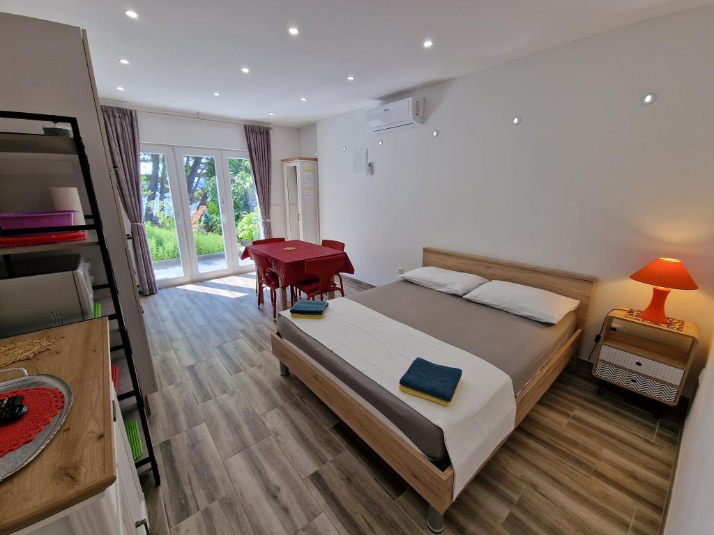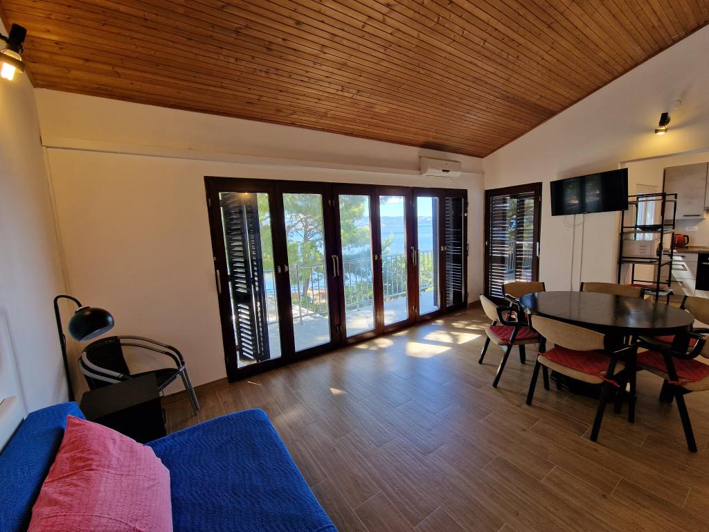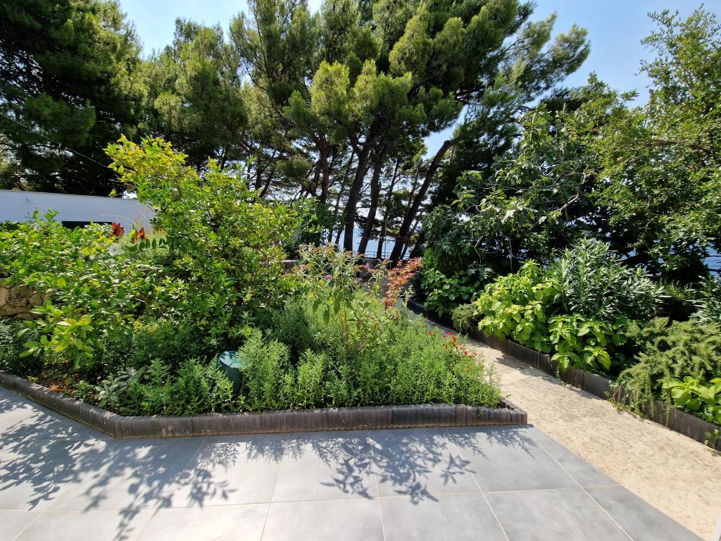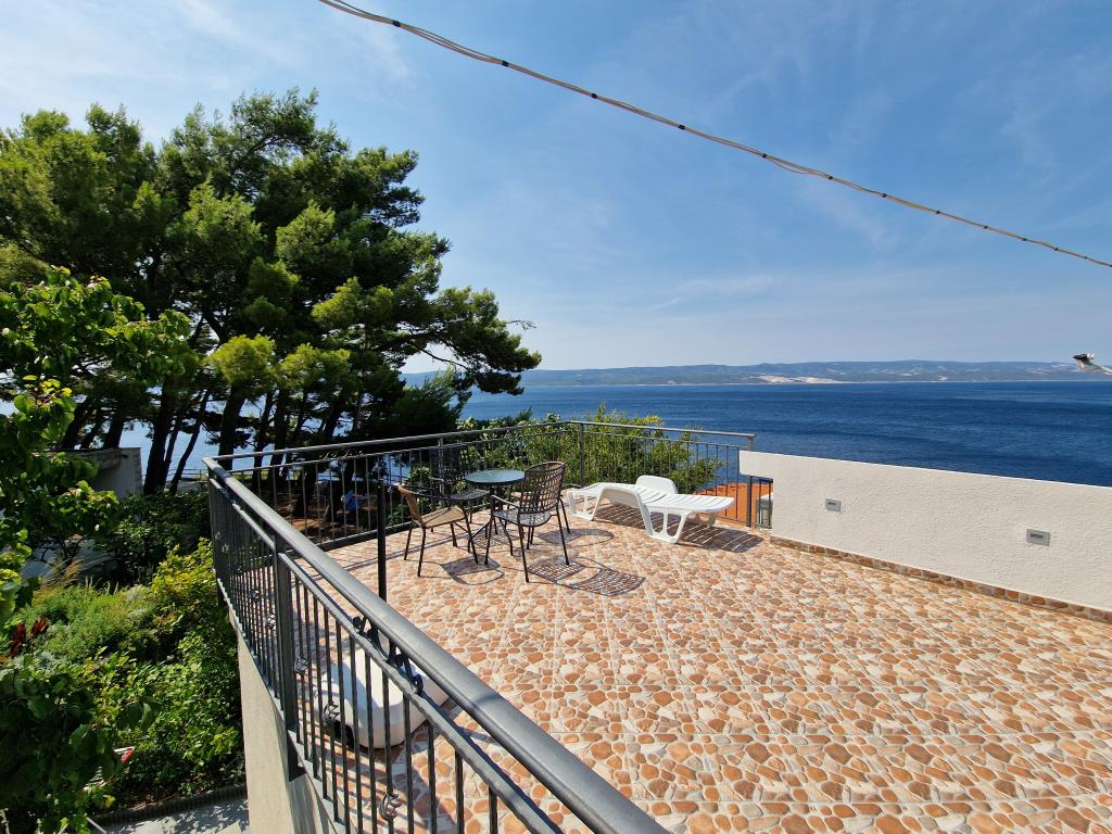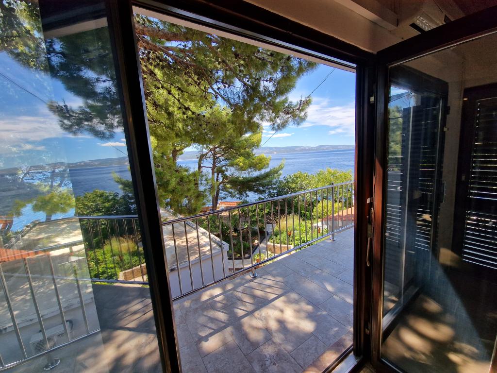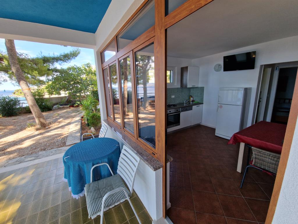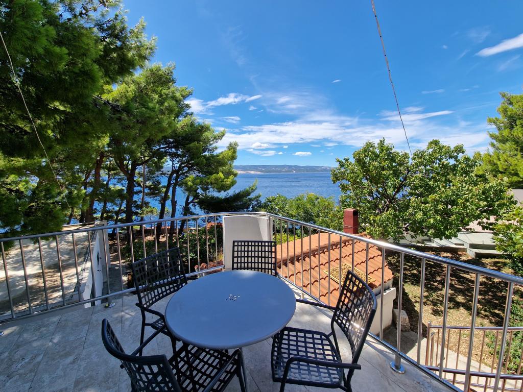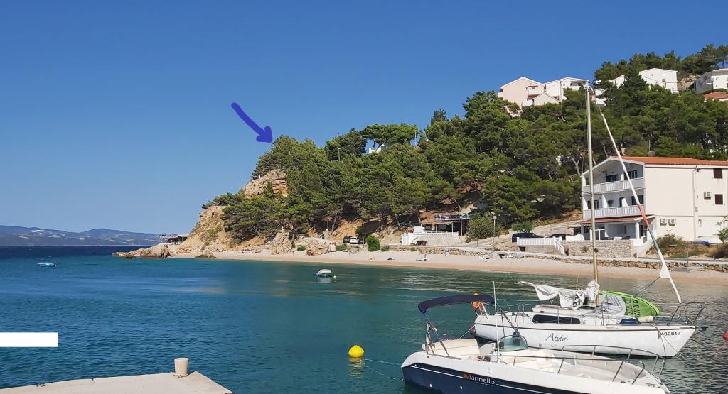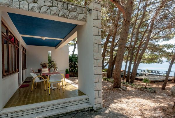 La doar 50 m de frumoasa plajă cu pietriș, primul rând la mare. A1- (51640) Apartamentul poate găzdui 6 oaspeți. Paturile sunt dispuse în 3 dormitoare, cu o suprafață de 56 m2. Terasă de 18 m2. Vedere la mare din pădurea de 350 m2. Două băi. Grătarul este comun. Există o mașină de spălat vase în bucătărie. A2- (51641) Apartamentul poate găzdui 5 oaspeți. Paturile sunt dispuse în 2 dormitoare și în sufragerie, cu o suprafață de 73 m2. Balcon de 17 m2 cu vedere la mare. Grătarul este comun. Există o mașină de spălat și o mașină de spălat vase în apartament. A3- (64424) Apartamentul are 2 paturi în livingul cu bucătărie și 2 în dormitor. Livingul cu bucătărie are 22 m2, dormitorul 7 m2, baia 5 m2. Există o mașină de spălat vase în bucătărie. Grătarul este comun. Terasă mare (35 m2) cu vedere la mare.