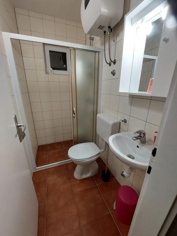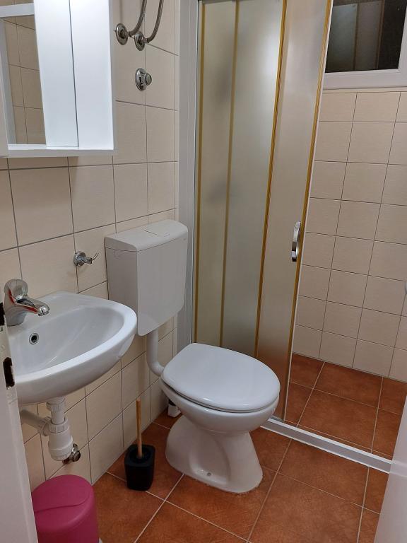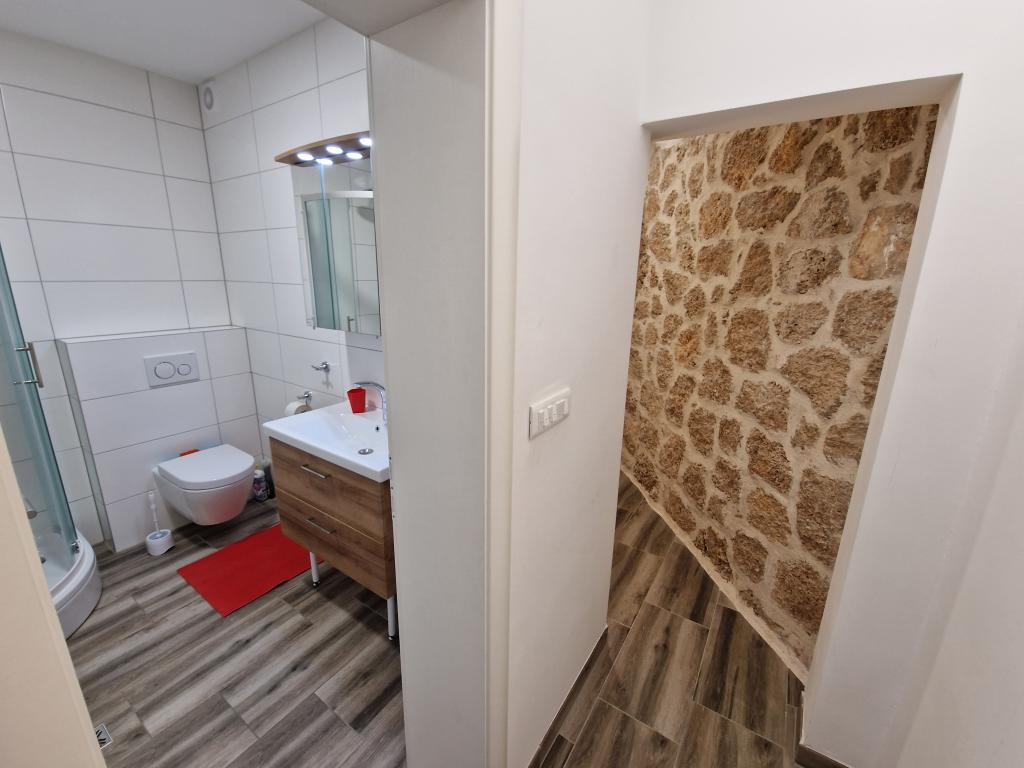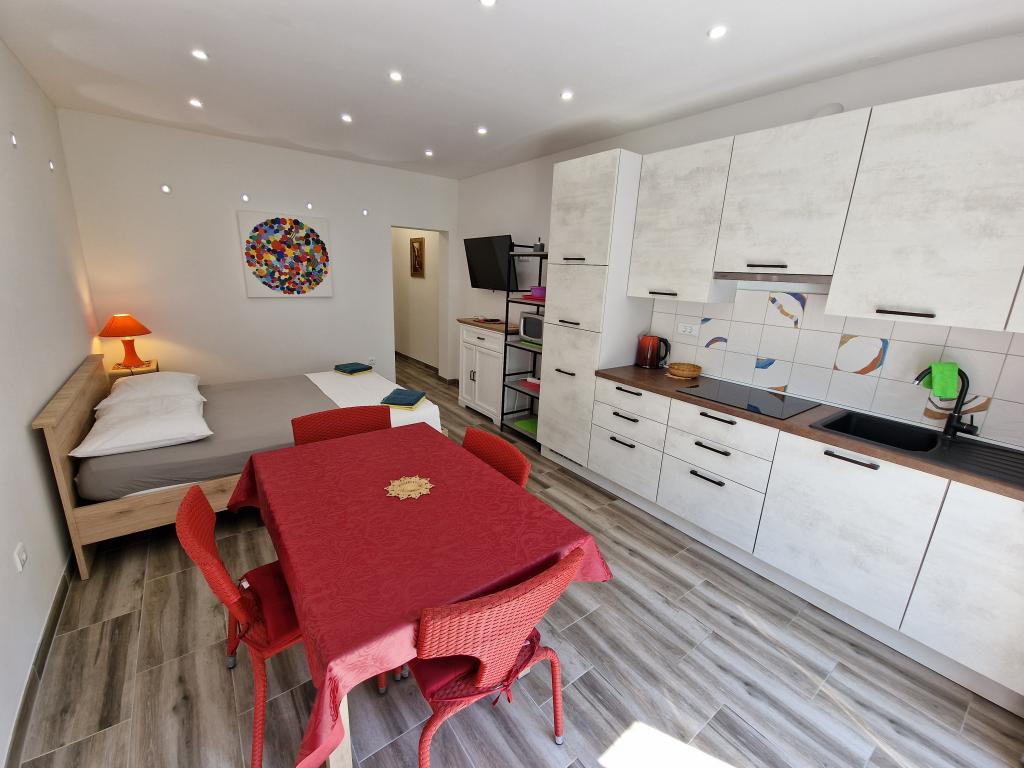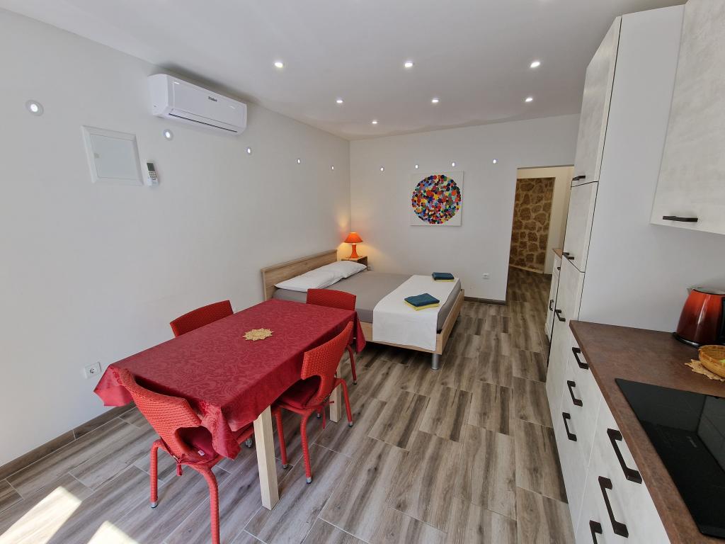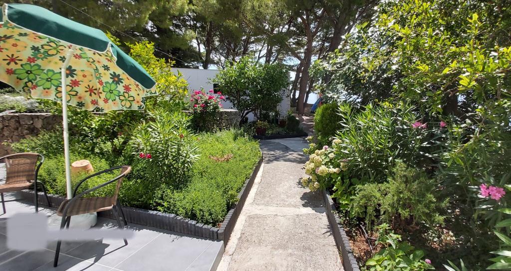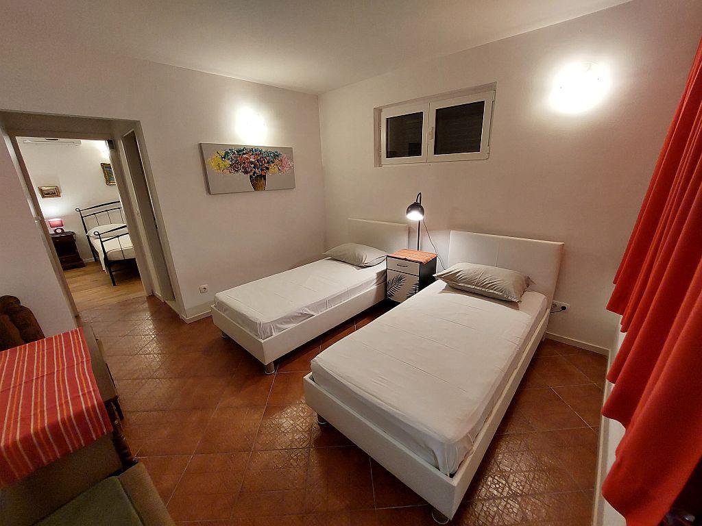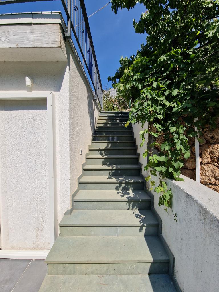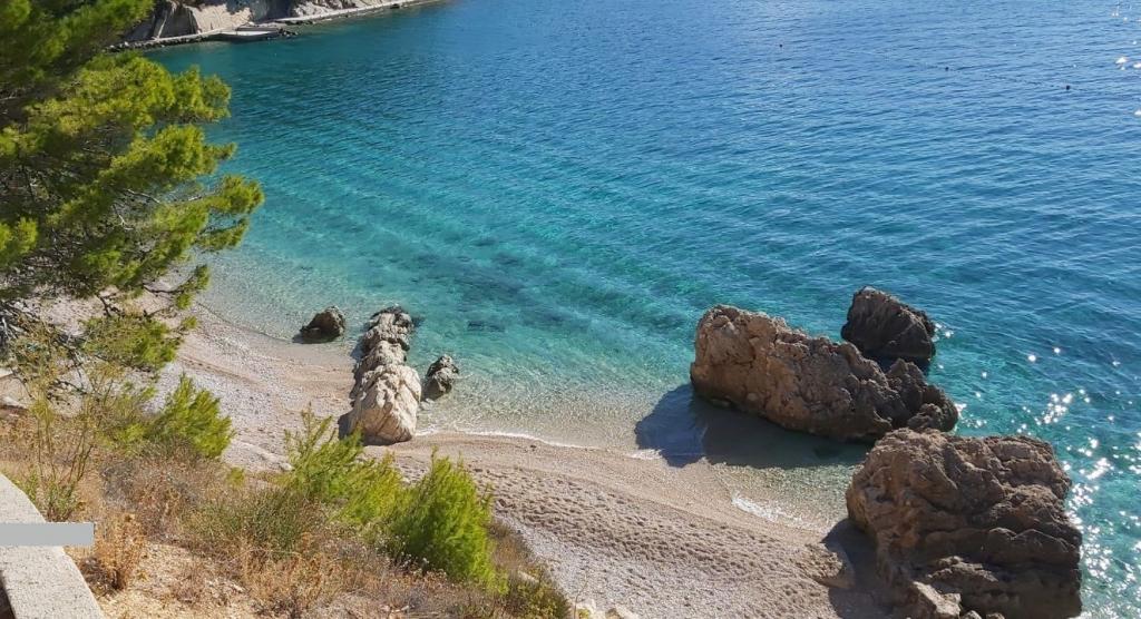 La doar 50 m de frumoasa plajă cu pietriș, primul rând la mare. A1- (51640) Apartamentul poate găzdui 6 oaspeți. Paturile sunt dispuse în 3 dormitoare, cu o suprafață de 56 m2. Terasă de 18 m2. Vedere la mare din pădurea de 350 m2. Două băi. Grătarul este comun. Există o mașină de spălat vase în bucătărie. A2- (51641) Apartamentul poate găzdui 5 oaspeți. Paturile sunt dispuse în 2 dormitoare și în sufragerie, cu o suprafață de 73 m2. Balcon de 17 m2 cu vedere la mare. Grătarul este comun. Există o mașină de spălat și o mașină de spălat vase în apartament. A3- (64424) Apartamentul are 2 paturi în livingul cu bucătărie și 2 în dormitor. Livingul cu bucătărie are 22 m2, dormitorul 7 m2, baia 5 m2. Există o mașină de spălat vase în bucătărie. Grătarul este comun. Terasă mare (35 m2) cu vedere la mare.