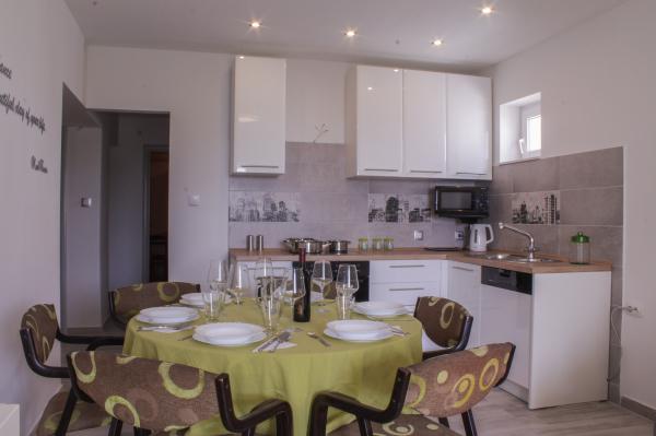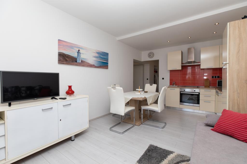 Medici a fost o destinație turistică în Dalmația Centrală, situată pe un atractiv Omis Riviera, la numai 11 km de Omis si 36 km de centrul cultural și economic al regiunii, Split. Dacă doriți ca să scape de mulțimile, zgomot și de viață stresant, Medici este un loc ideal pentru vacanțe de familie. Imediata vecinătate a Omis oferă oportunități pentru excursii la țară și insulele din apropiere. Apartamentele sunt situate într-un mediu liniștit, cu o vedere frumoasă la mare și insula Brac, aproape de plajă. Obiectul dispune de parcare pentru toate apartamentele din cadrul clădirii există un grătar cu o vedere frumoasă! AER CONDITIONAT - GRATUIT !!!