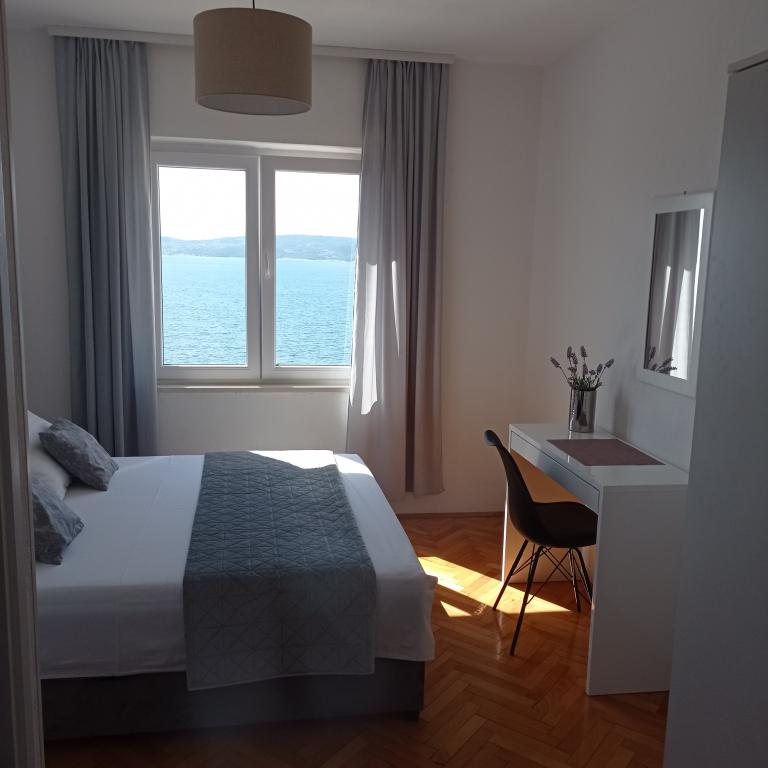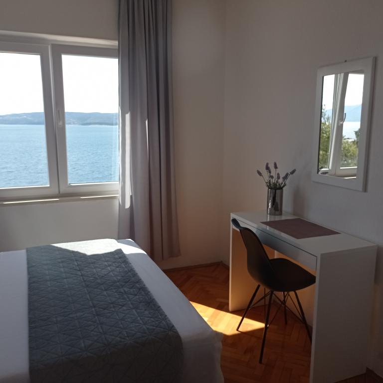 Am fost aici de două ori, cazarea este frumoasă, curată, complet echipată cu aer condiționat în fiecare cameră, mașină de spălat vase și ceea ce apreciez cel mai mult este mașina de spălat. Mirko, Danijela și mama lor sunt oameni minunați, amabili, mereu zâmbitori și de ajutor. Vederea de pe terasă este de neînlocuit. Nu am nimic de criticat. Beneficiul este ca te vei intoarce cu o silueta tonifiata, pentru ca drumul de la plaja este destul de deluroasa, dar cred ca este si un beneficiu.